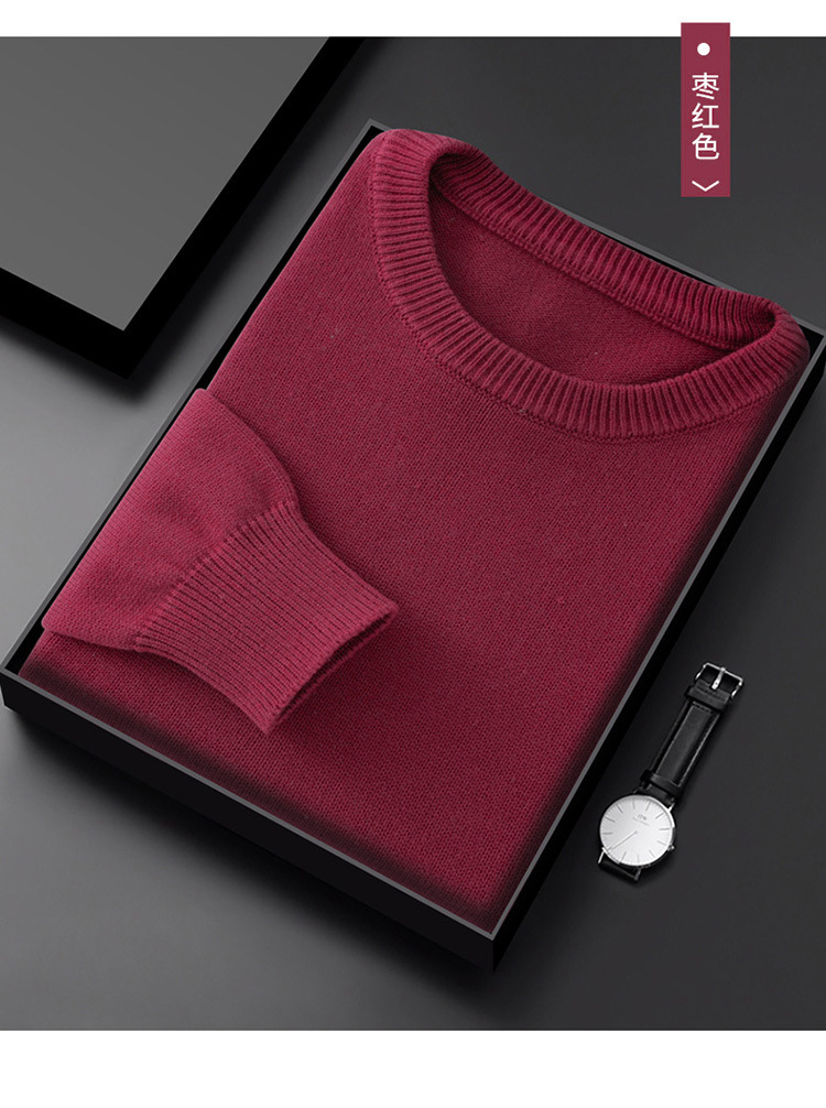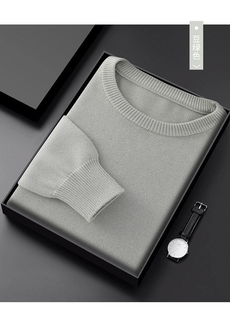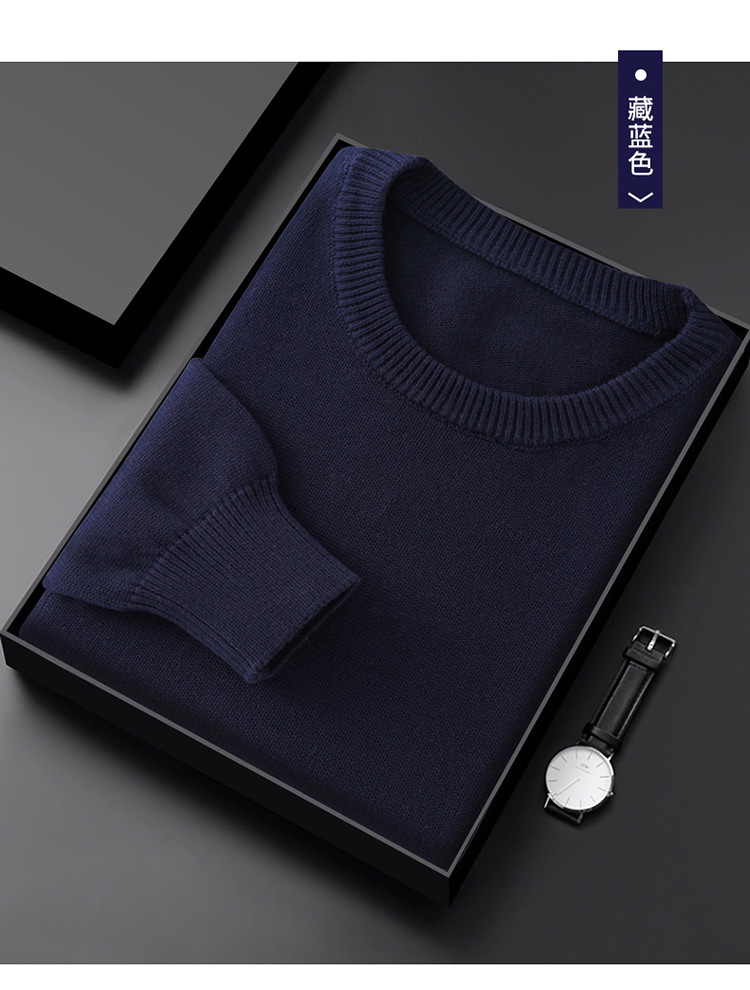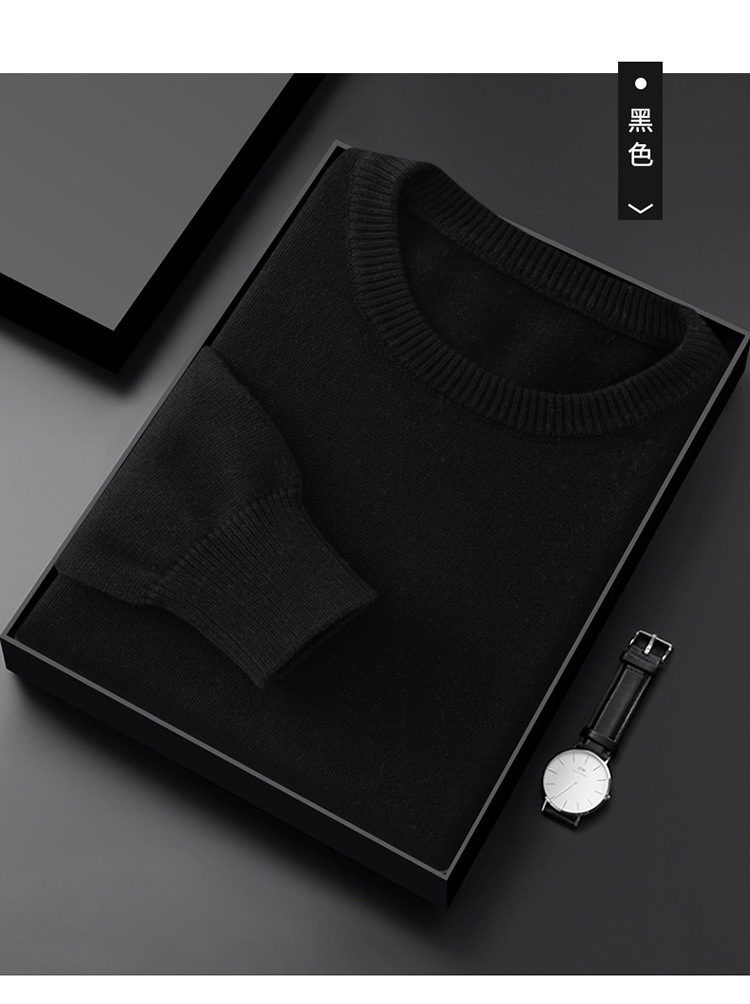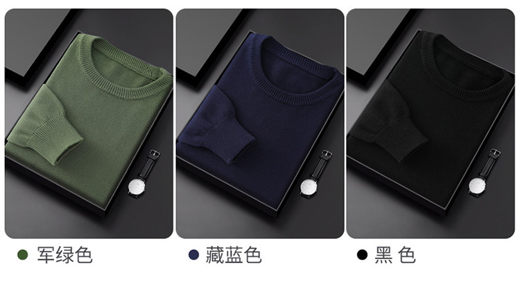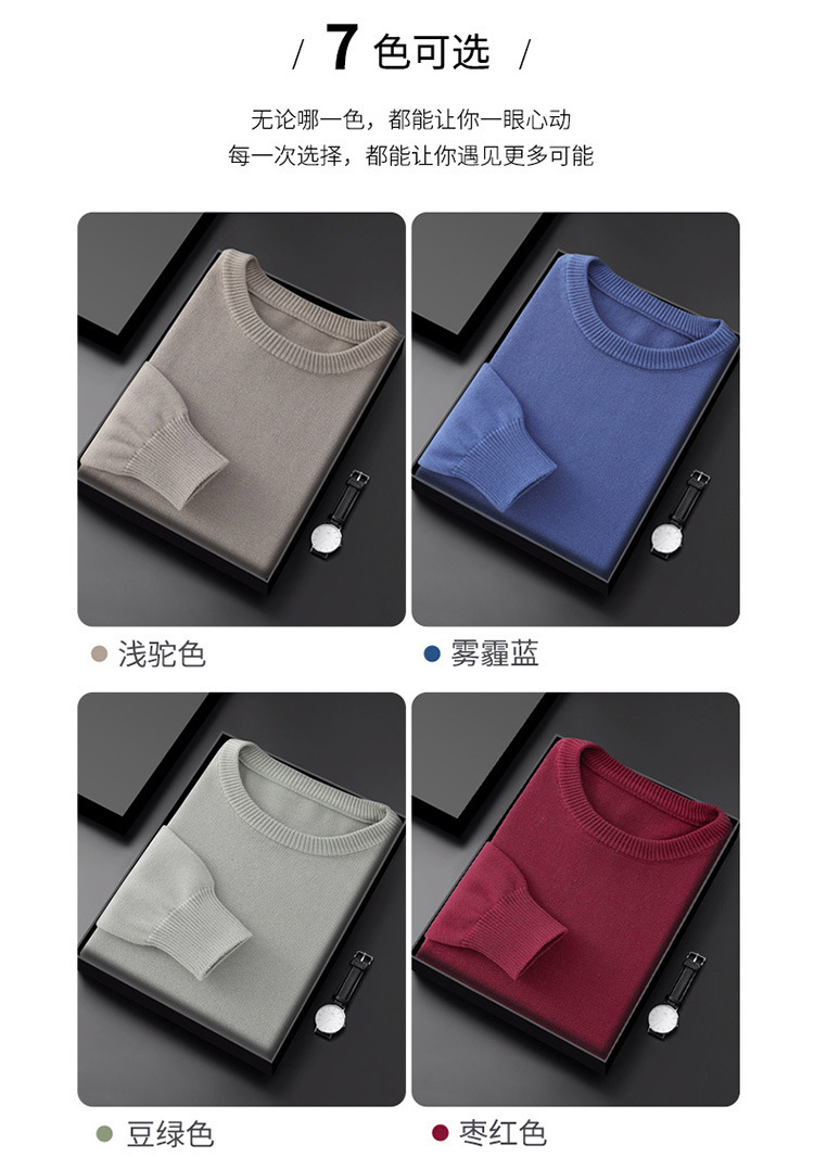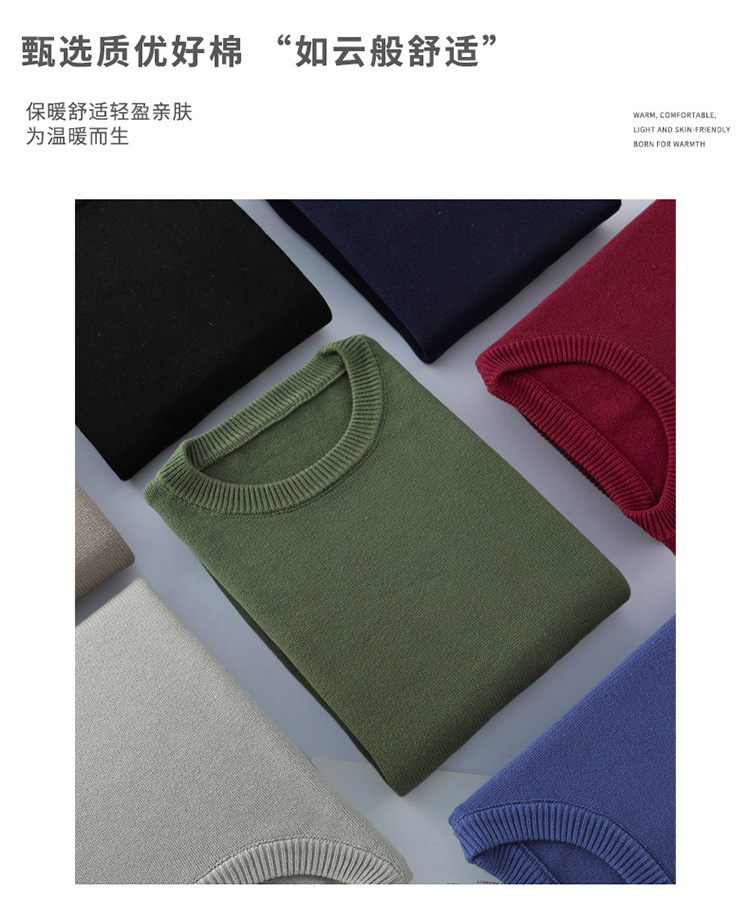 丁摩 新款100%纯棉针织衫男秋冬季不起球套头毛衣宽松纯色圆领打底线衣5ZF-48