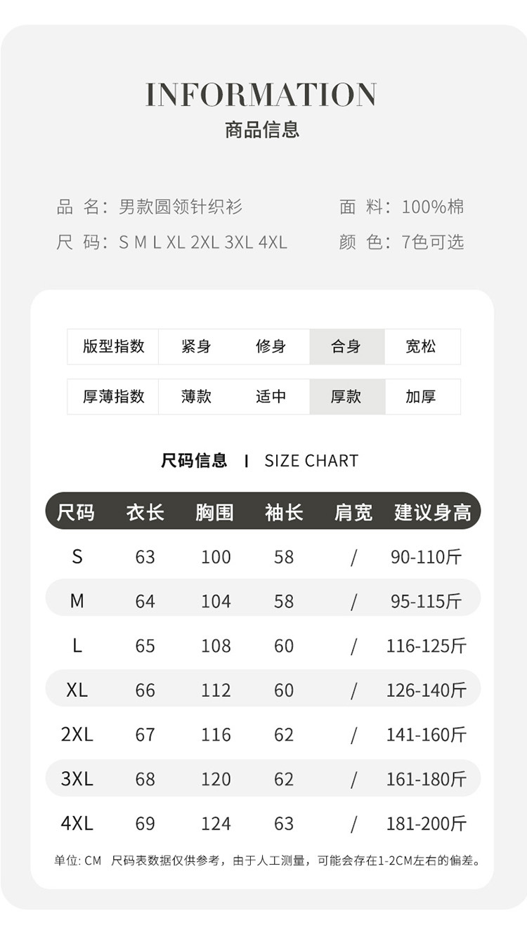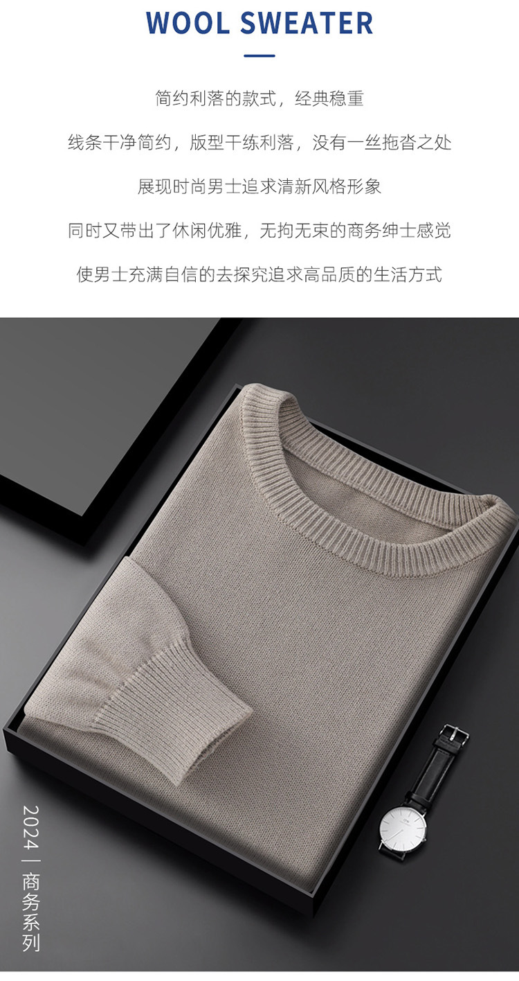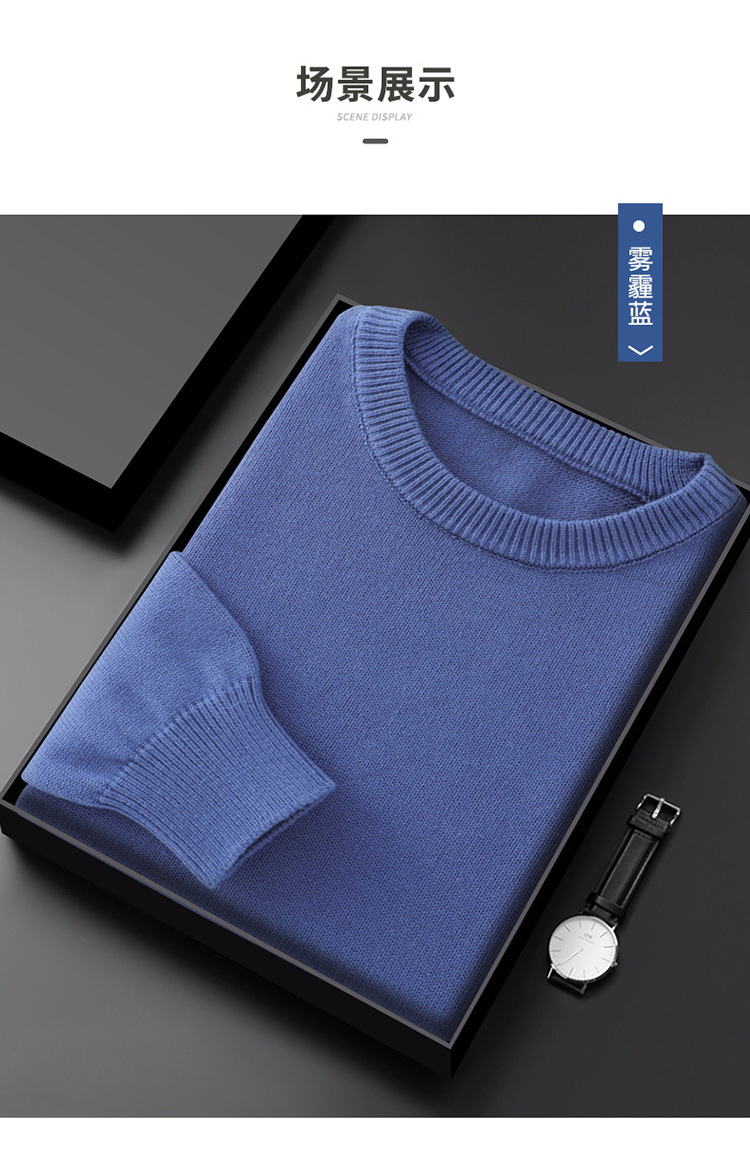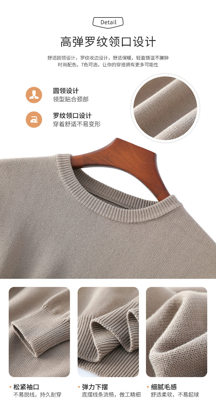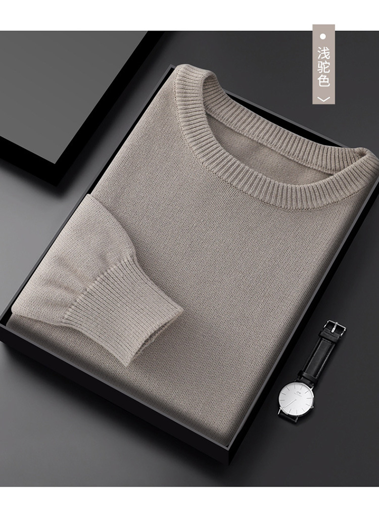 丁摩 新款100%纯棉针织衫男秋冬季不起球套头毛衣宽松纯色圆领打底线衣5ZF-48