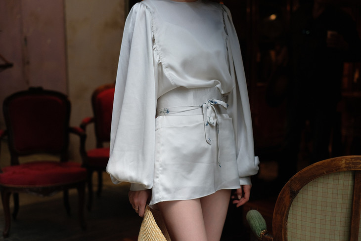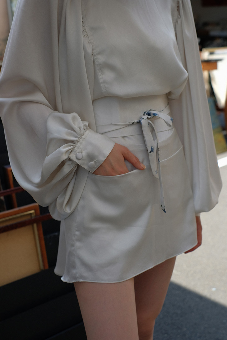 波提切利系列—灯笼袖缎面上衣