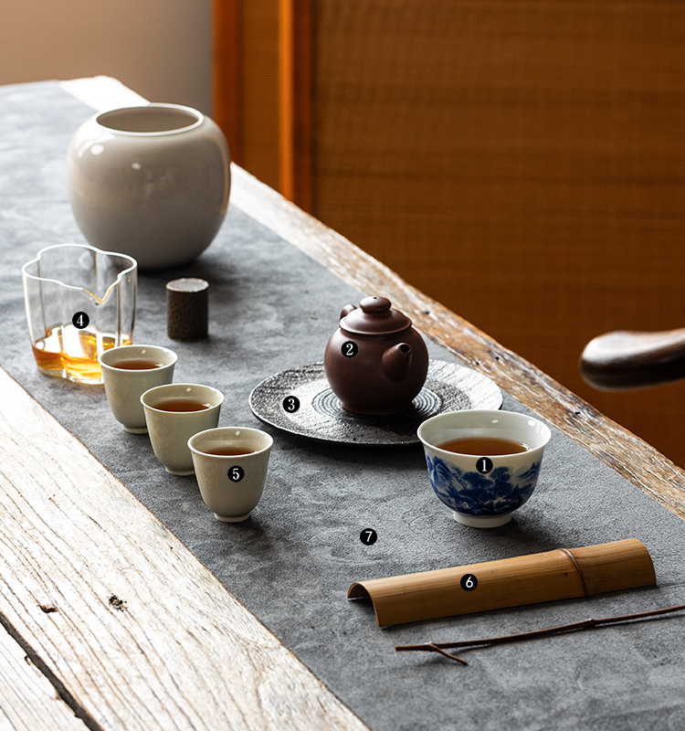 茶香记青花山水撇口杯茶杯景德镇陶瓷主人杯130ml茶室茶具品茗杯