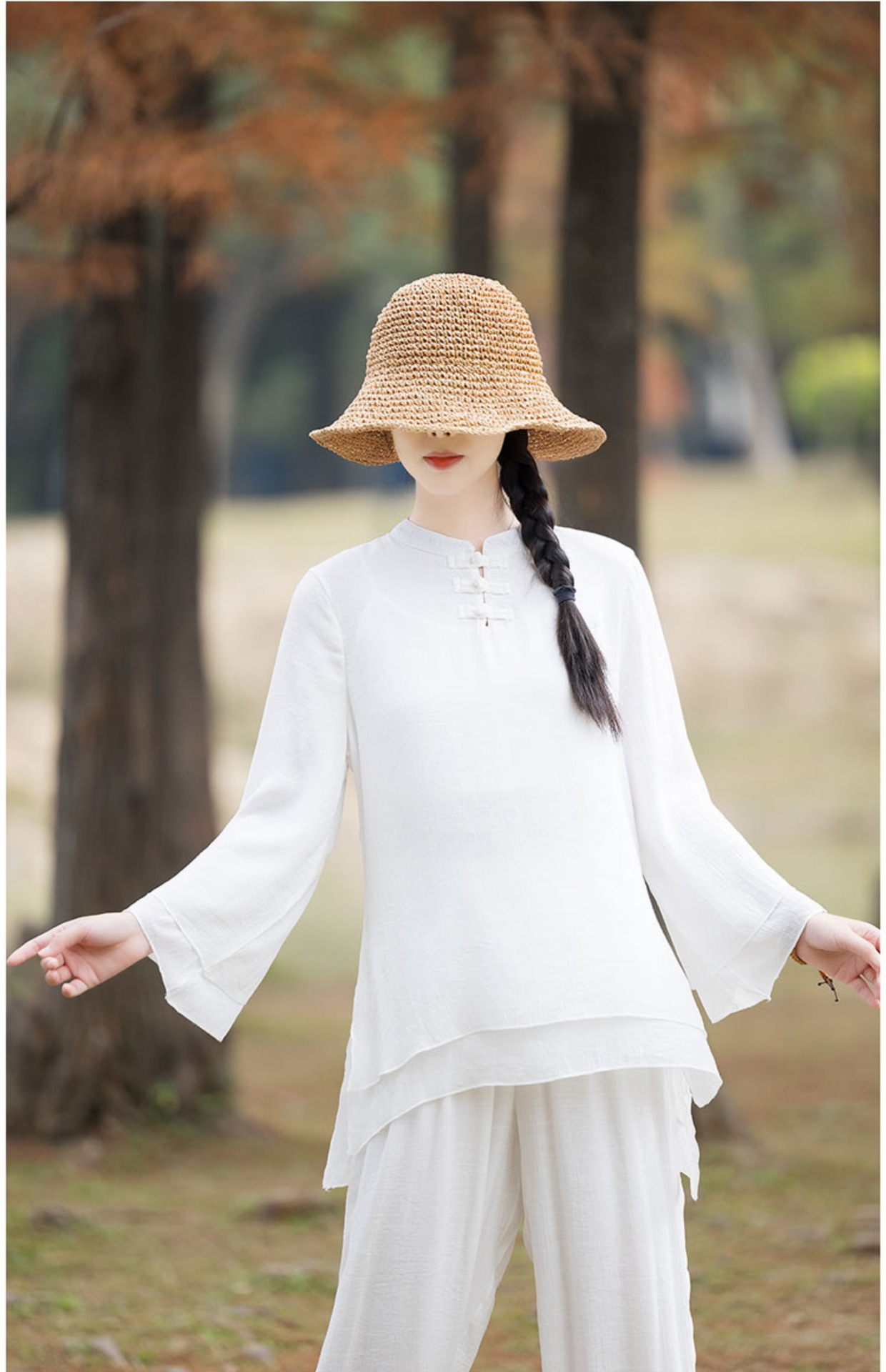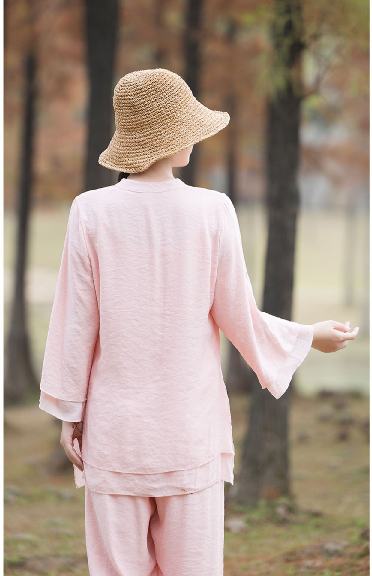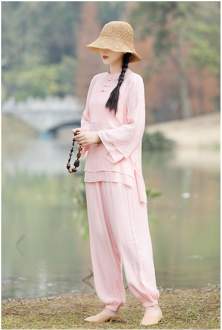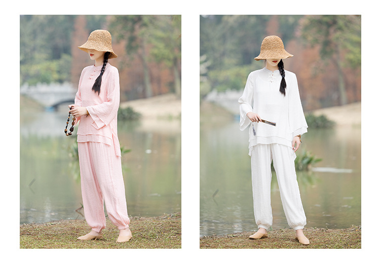 TZW-民族风棉麻禅服套装2023夏季新款时尚气质上衣松紧腰长裤两件套女