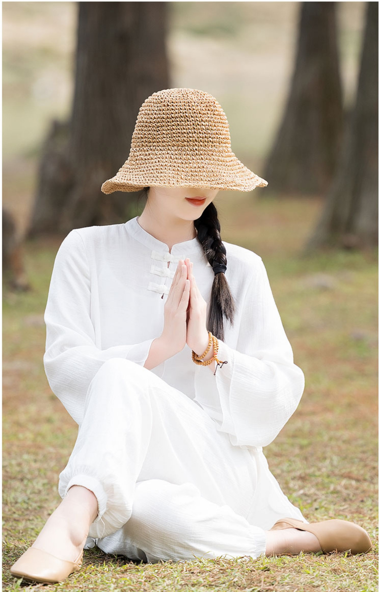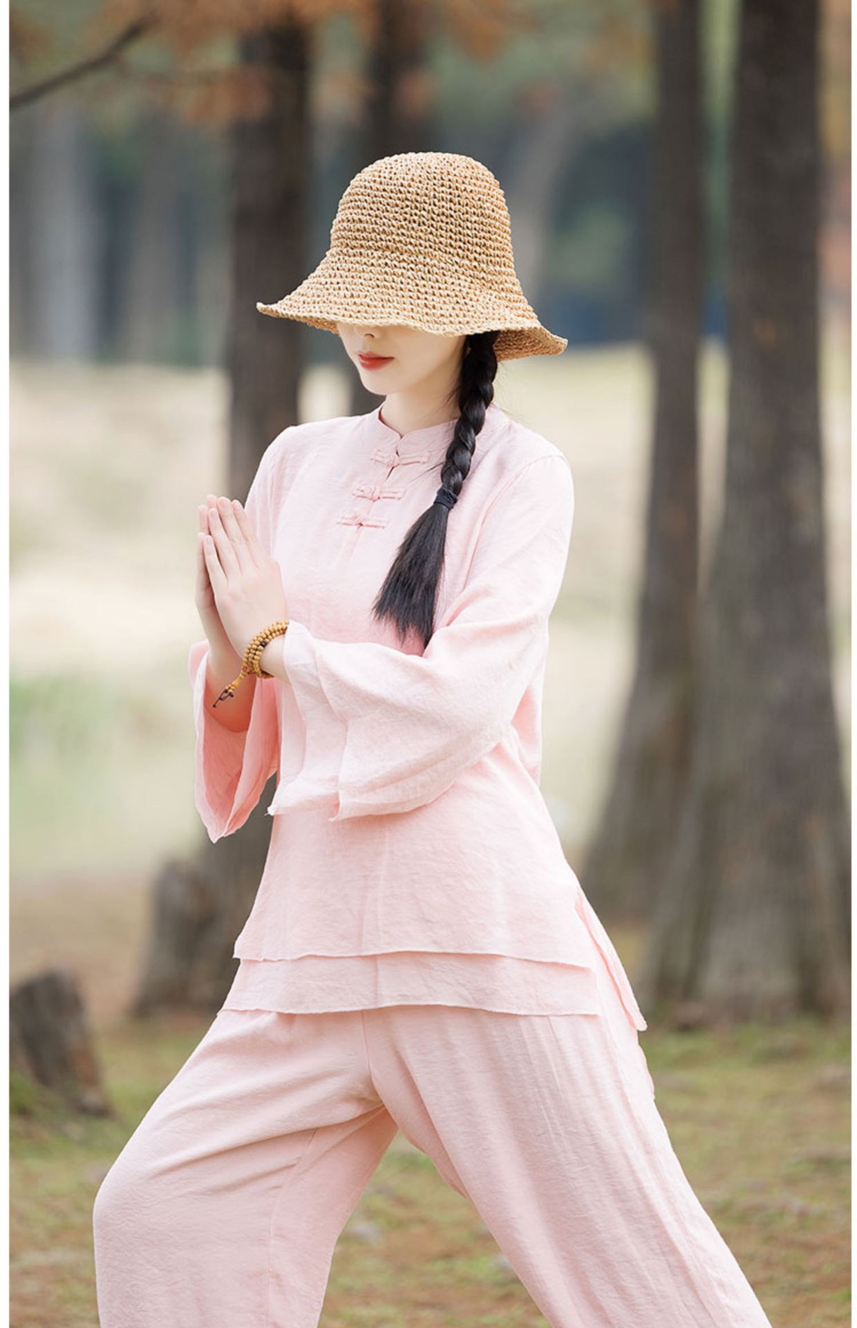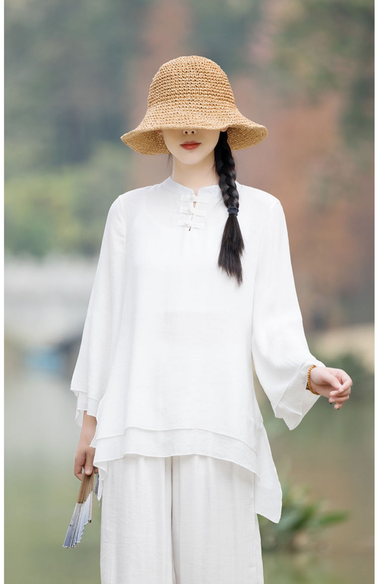 TZW-民族风棉麻禅服套装2023夏季新款时尚气质上衣松紧腰长裤两件套女