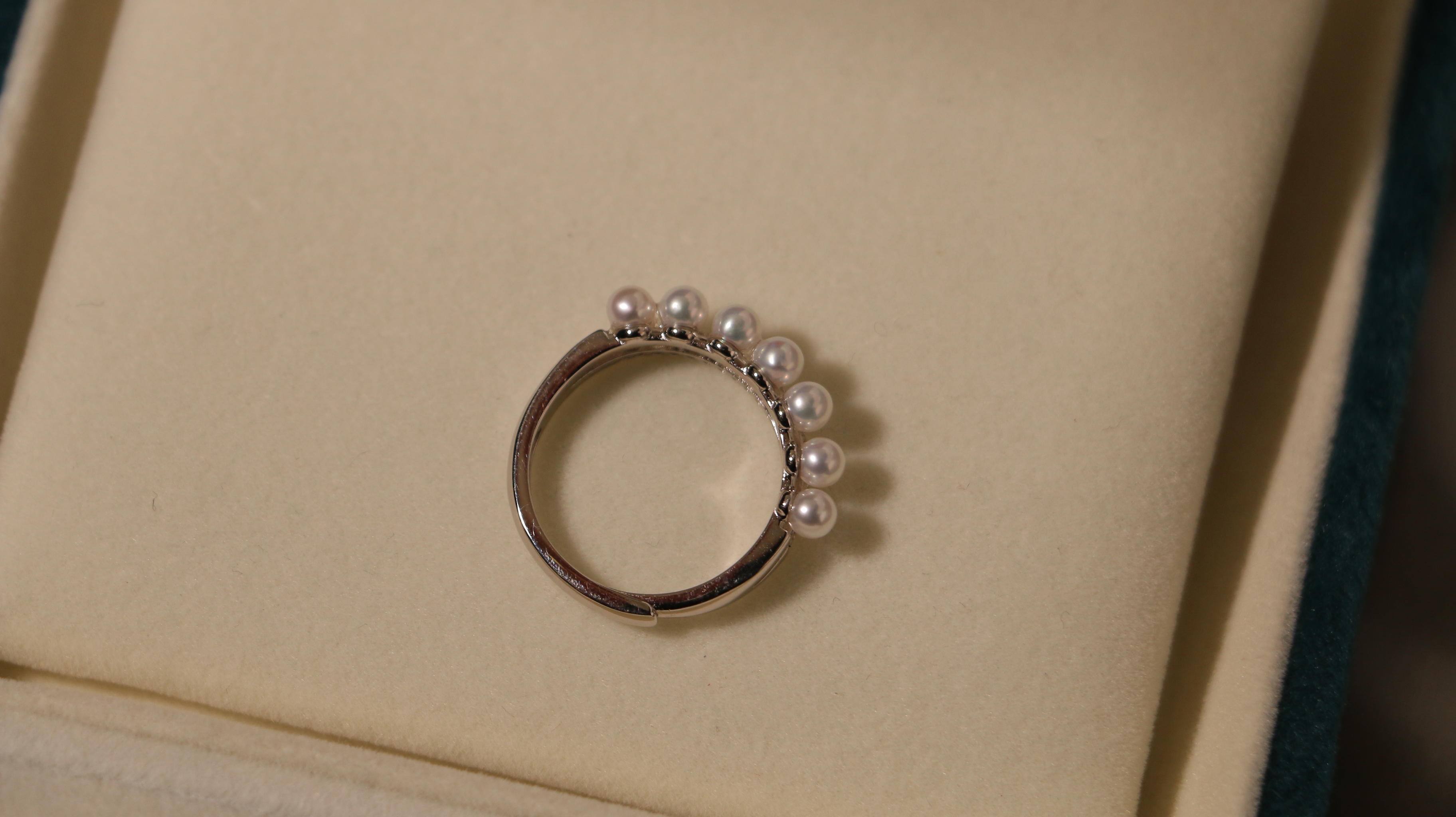 甄珠贝 双层排戒 ji品淡水mini珠 3-3.5mm 纯银精工 开口可调节戒圈