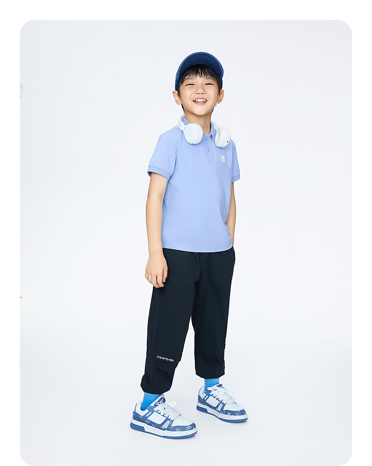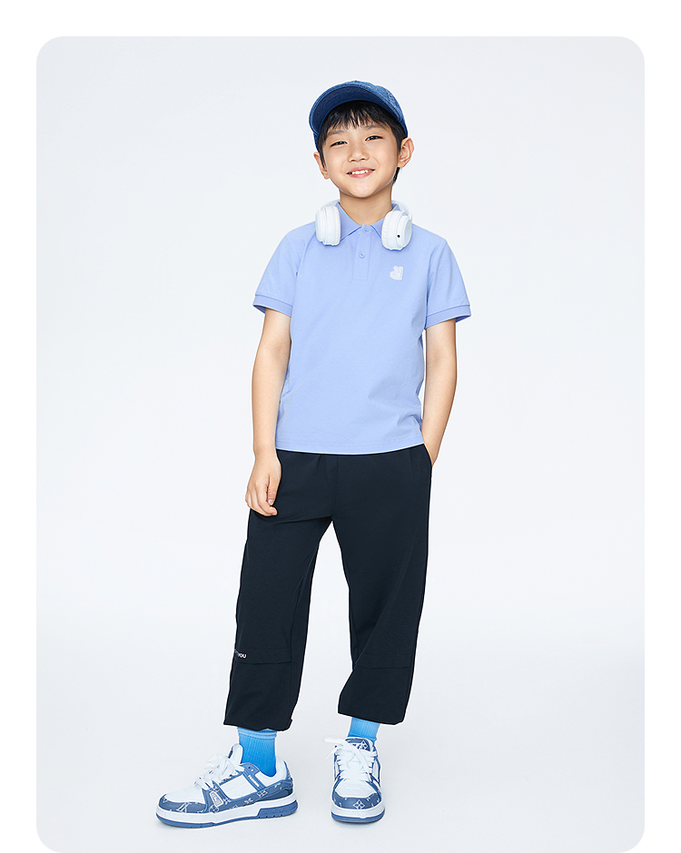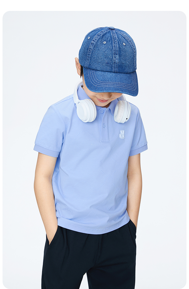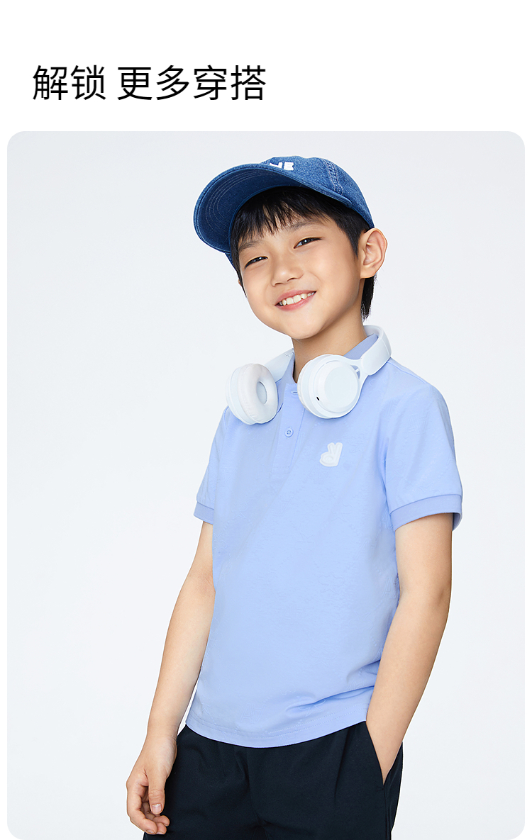 男童翻领SORONA短袖针织衫夏季新款安奈儿童装EB521175