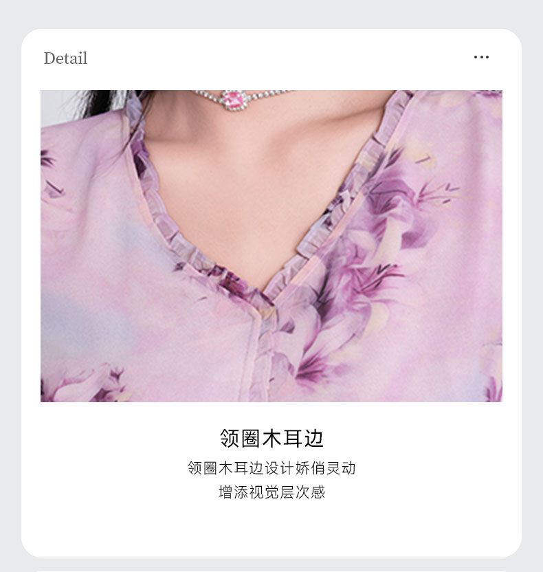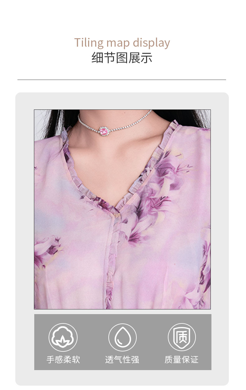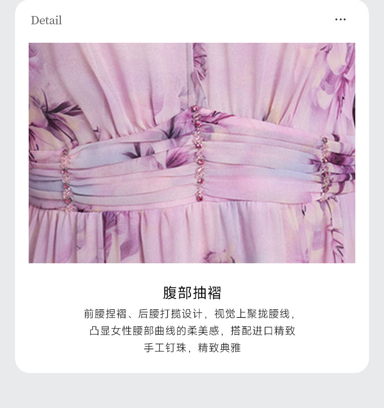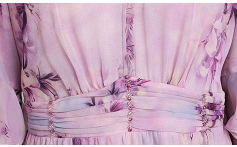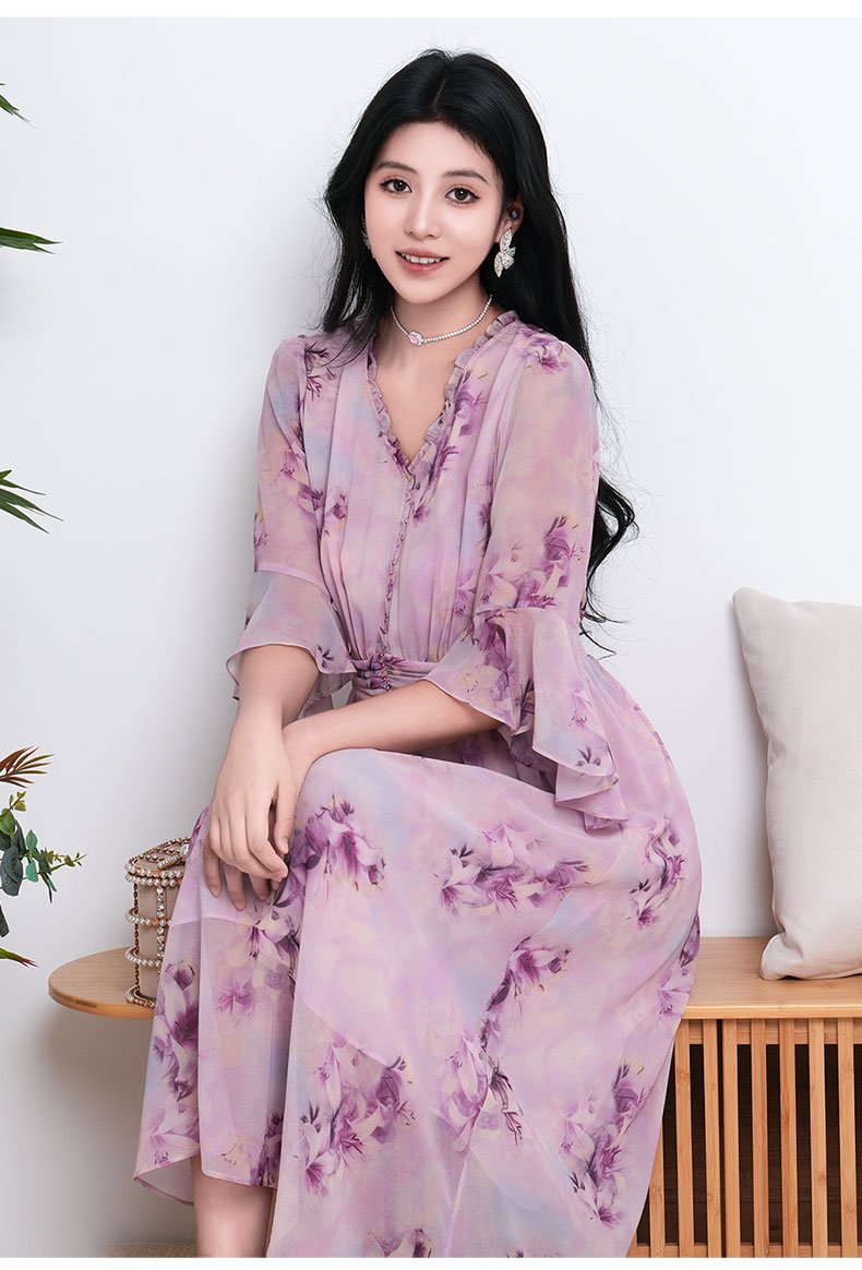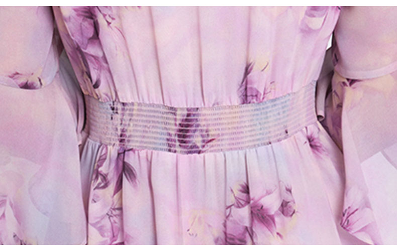 乔万尼新品大女主气质粉韵水彩印花V领收腰连衣裙ED2E521
