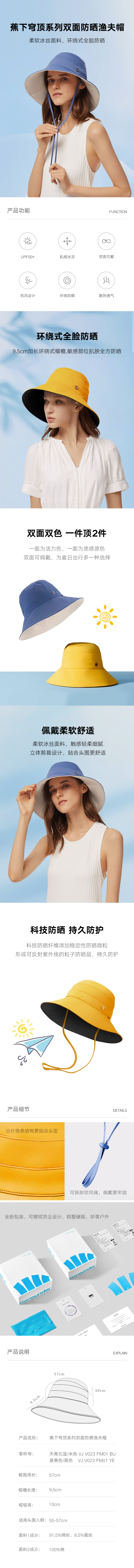 蕉下穹顶系列双面防晒渔夫帽