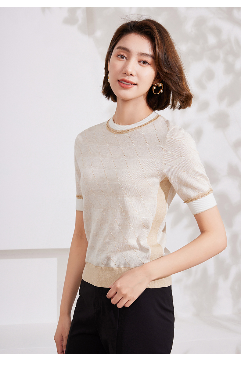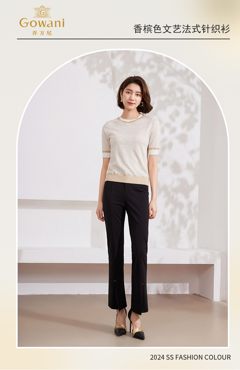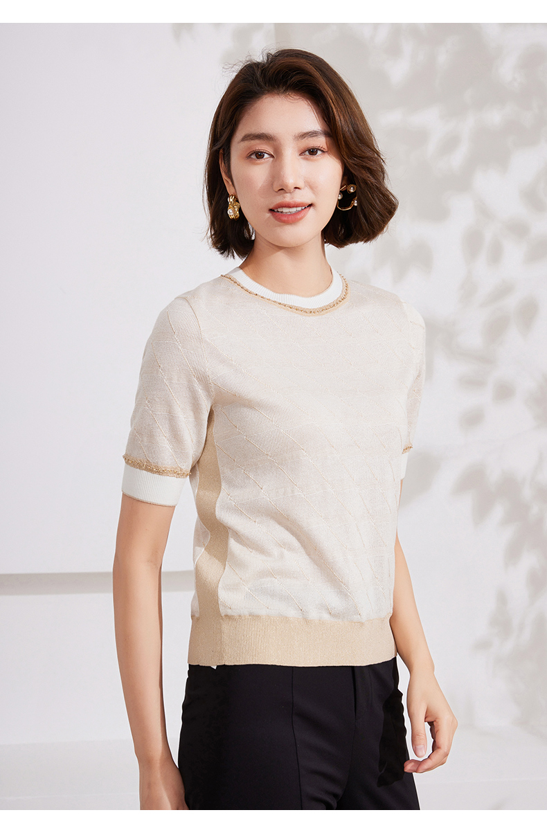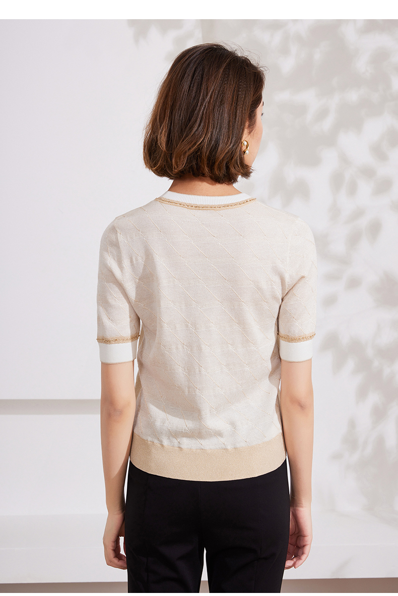 乔万尼针织衫女新款短袖法式撞色高级感EM2M855