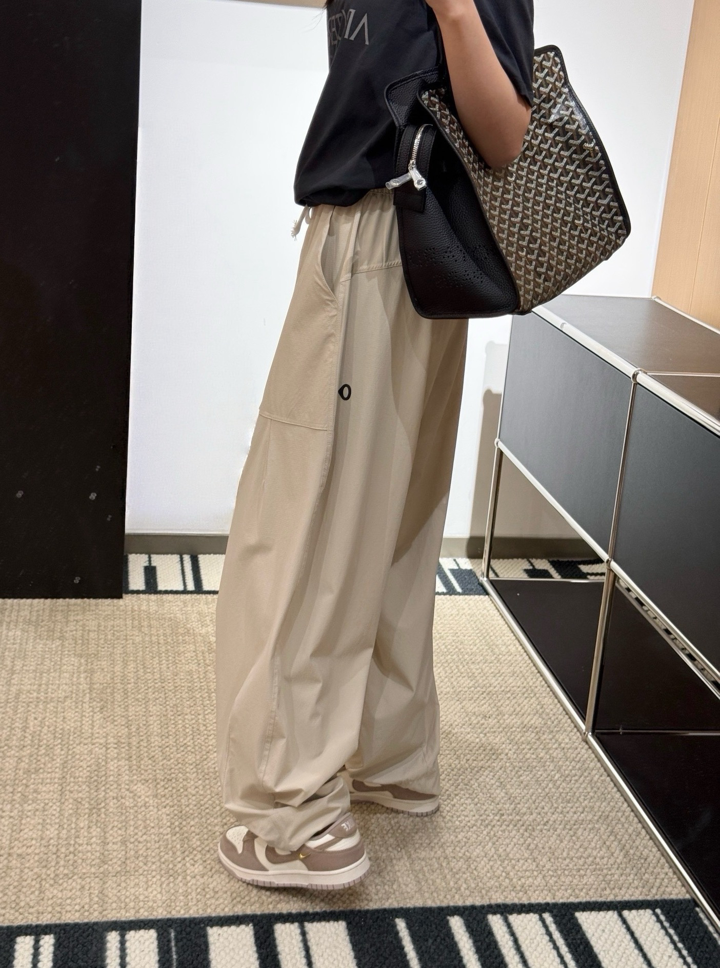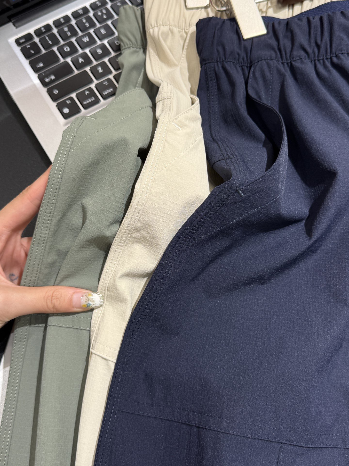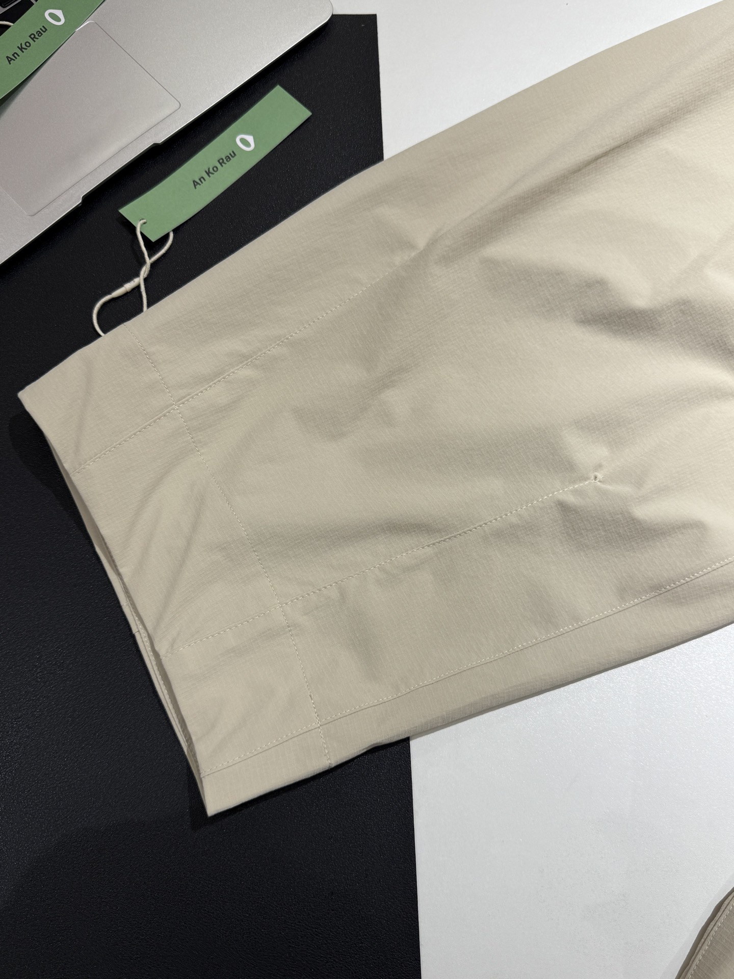 90%锦纶➕10%氨纶黄金配比,表面有明显的肌理感,整体呈哑光质感挺阔垂顺不软塌