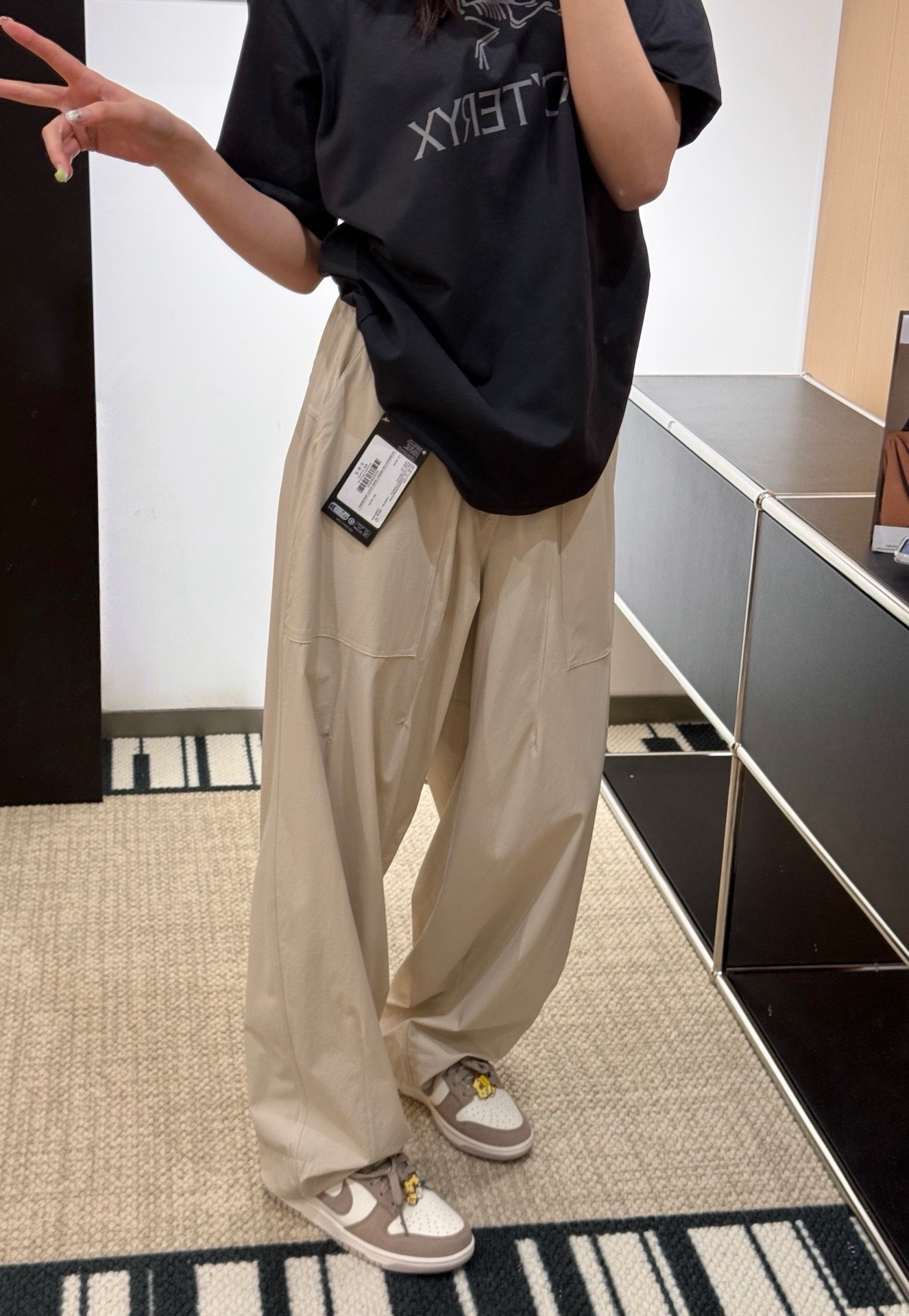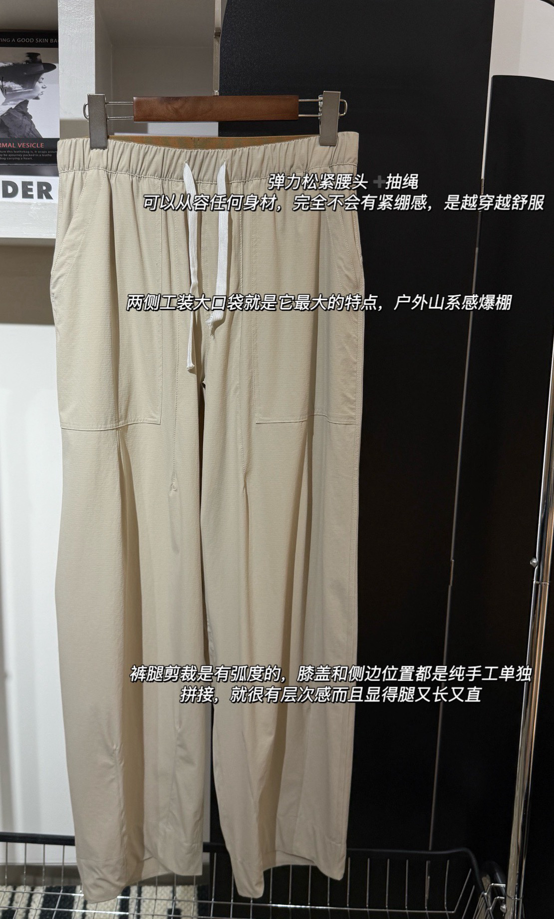 触感冰冰凉!是轻量化的纱线,出汗也不粘腻,上身没负担,户外穿简直舒服炸了重点先看版型‼️有点工装直筒裤的感觉