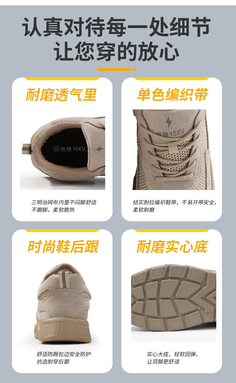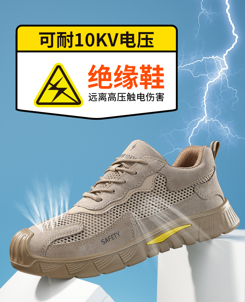 新款夏季实心底劳保鞋绝缘鞋10KV电工专用工作安全鞋多用途焊工反绒皮防砸防刺工作鞋