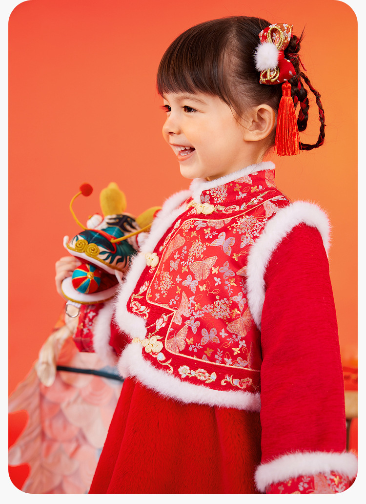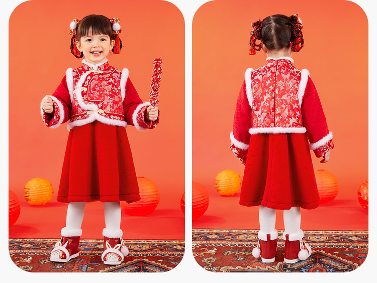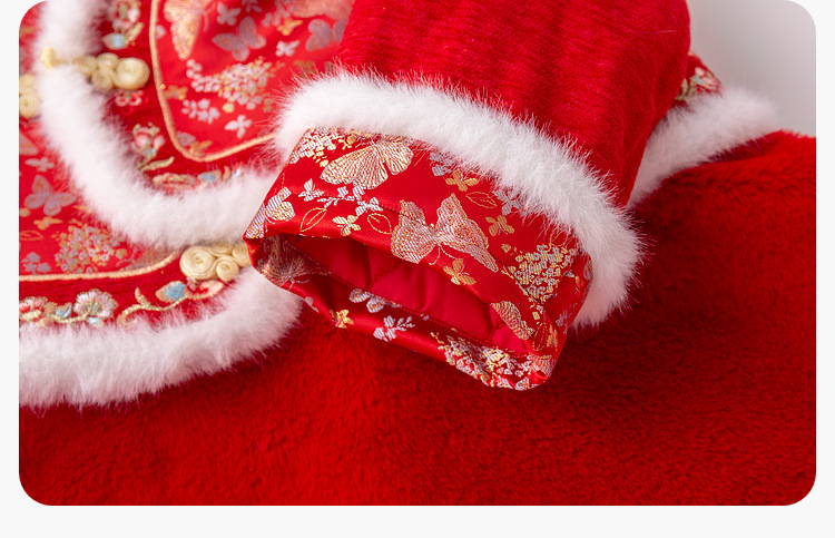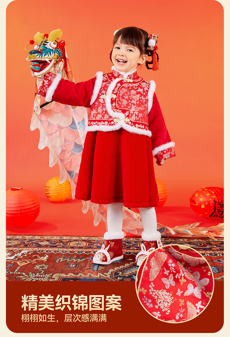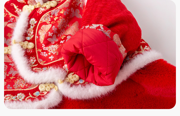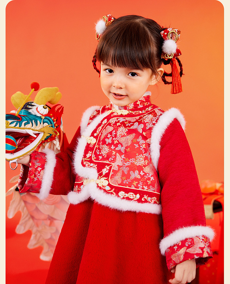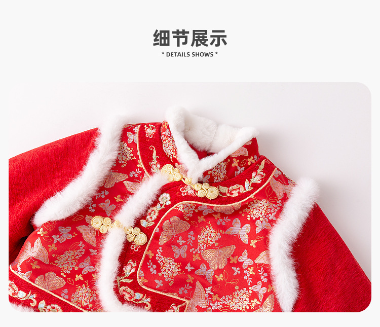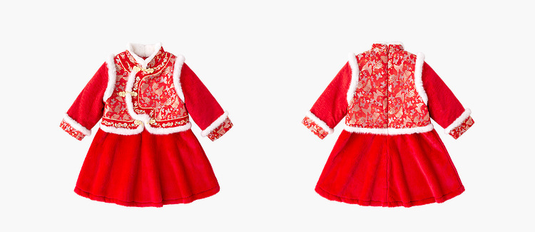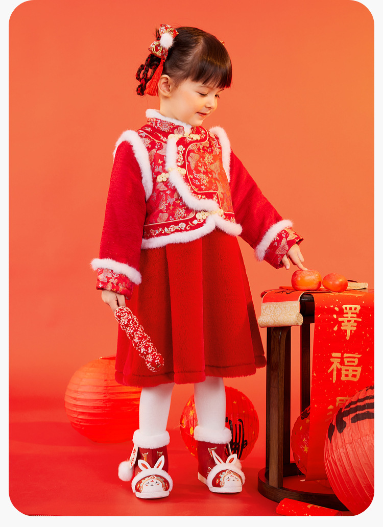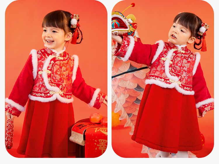 嘟嘟家女童中国风拜年服女宝宝汉服裙子儿童红色新年周岁礼服童装F4DHF015