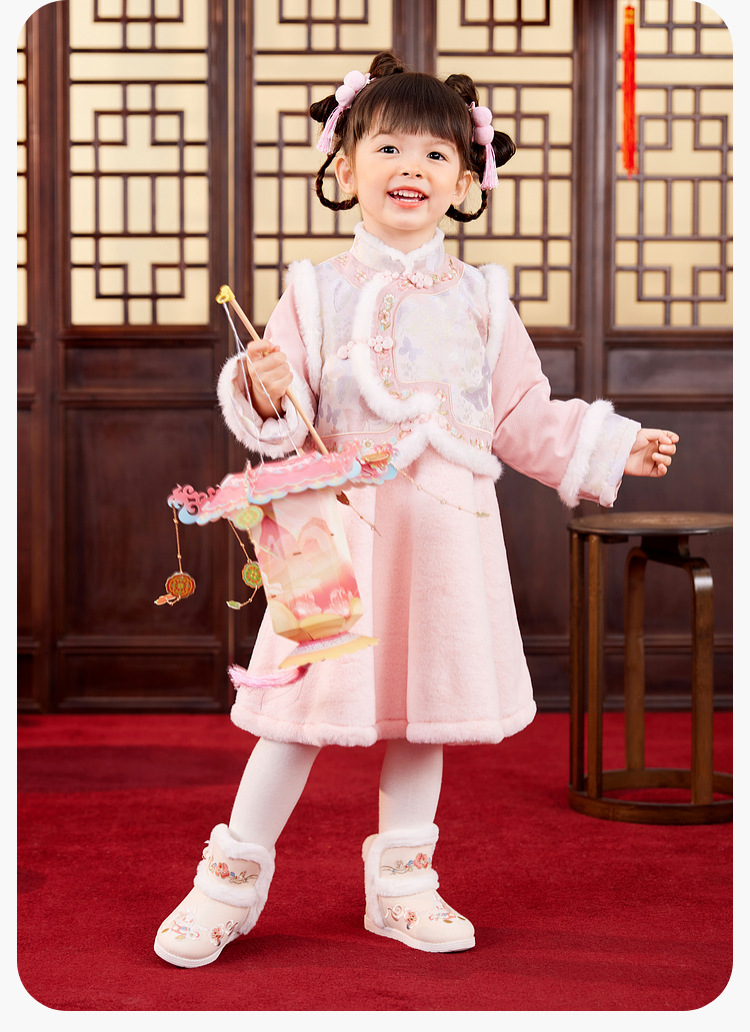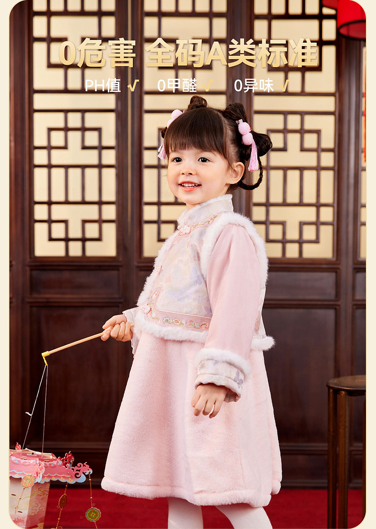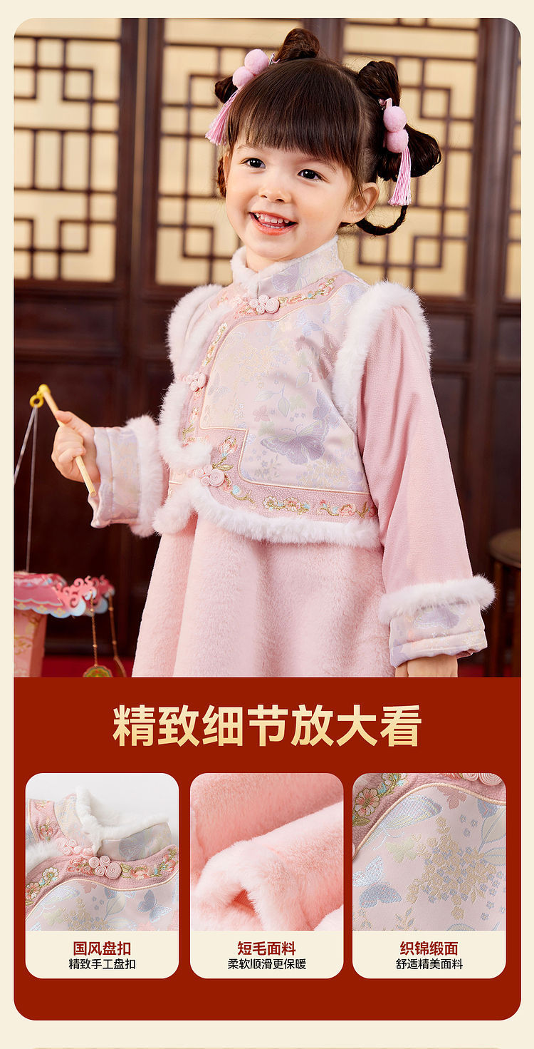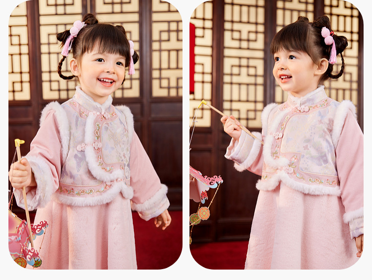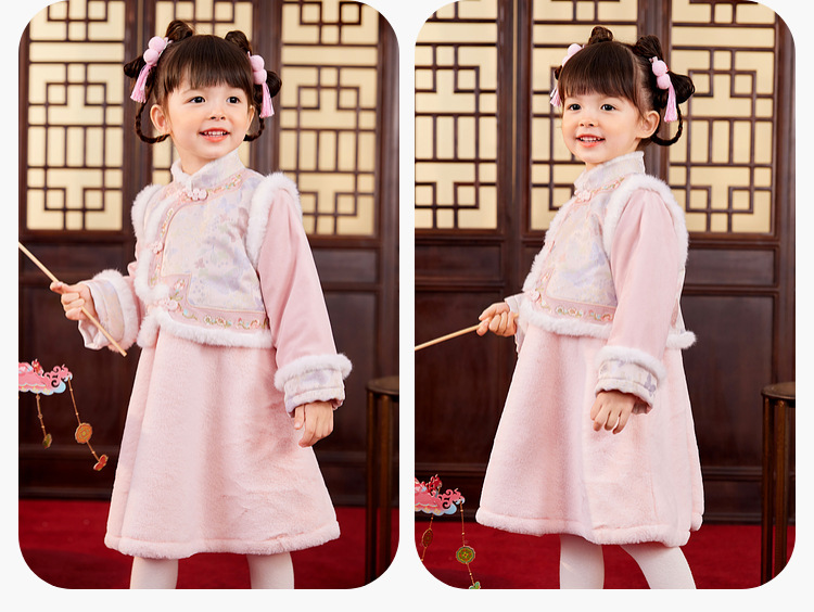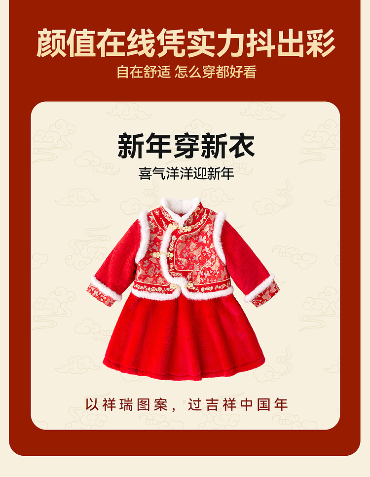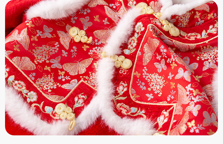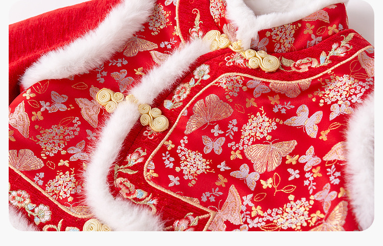 嘟嘟家女童中国风拜年服女宝宝汉服裙子儿童红色新年周岁礼服童装F4DHF015