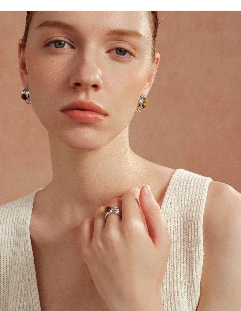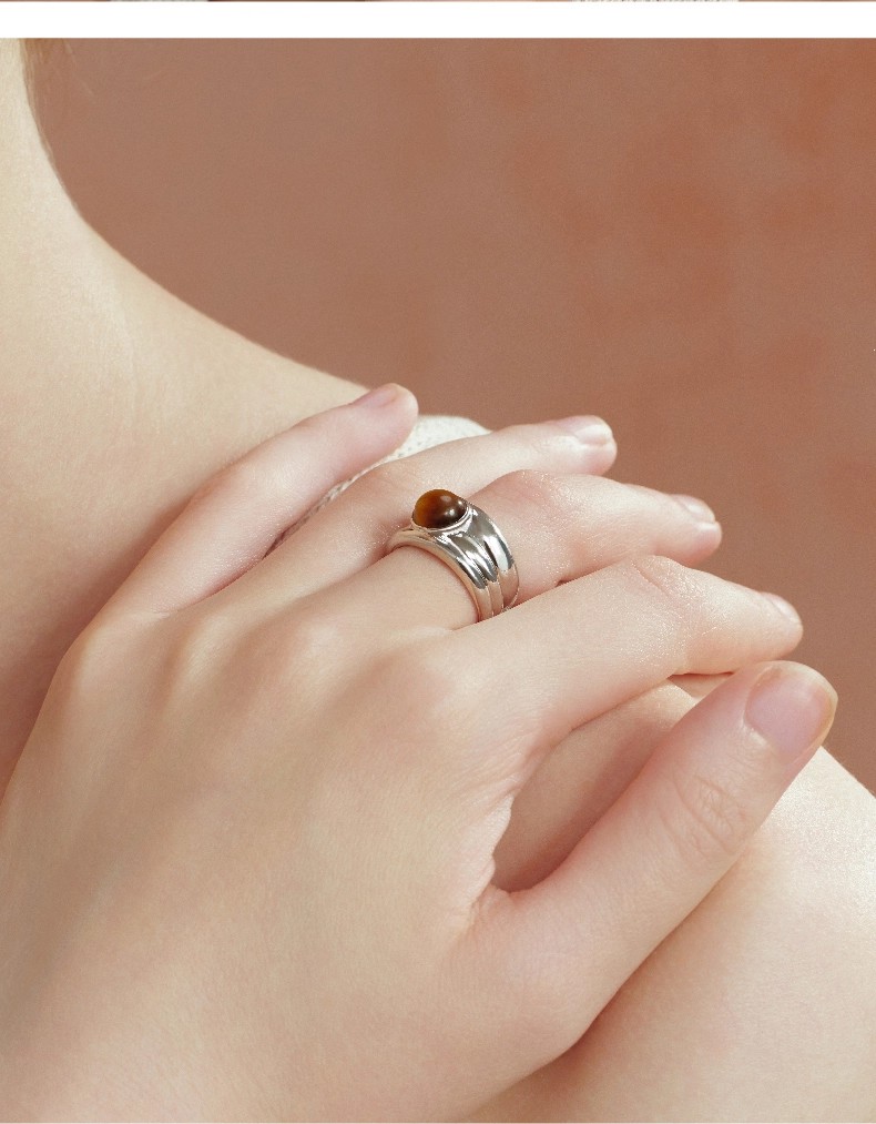 Neverfar Essential·秋冬系列 虎眼石岩纹宽口正圆戒指