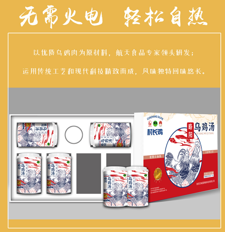 陕西略阳乌鸡汤 村长鸡 原味自加热乌鸡汤礼盒 6*280g 商品图0