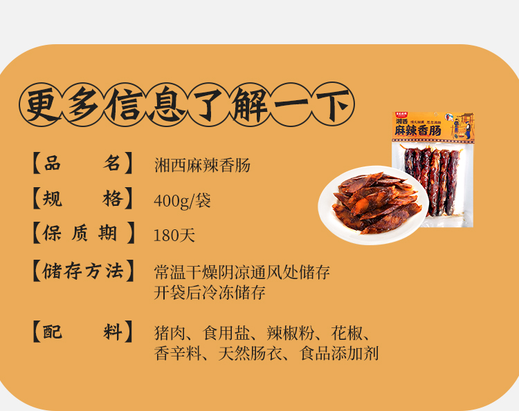 【疯抢价5袋15.9】老长沙手工肠香辣/麻辣22g/袋 手工灌制一口爆香