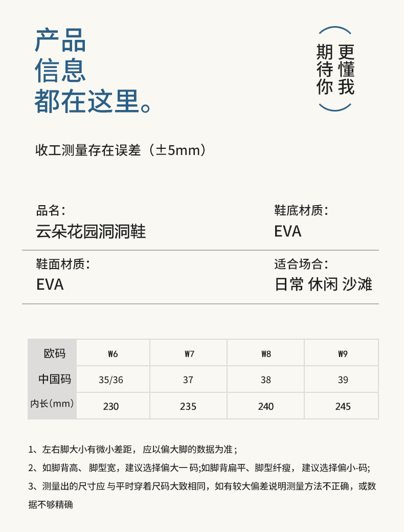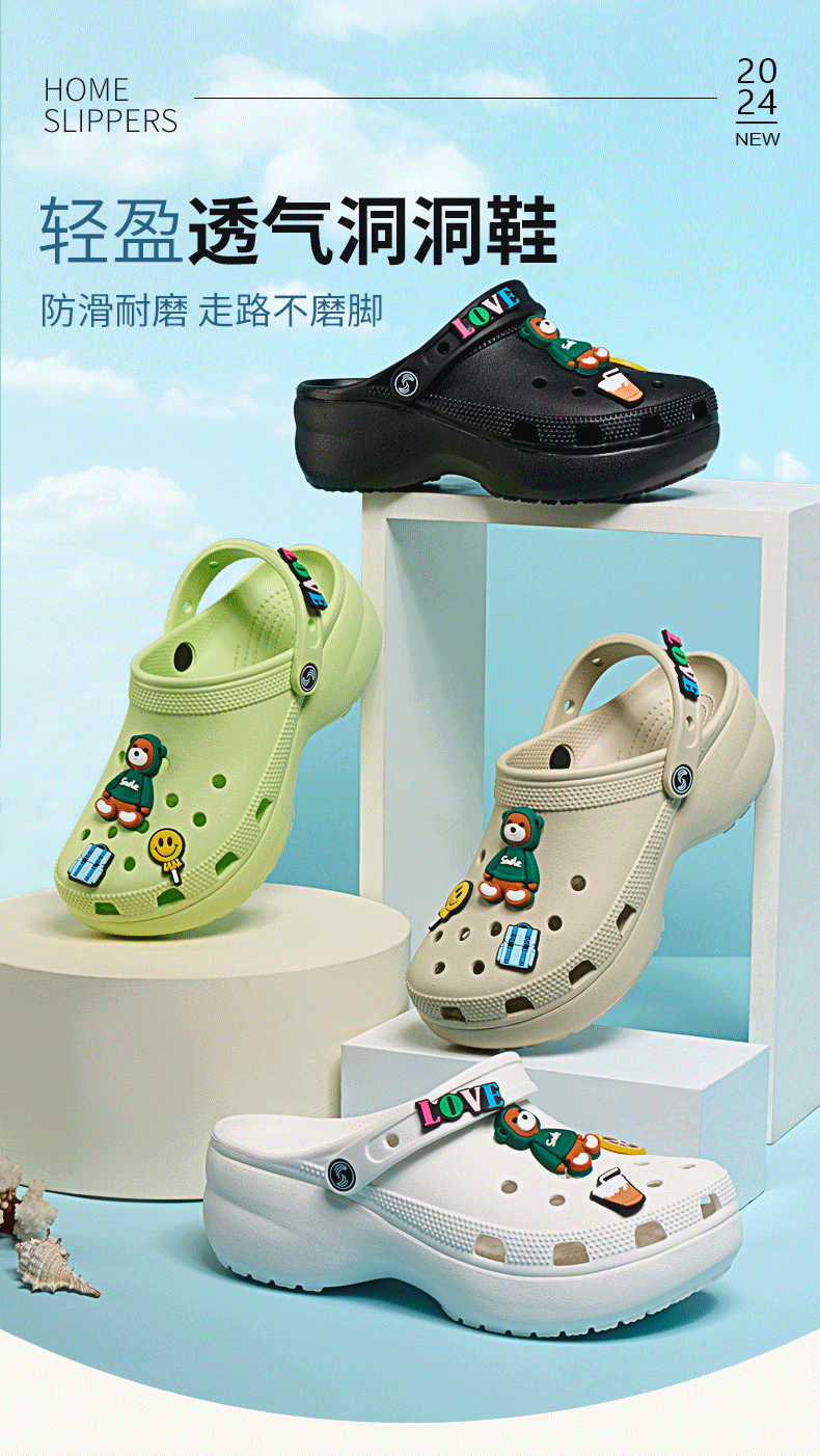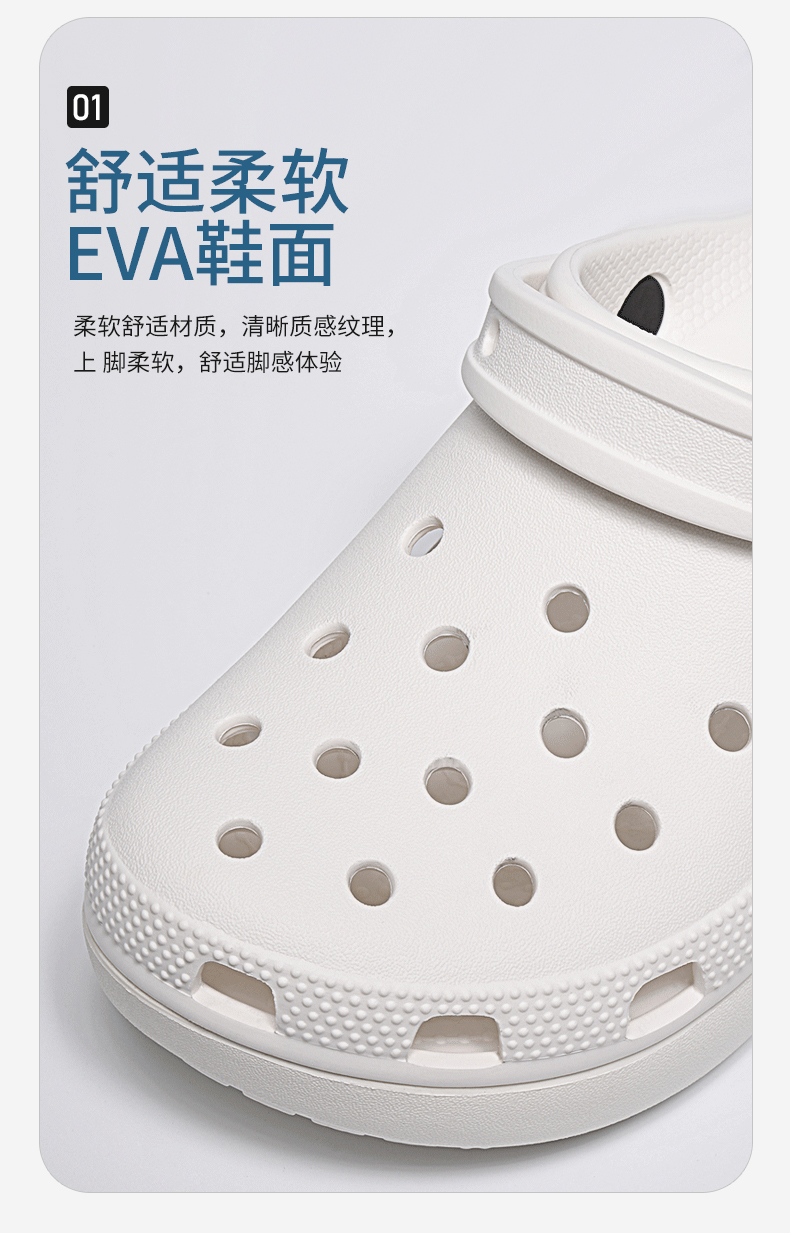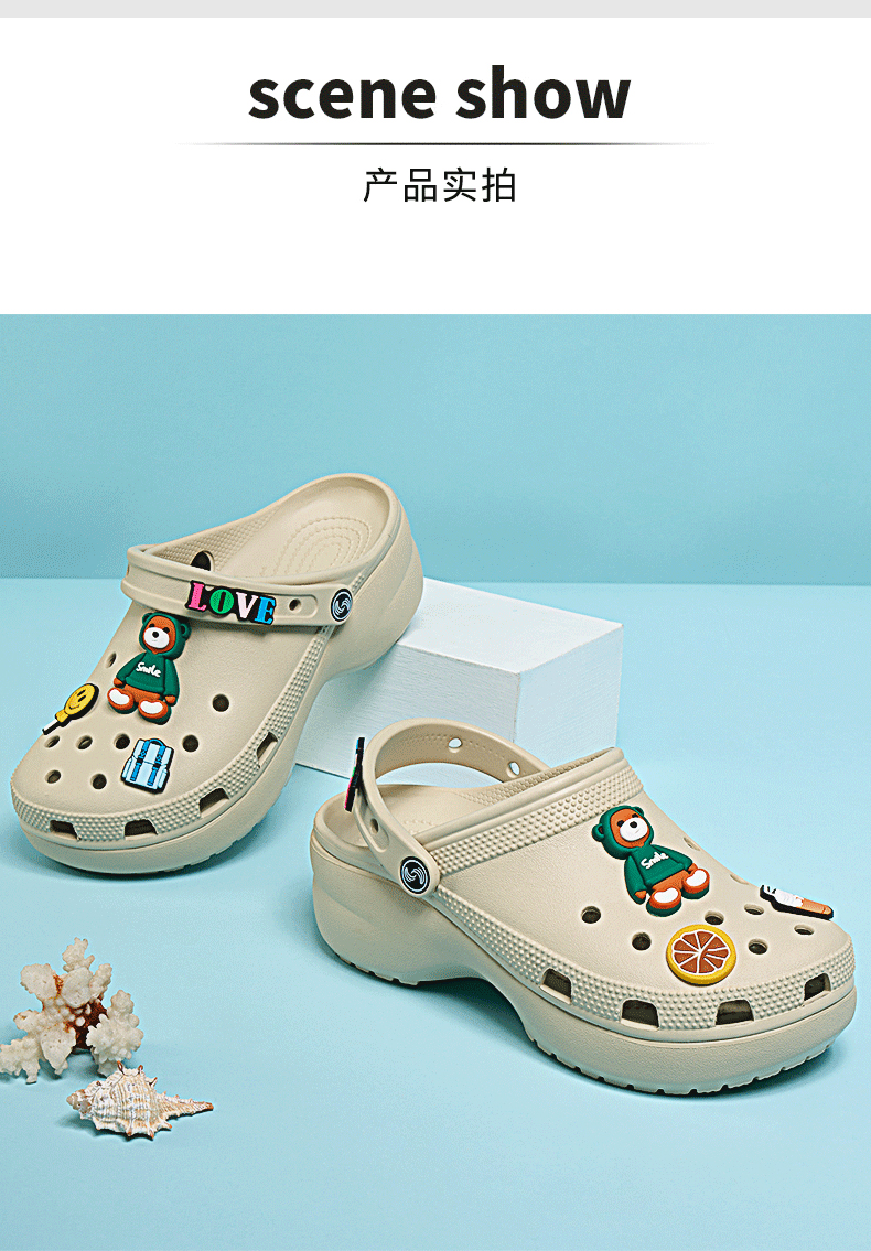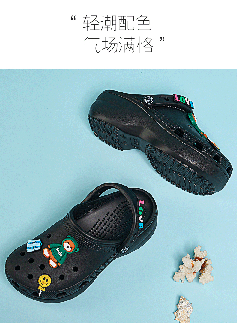 美尘 云朵洞洞老爹花园洞洞凉拖鞋(配8个鞋花)