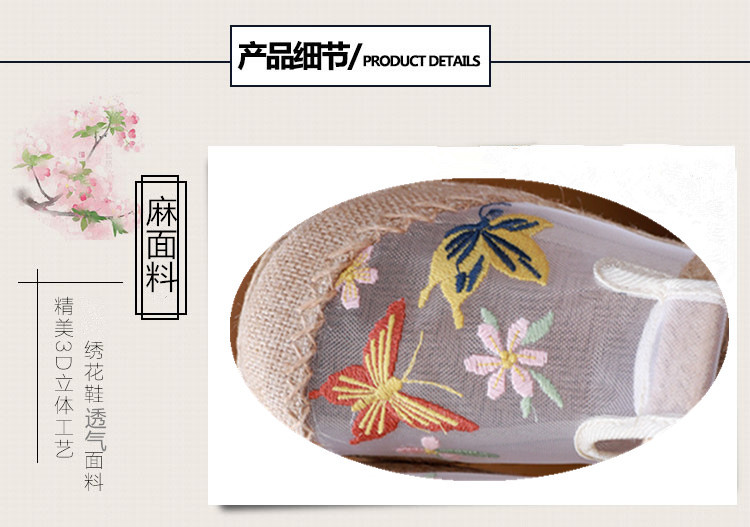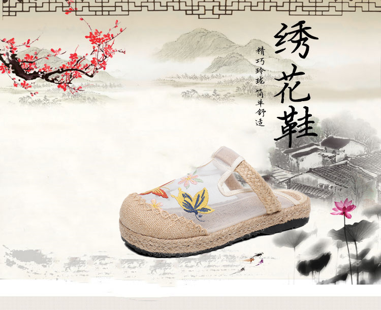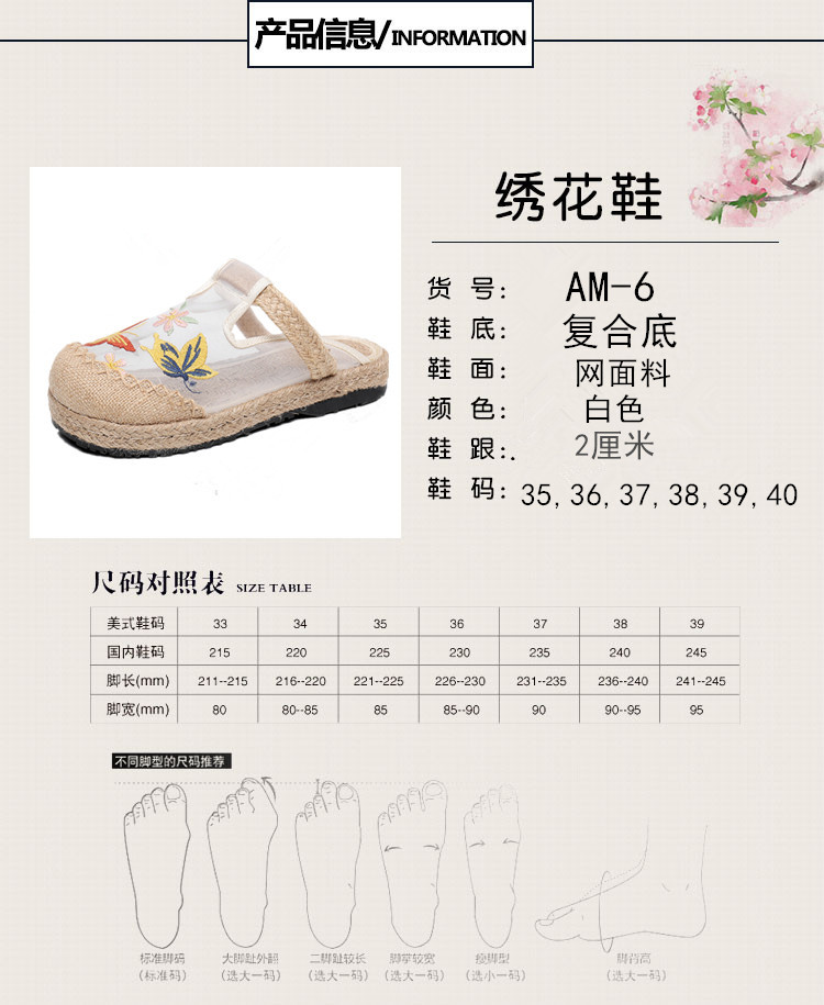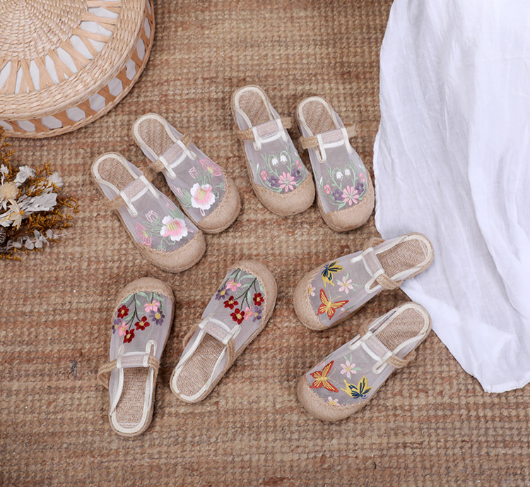 夏网纱布拖鞋,亚麻防滑圆头外穿绣花网红鞋AM-6
