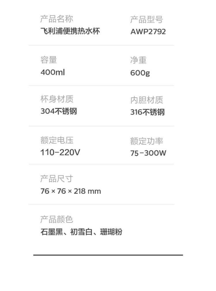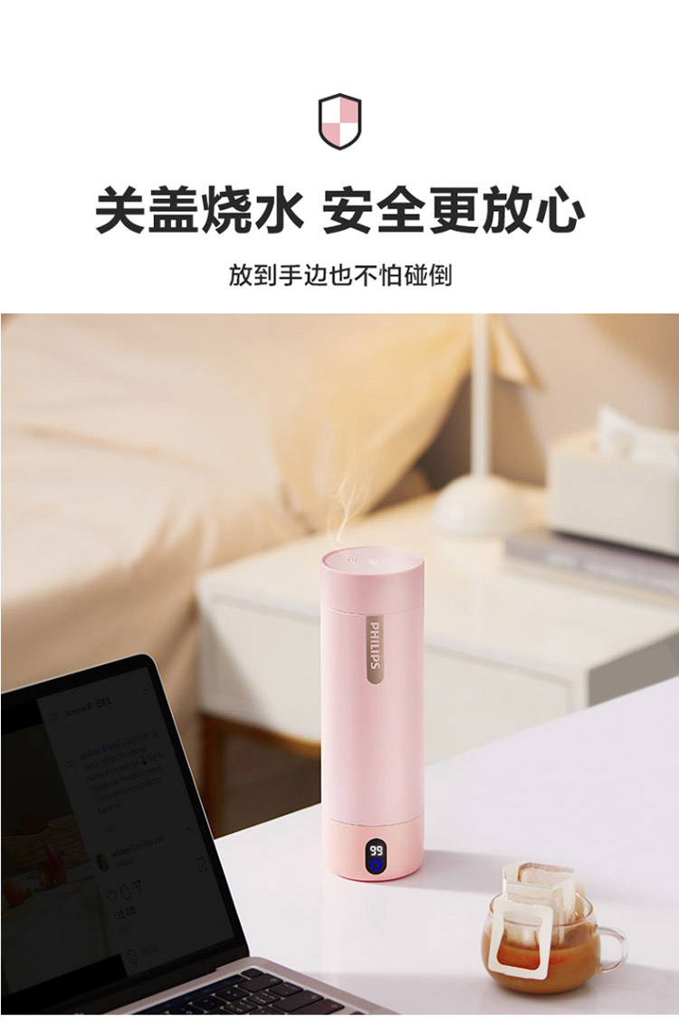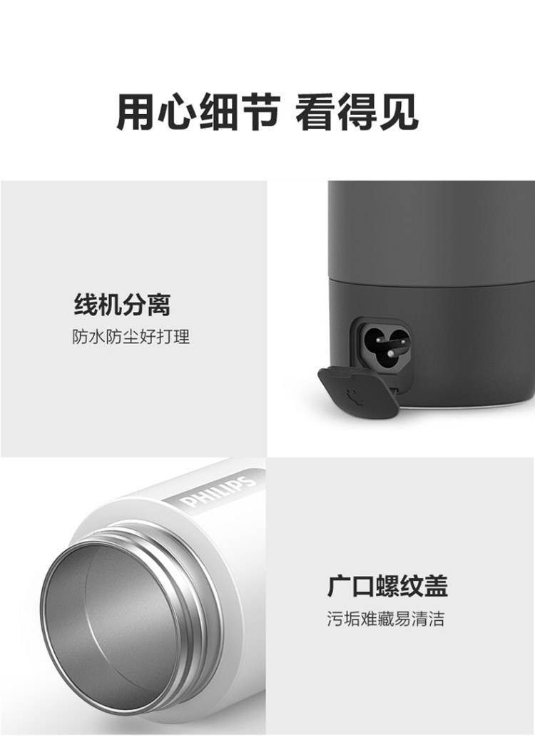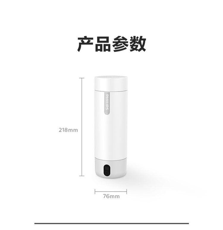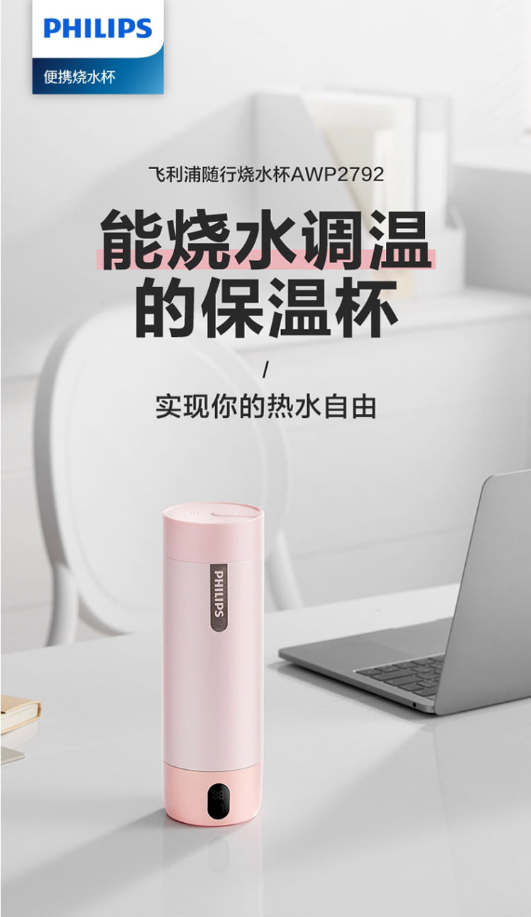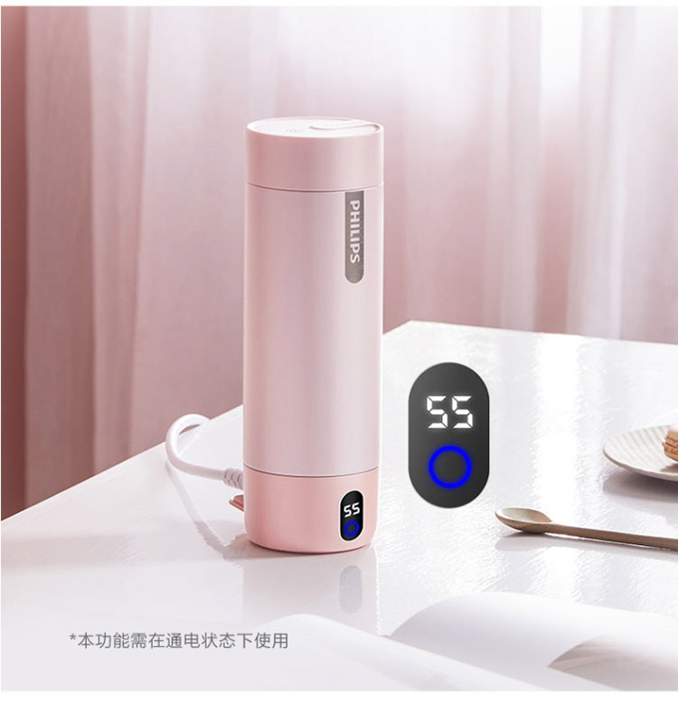 【品牌直发】飞利浦PHILIPS随行电热水杯便携迷你烧水杯 316不锈钢内胆电热杯 旅行养生保温水杯400ml AWP2792
