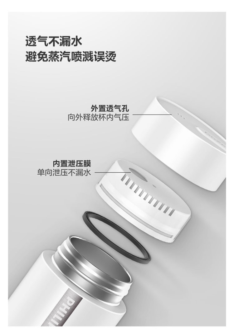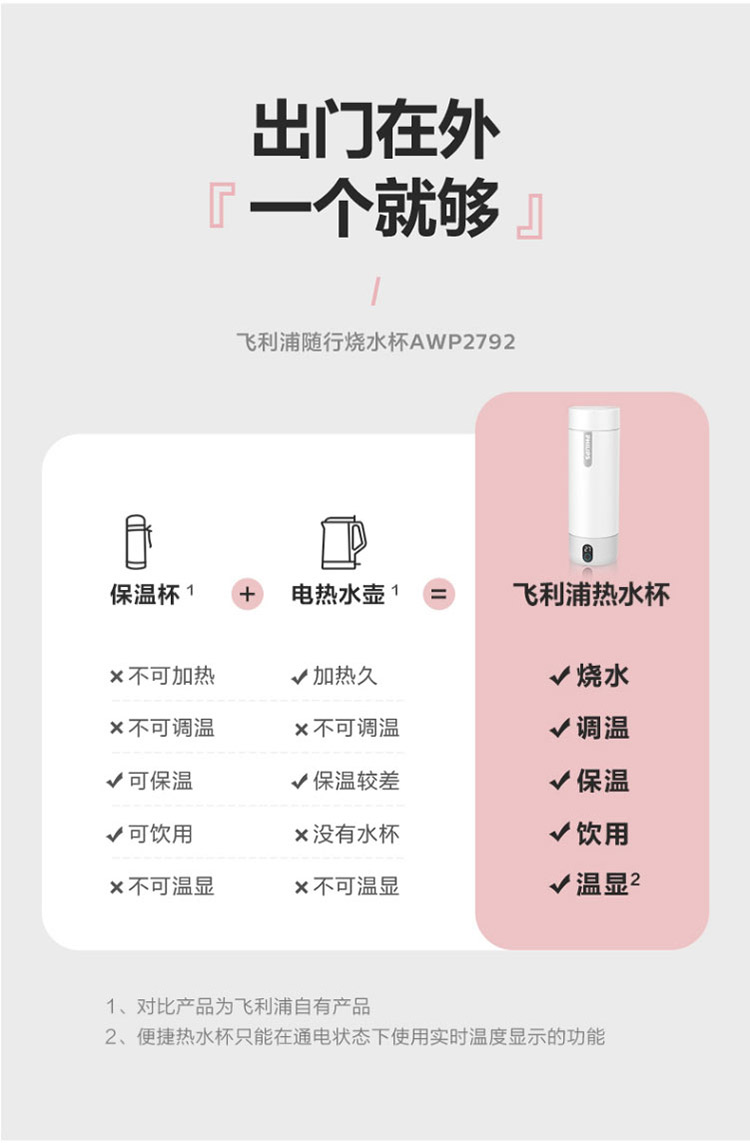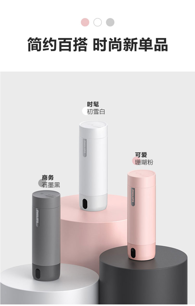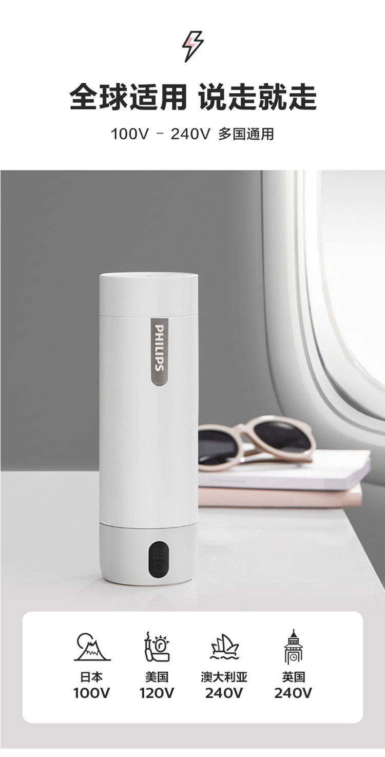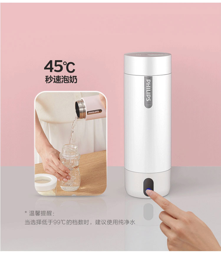 【品牌直发】飞利浦PHILIPS随行电热水杯便携迷你烧水杯 316不锈钢内胆电热杯 旅行养生保温水杯400ml AWP2792