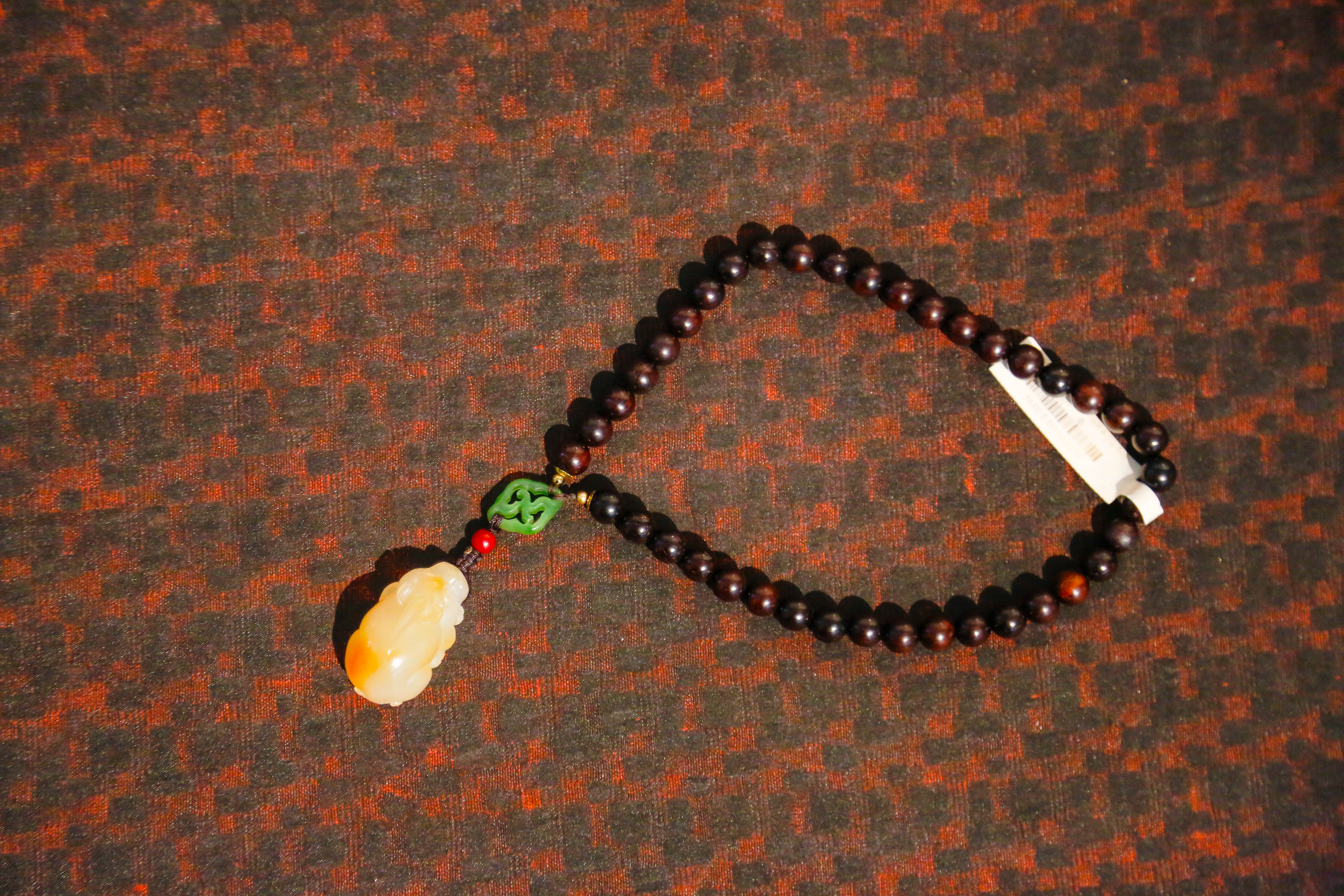 「小叶紫檀」"仙鹤延年"碧玉圆珠项链 24k 6mm
