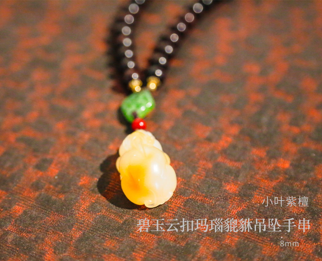 「小叶紫檀」碧玉云扣玛瑙貔貅吊坠手链 8mm