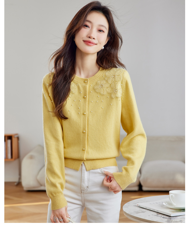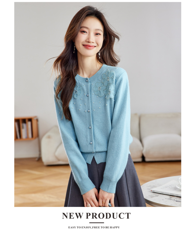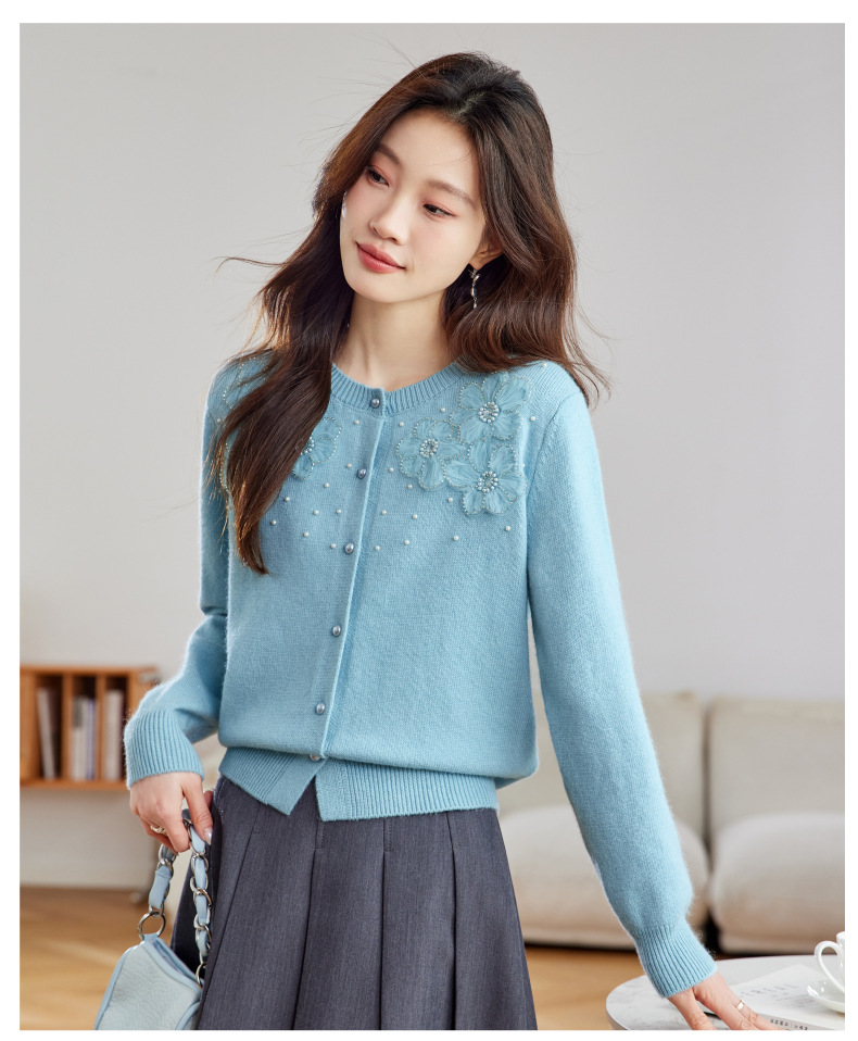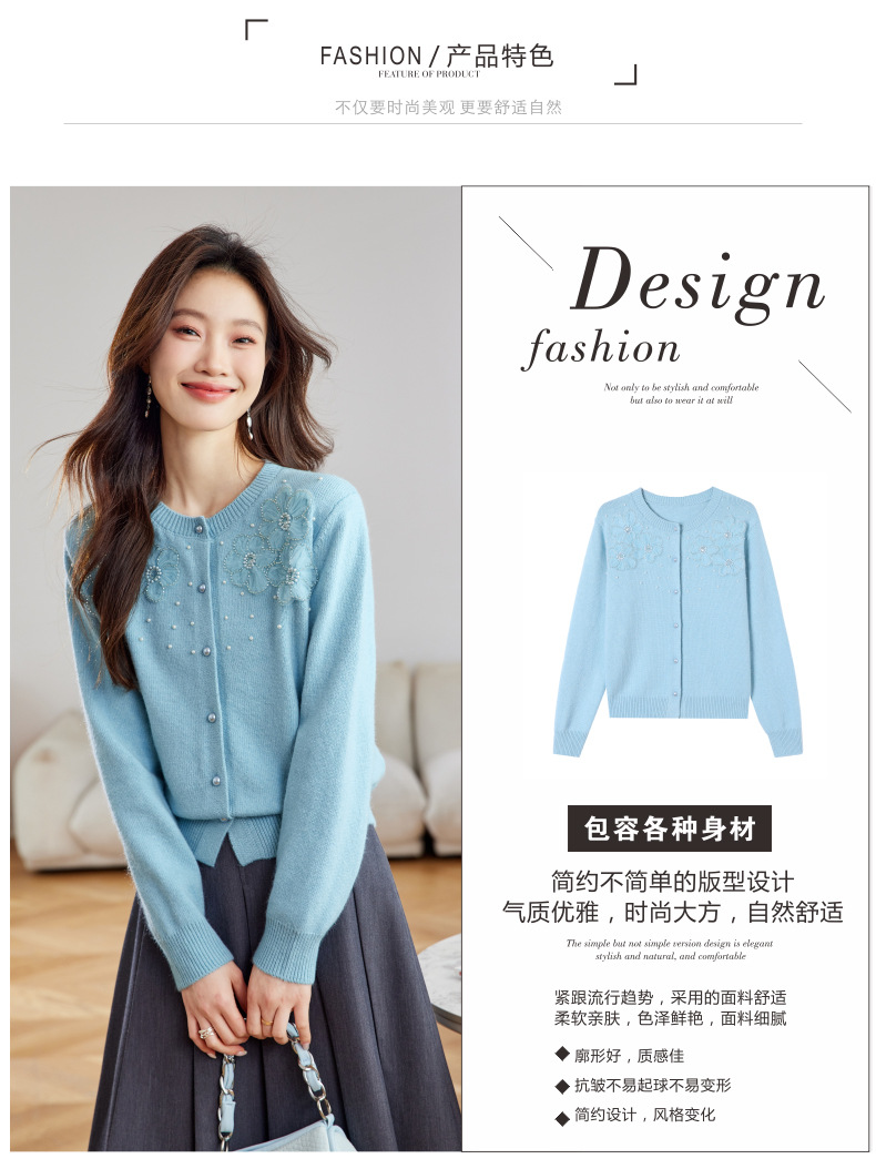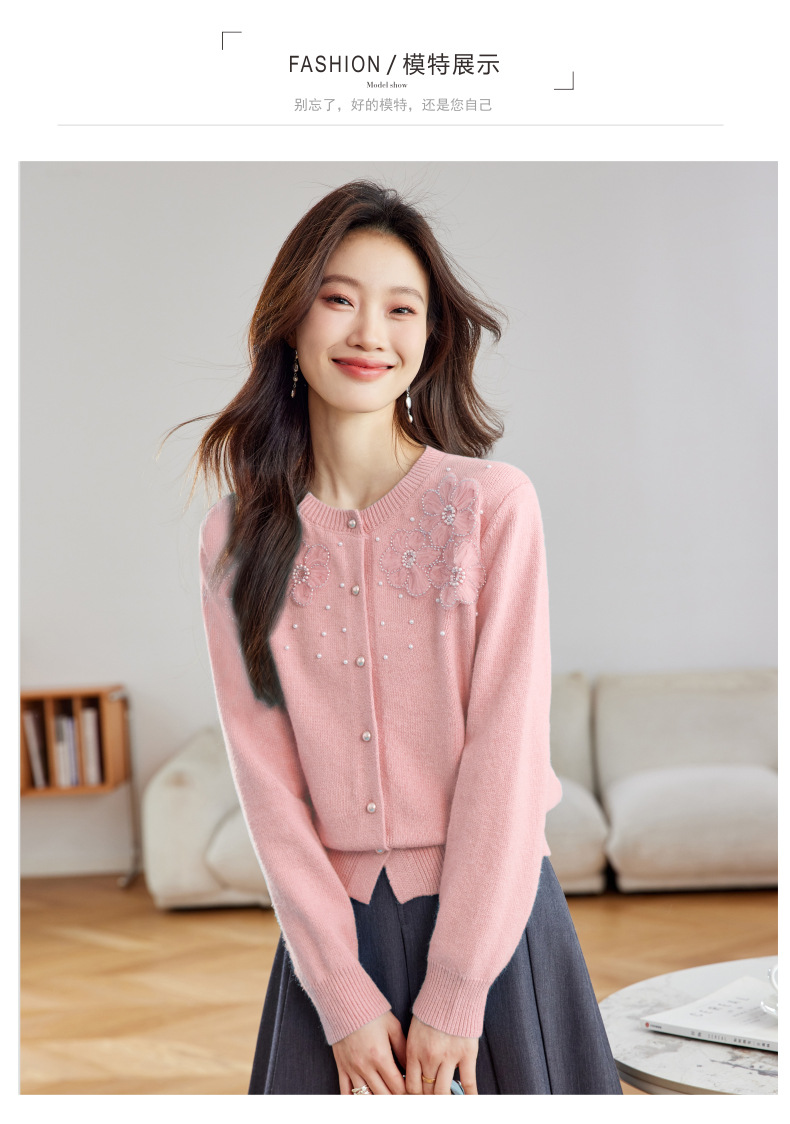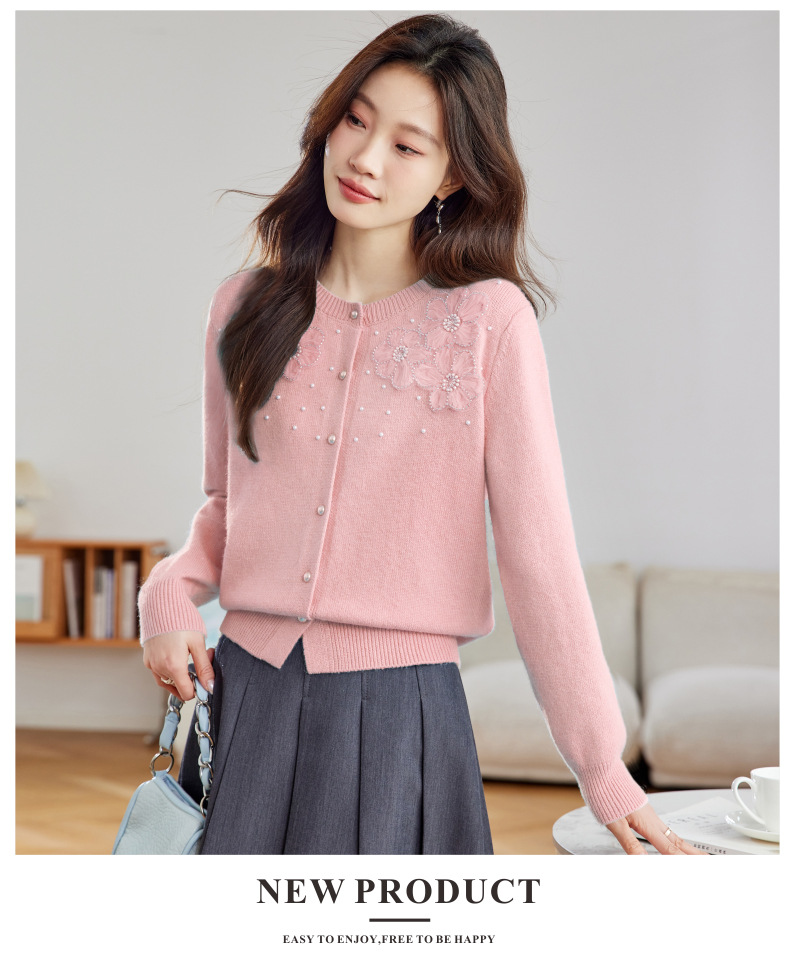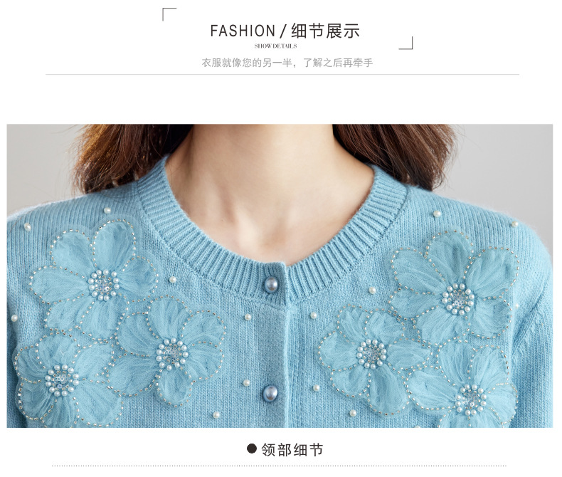 CC-27-2504春新款女装时尚立体花朵针织开衫毛衣外套小香风漂亮上衣女