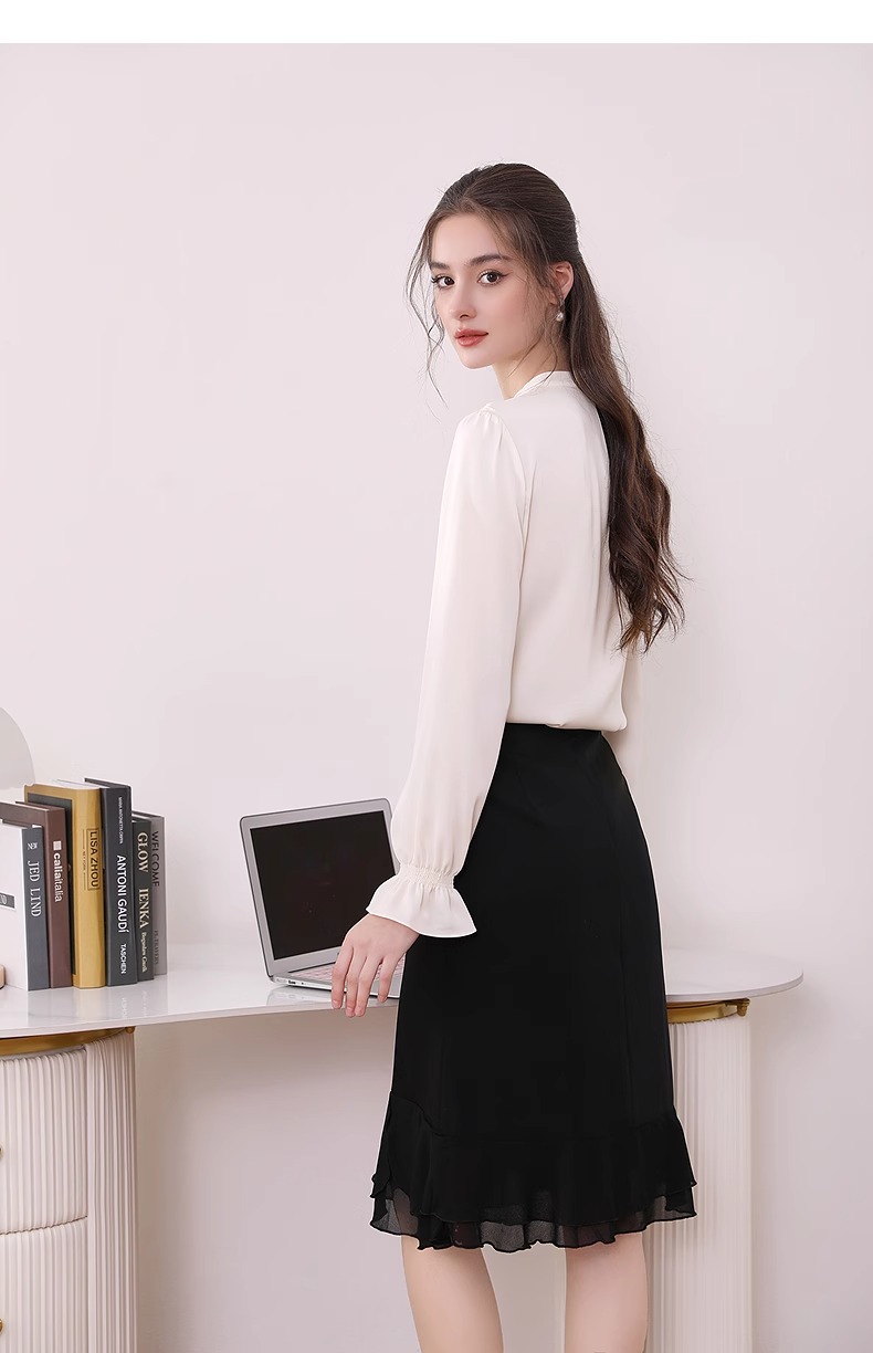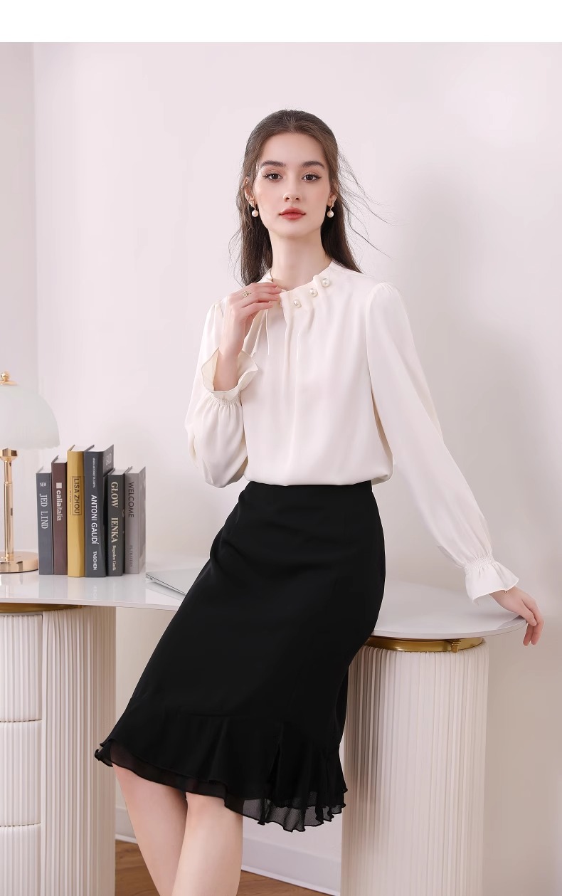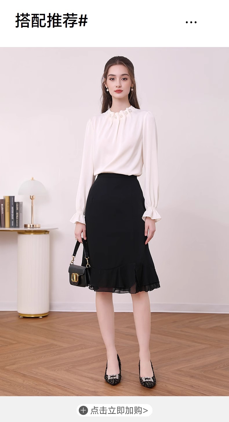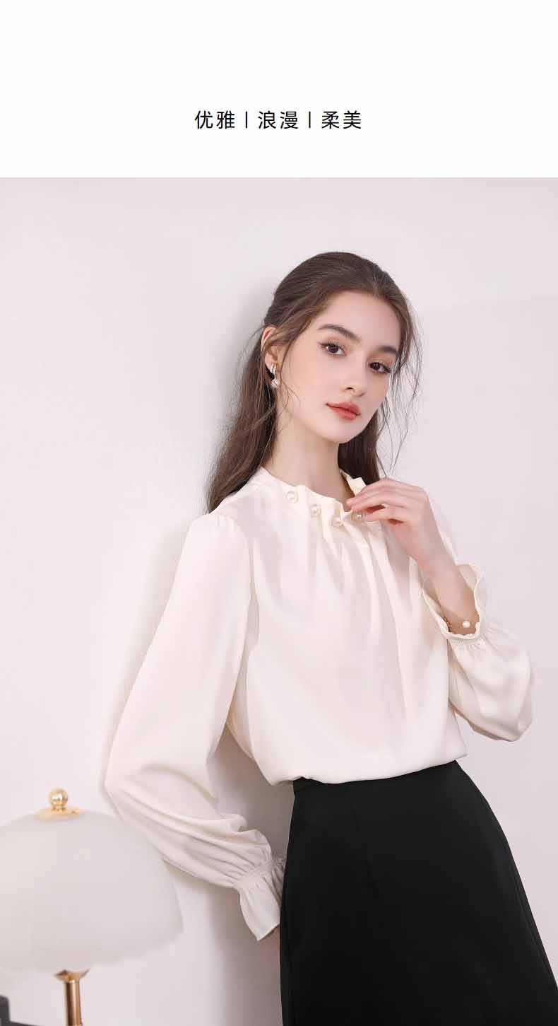 全新升级【铂金会员165/天猫219/差价54】(10239) 洛诗琳法式钉珠叠穿雪纺衫女2025春季新款通勤洋气缎面衬衫