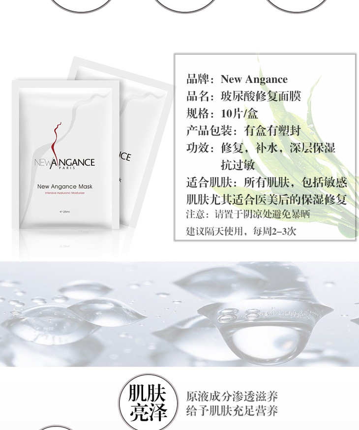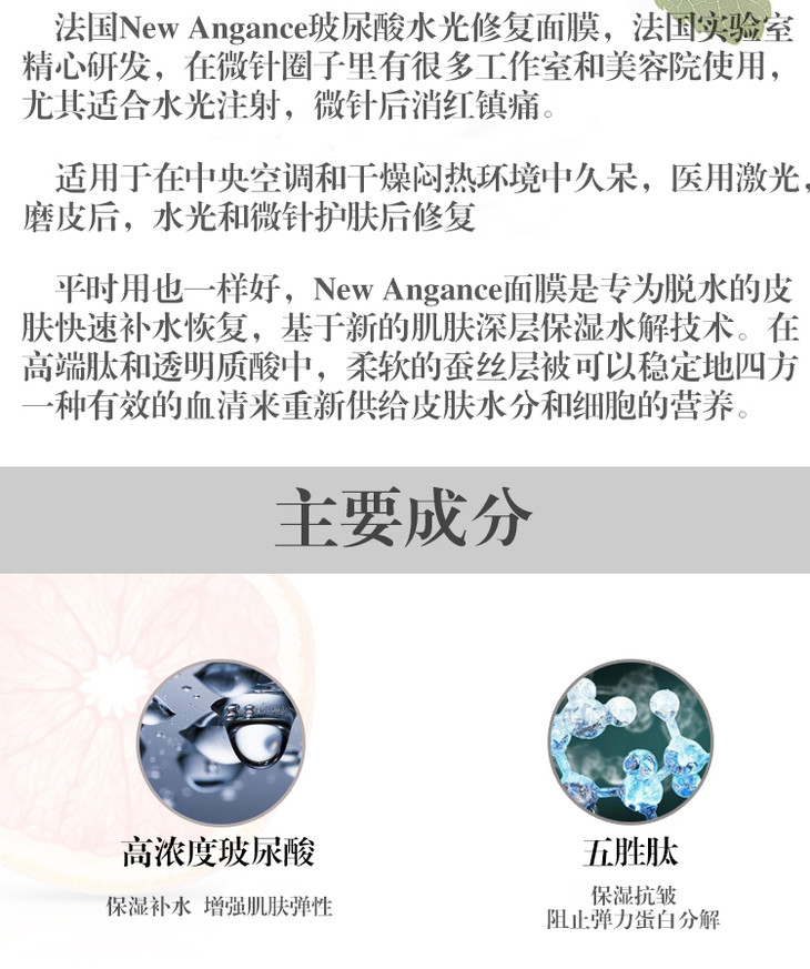 法国new angance玻尿酸水光修复面膜补水保湿微针10片