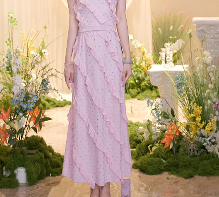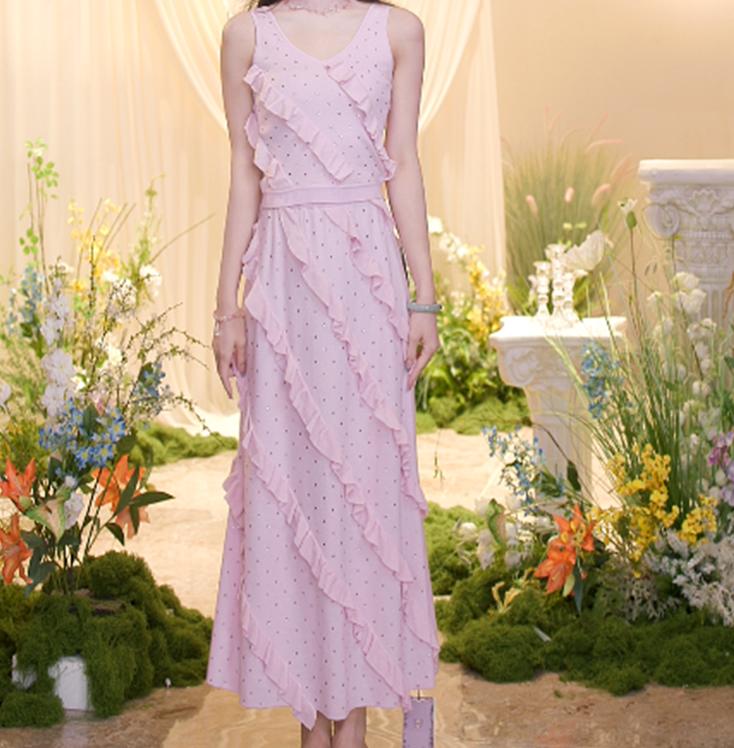MAXRIENY25新款烫钻荷叶边重工设计感半裙(货号:MF86SK252)