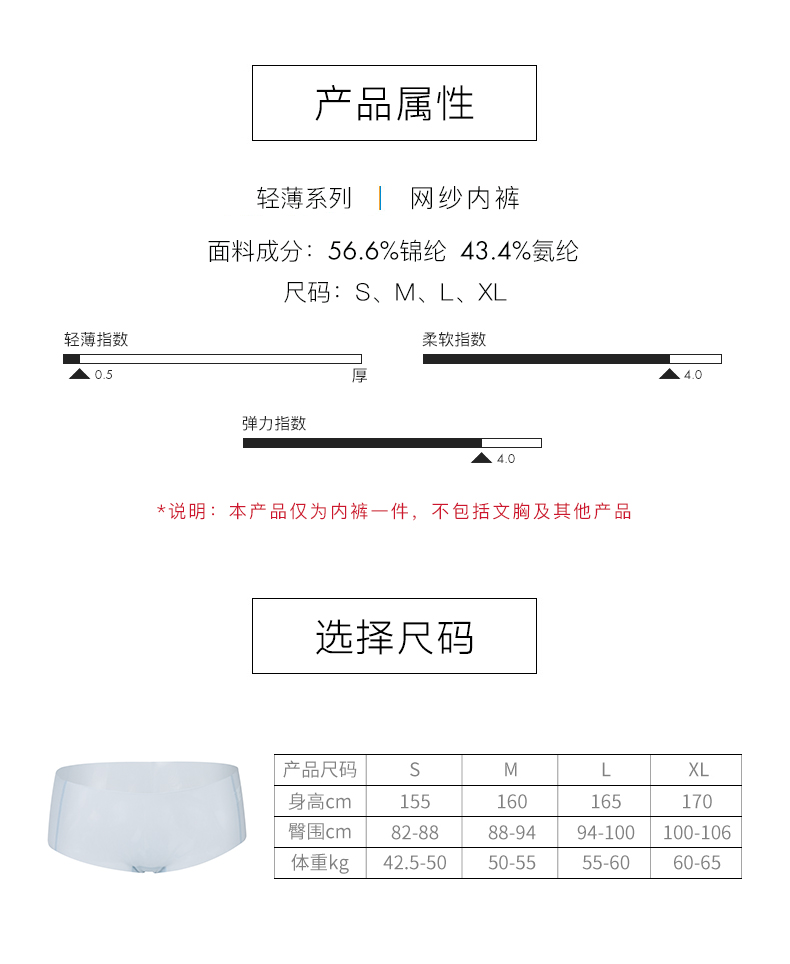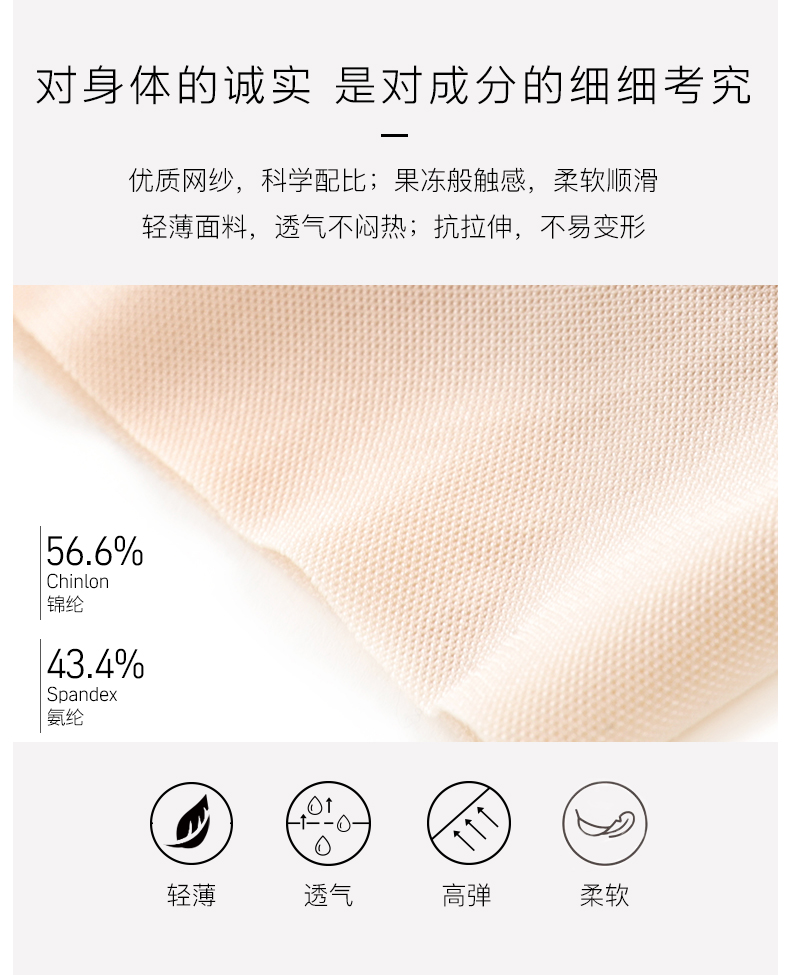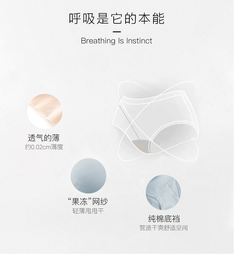 Ubras网纱透气镂空舒适无痕三角裤内女纯棉底档中腰轻速干包臀