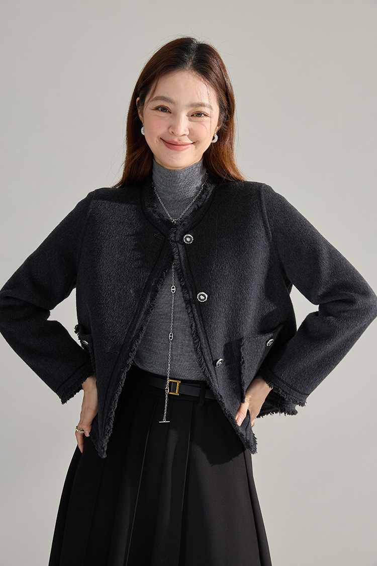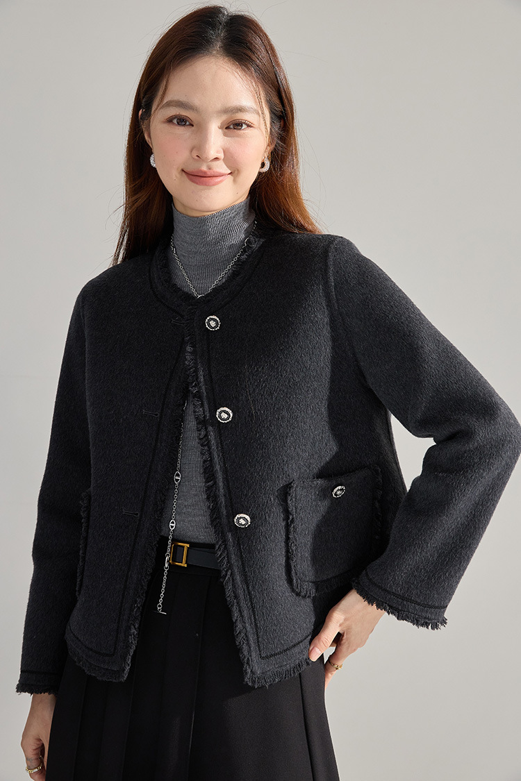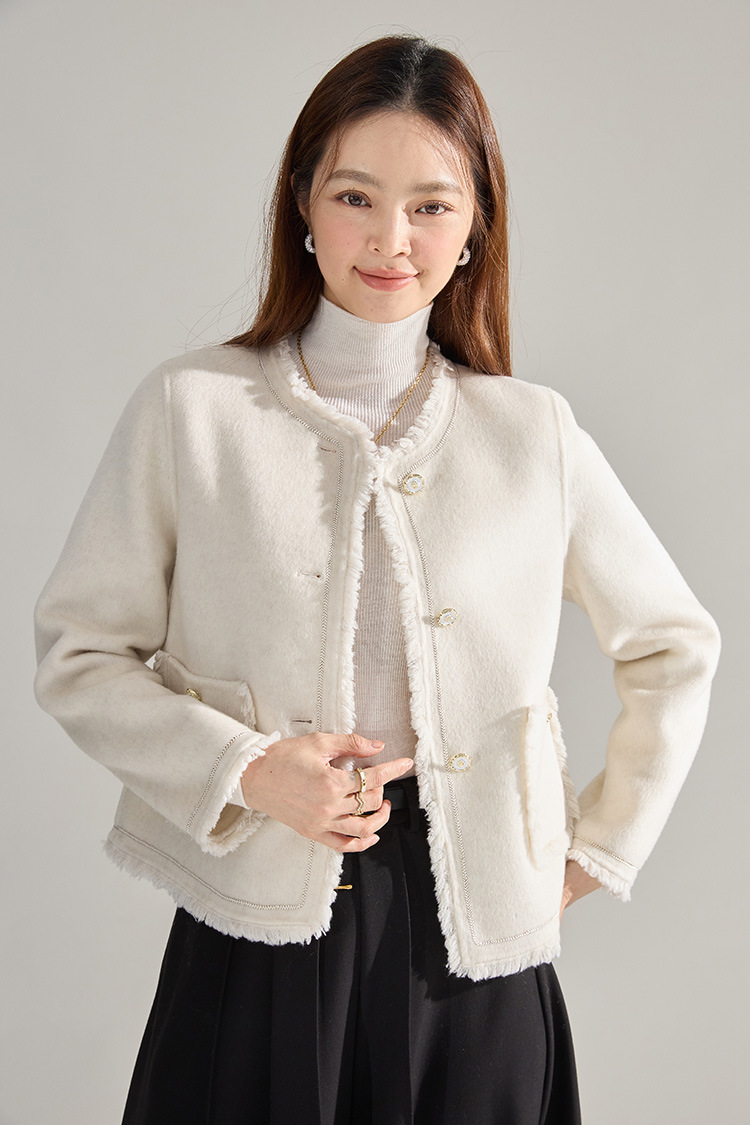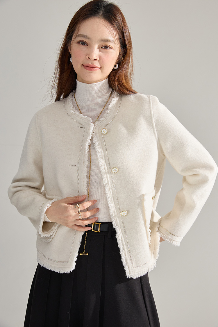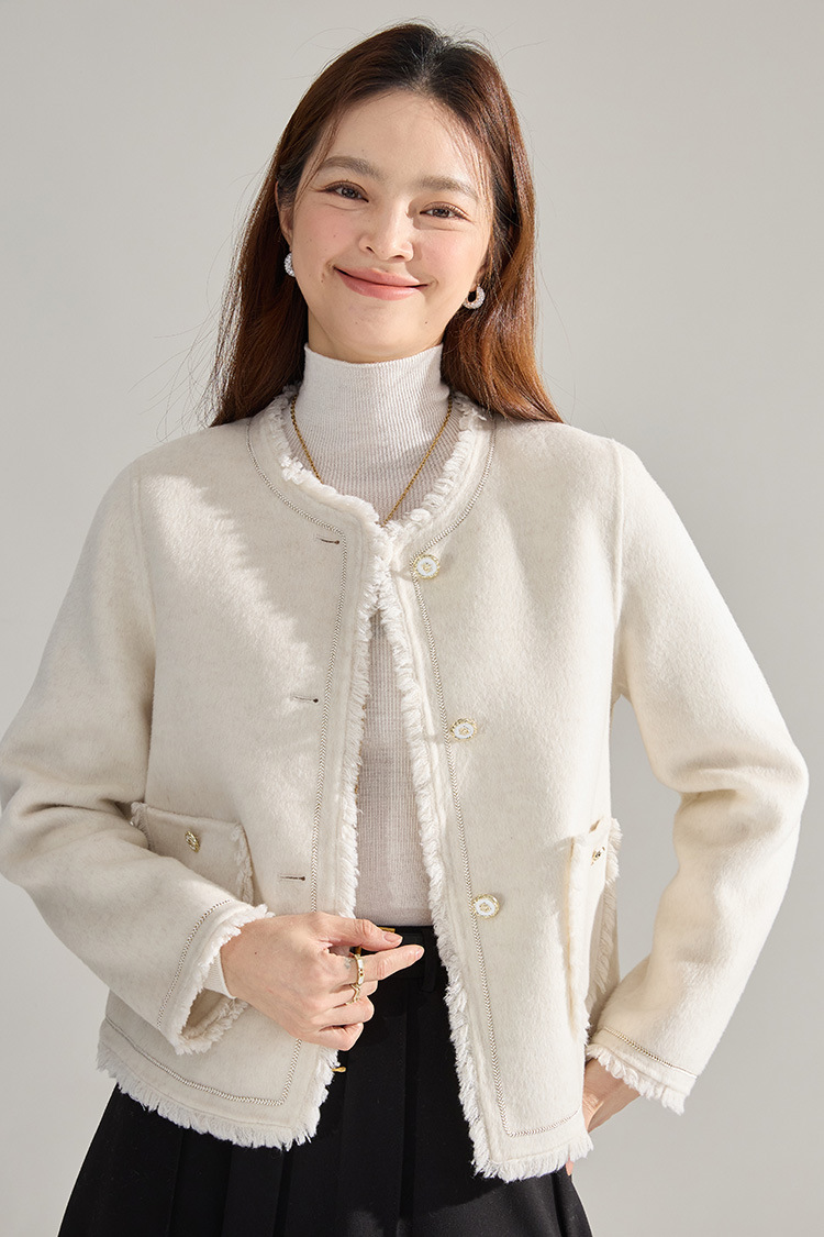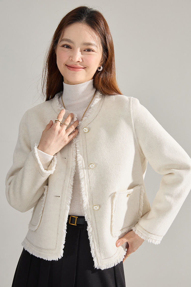 【高货sh】全新升级【铂金会员413/天猫559/差价146】(35834) 洛诗琳通勤气质羊绒羊毛双面呢小香风拉毛流苏毛呢外套