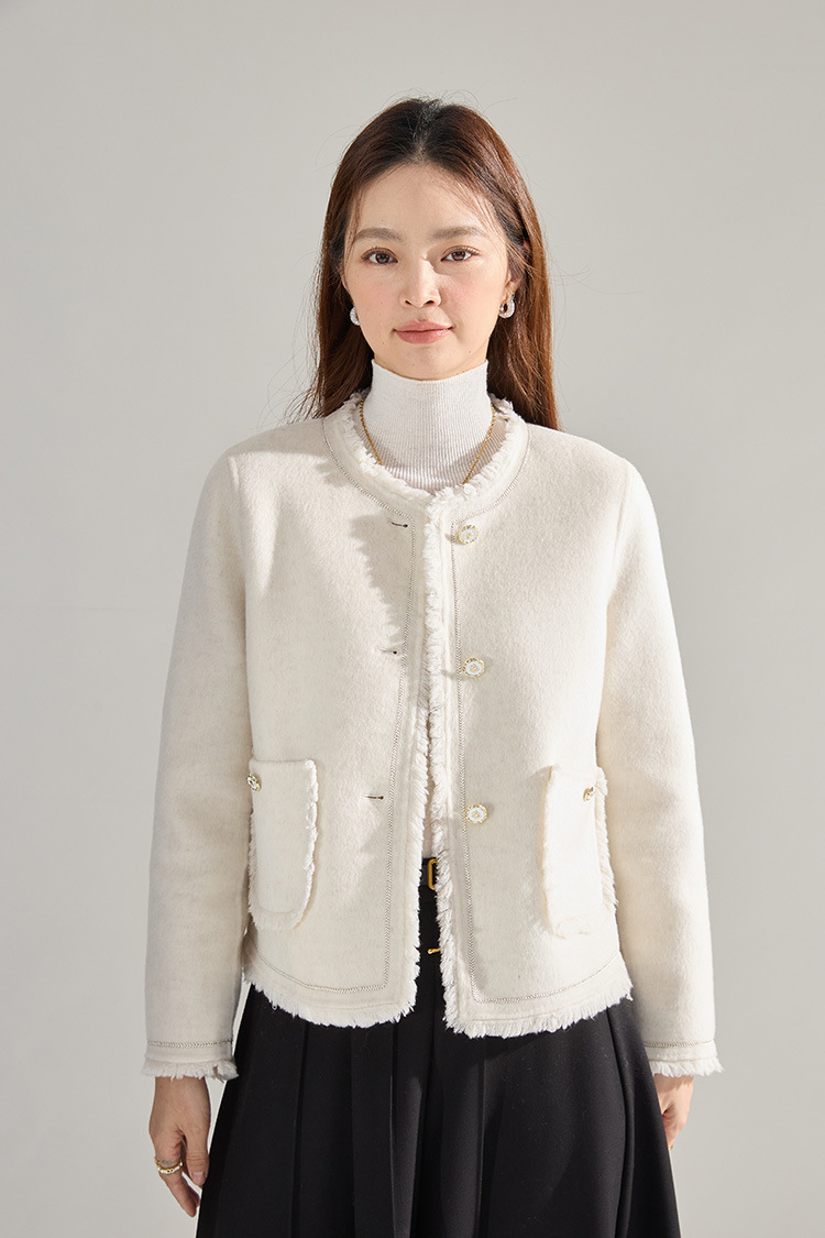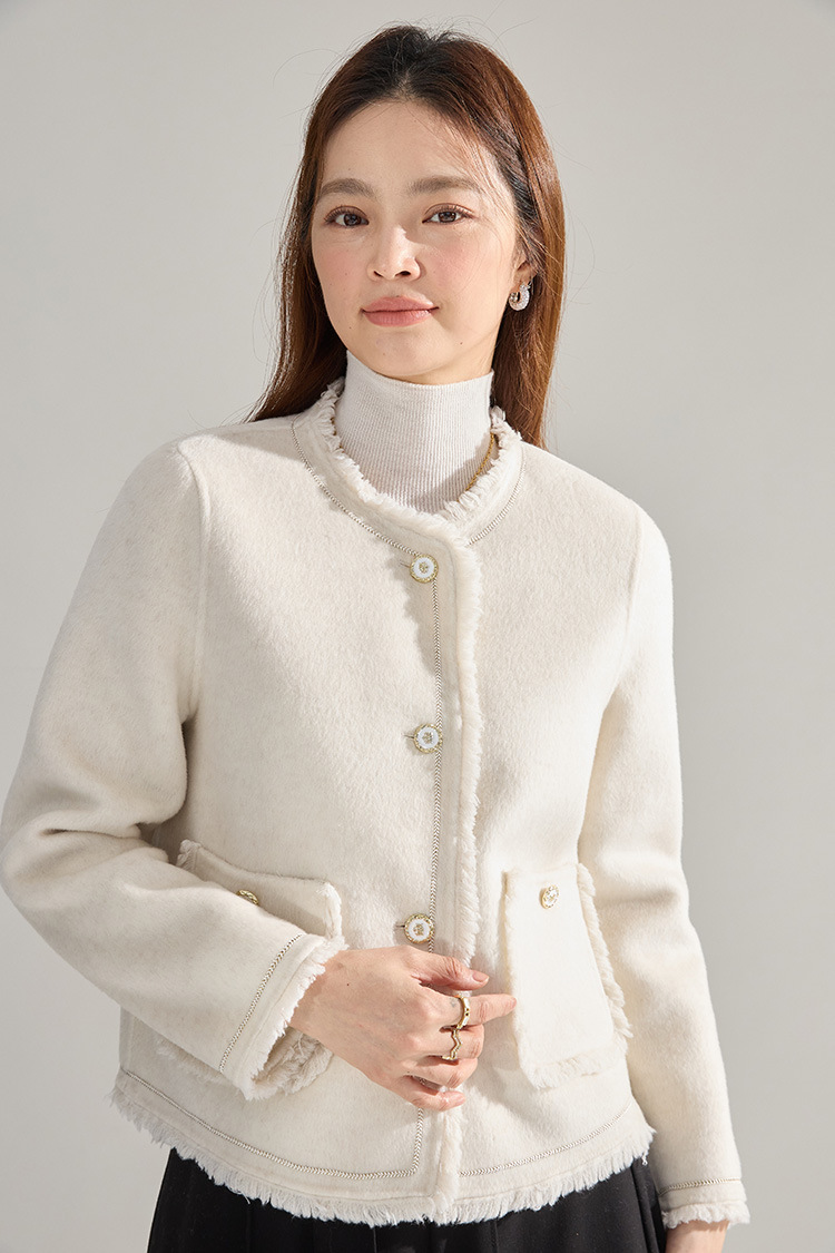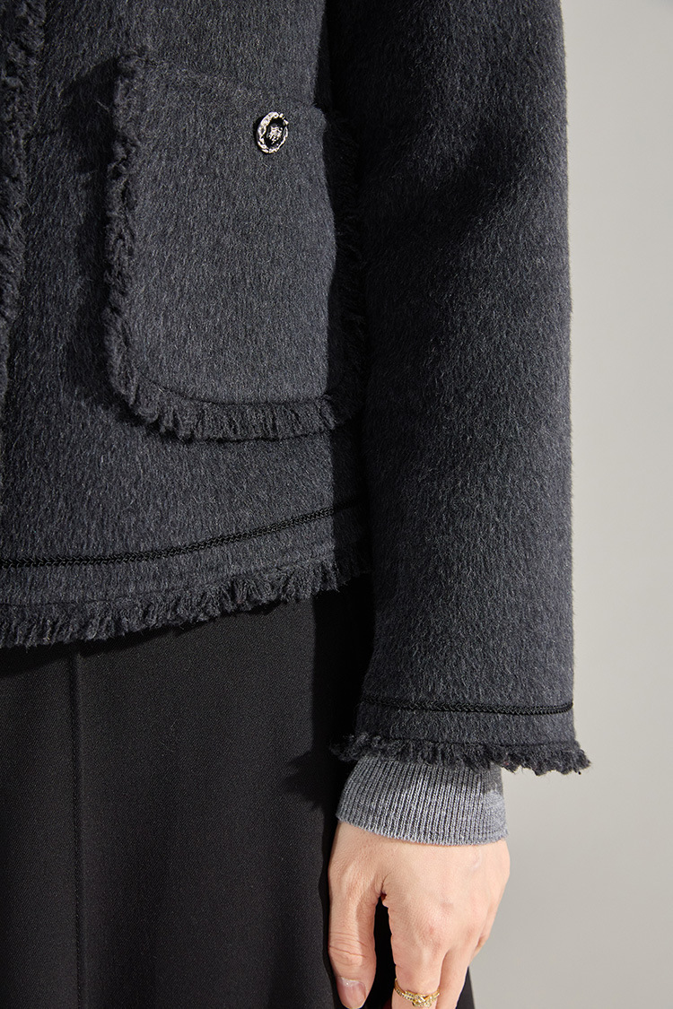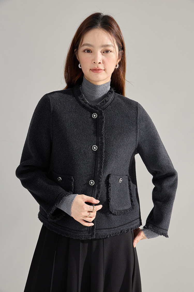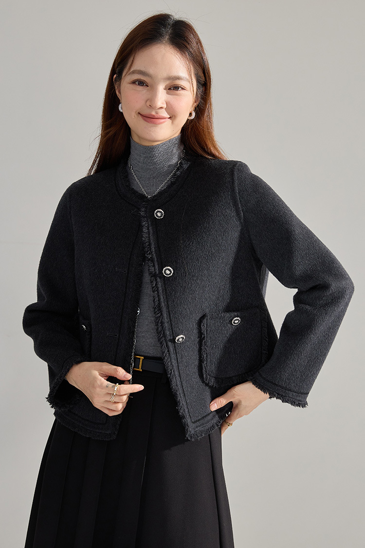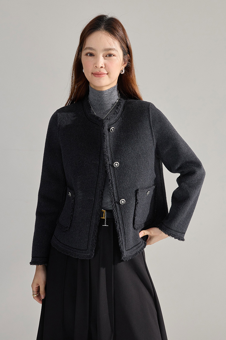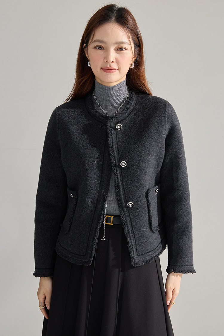【高货sh】全新升级【铂金会员413/天猫559/差价146】(35834) 洛诗琳通勤气质羊绒羊毛双面呢小香风拉毛流苏毛呢外套