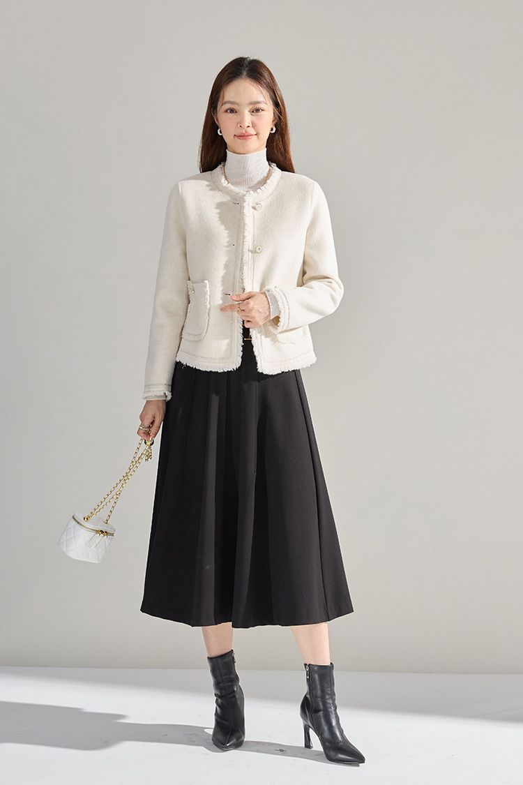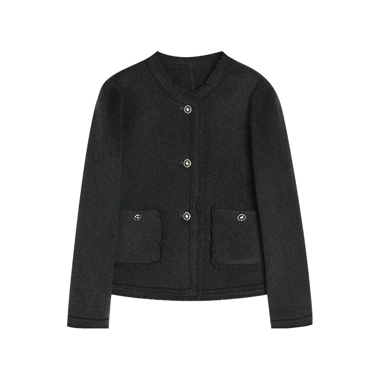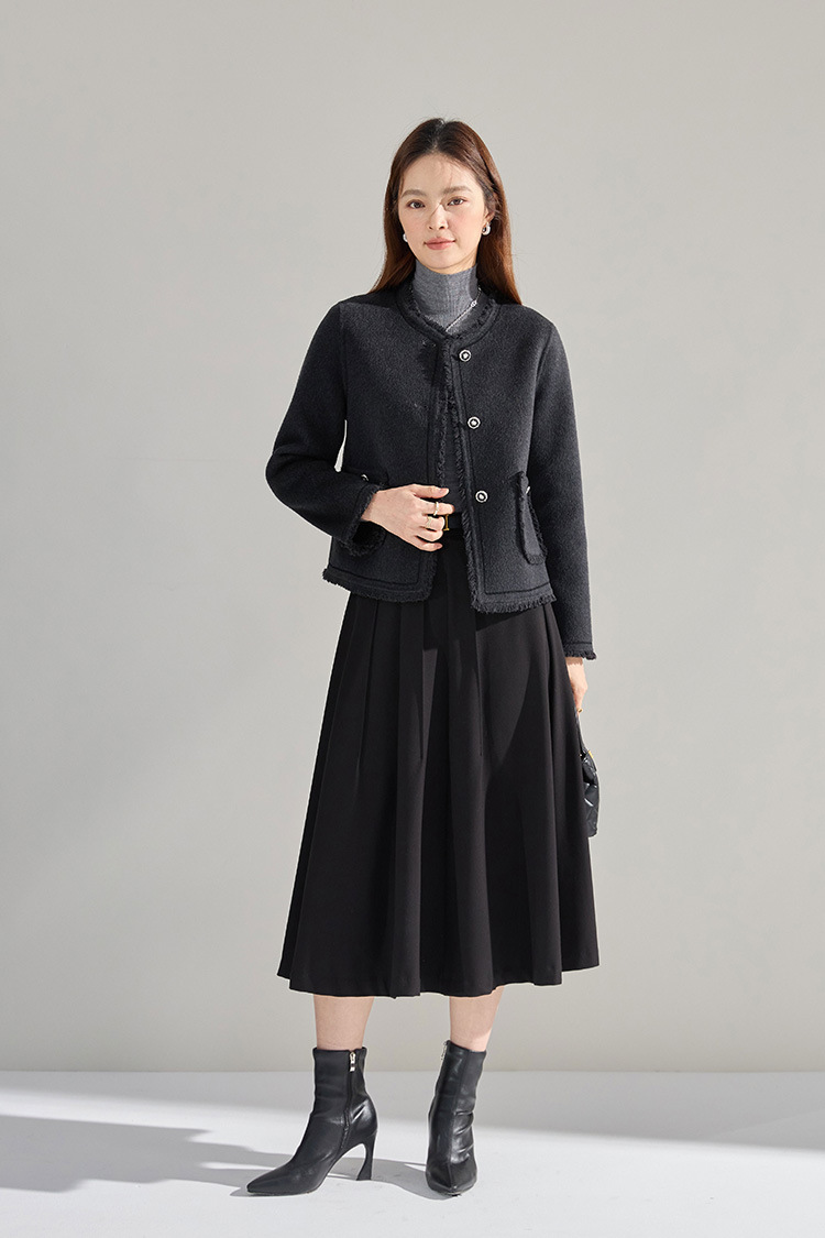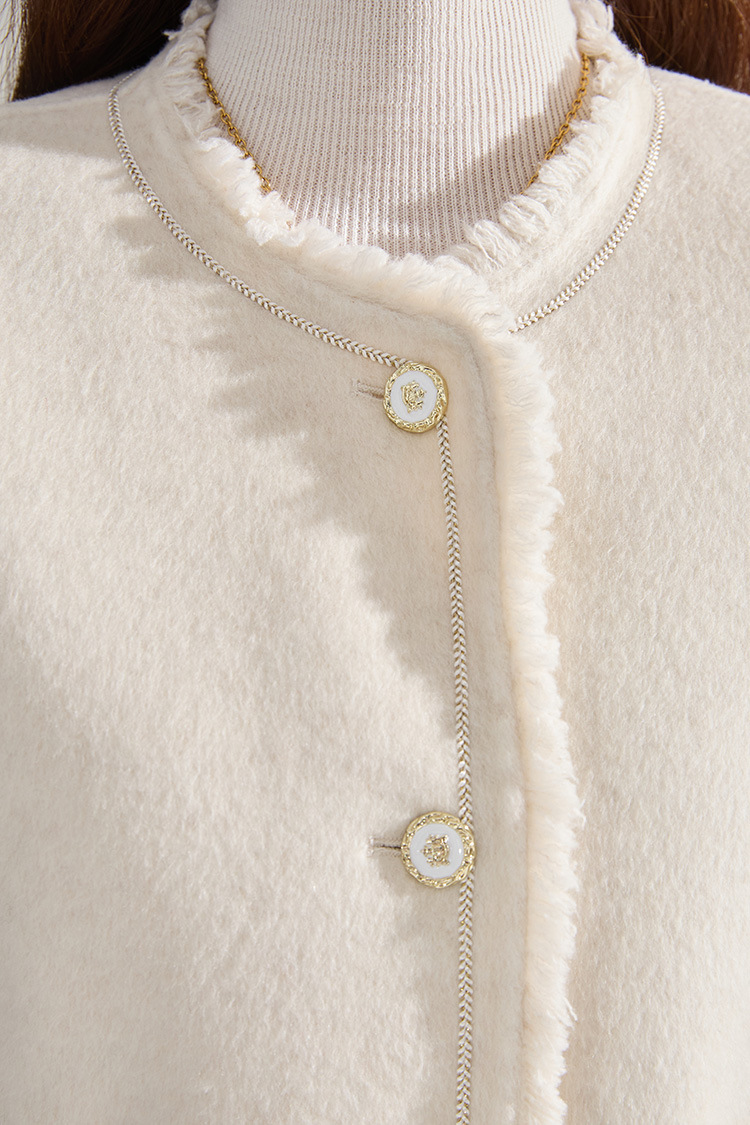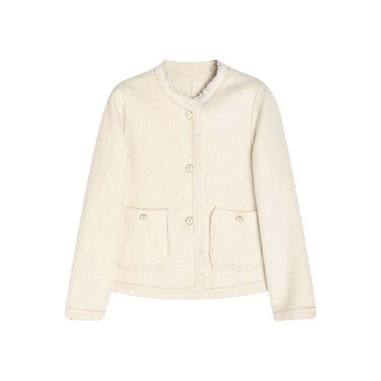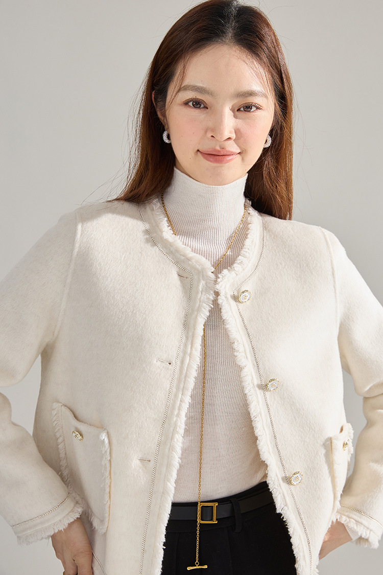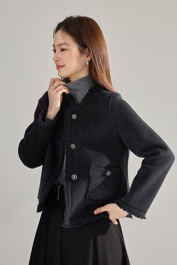 【高货sh】全新升级【铂金会员413/天猫559/差价146】(35834) 洛诗琳通勤气质羊绒羊毛双面呢小香风拉毛流苏毛呢外套