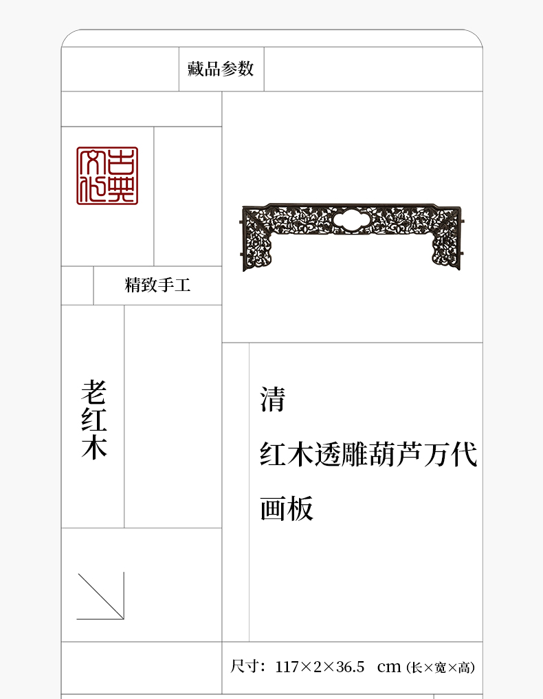 清 红木透雕葫芦万代画板