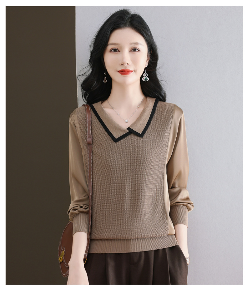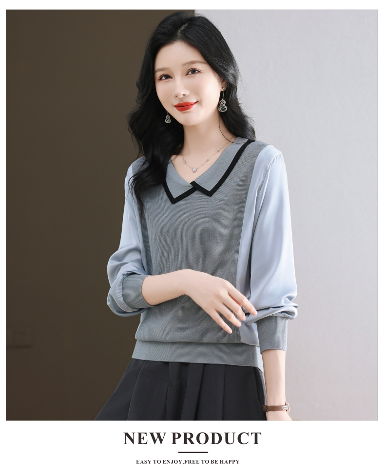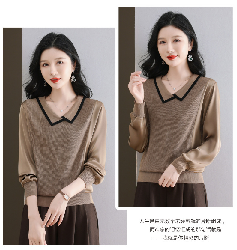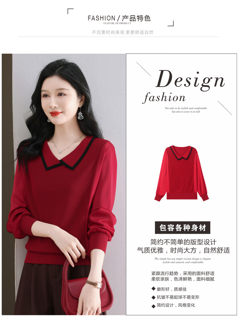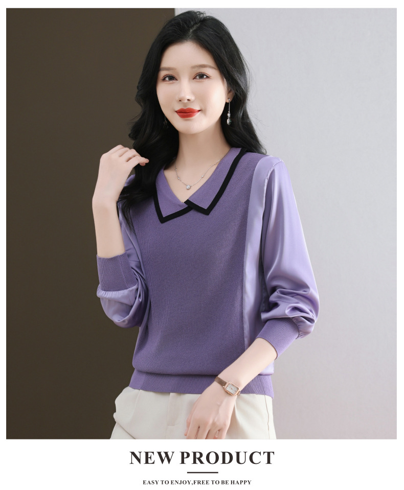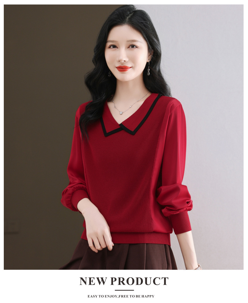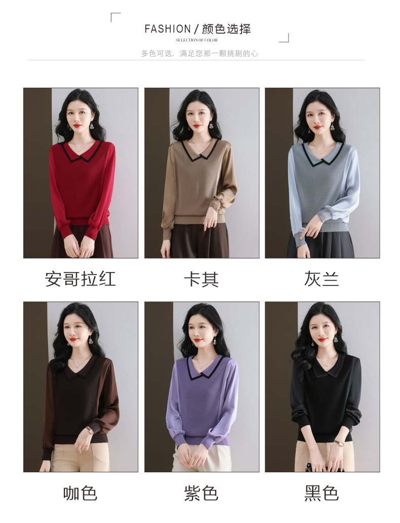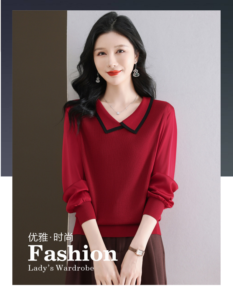 CC-89-525翻领长袖上衣针织衫女2025年新款春季洋气薄款t恤宽松打底衫
