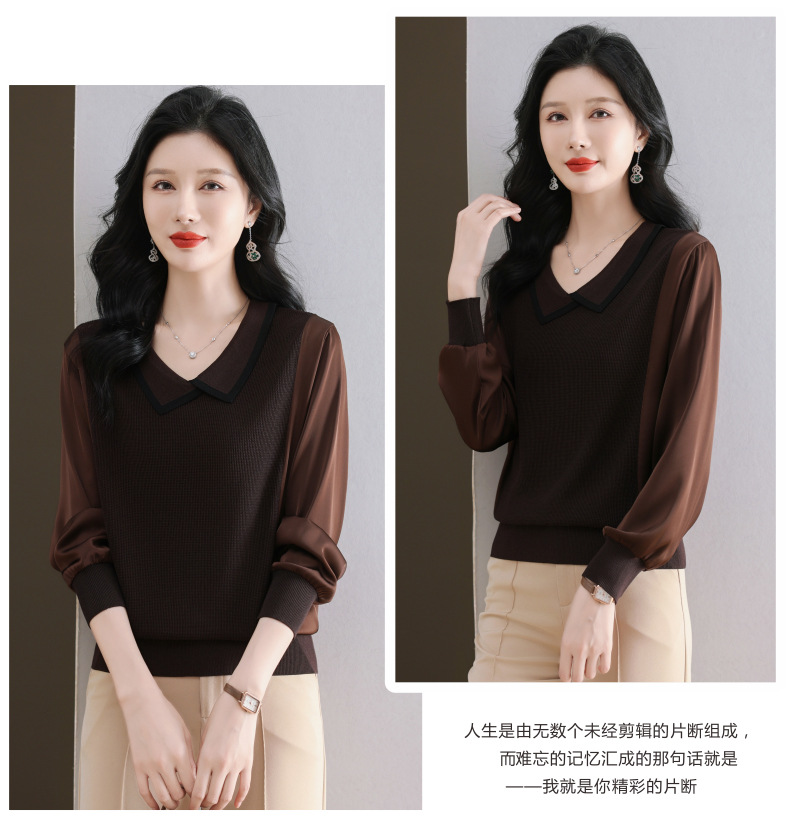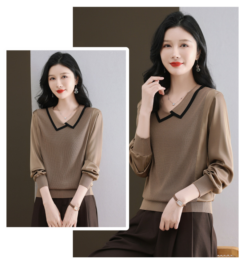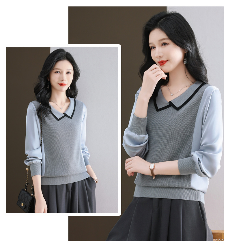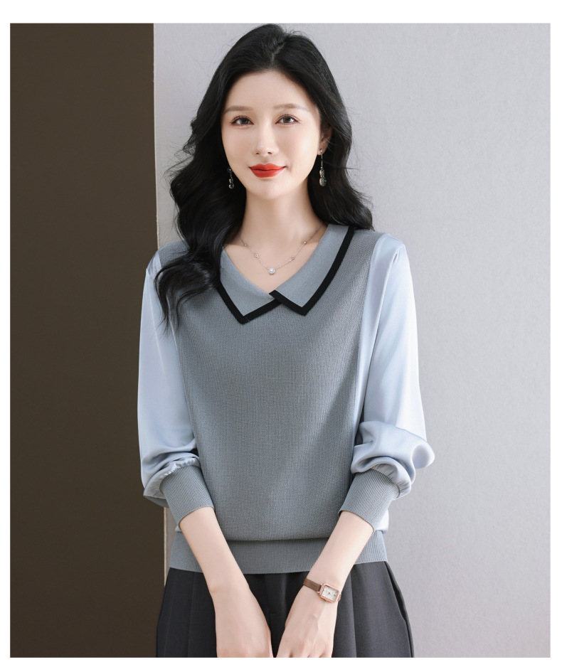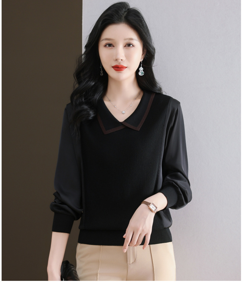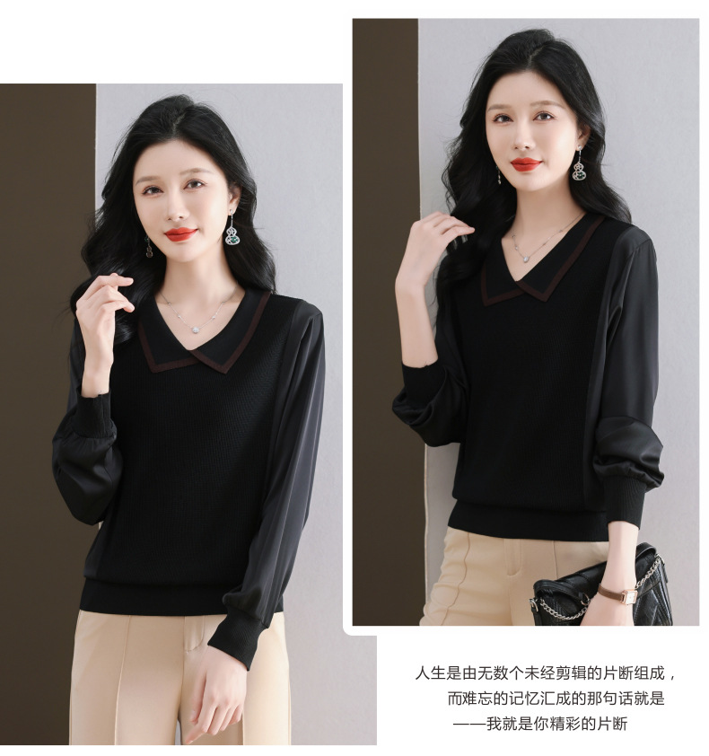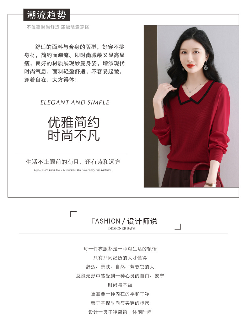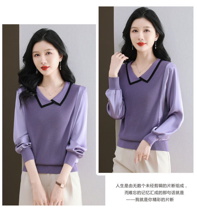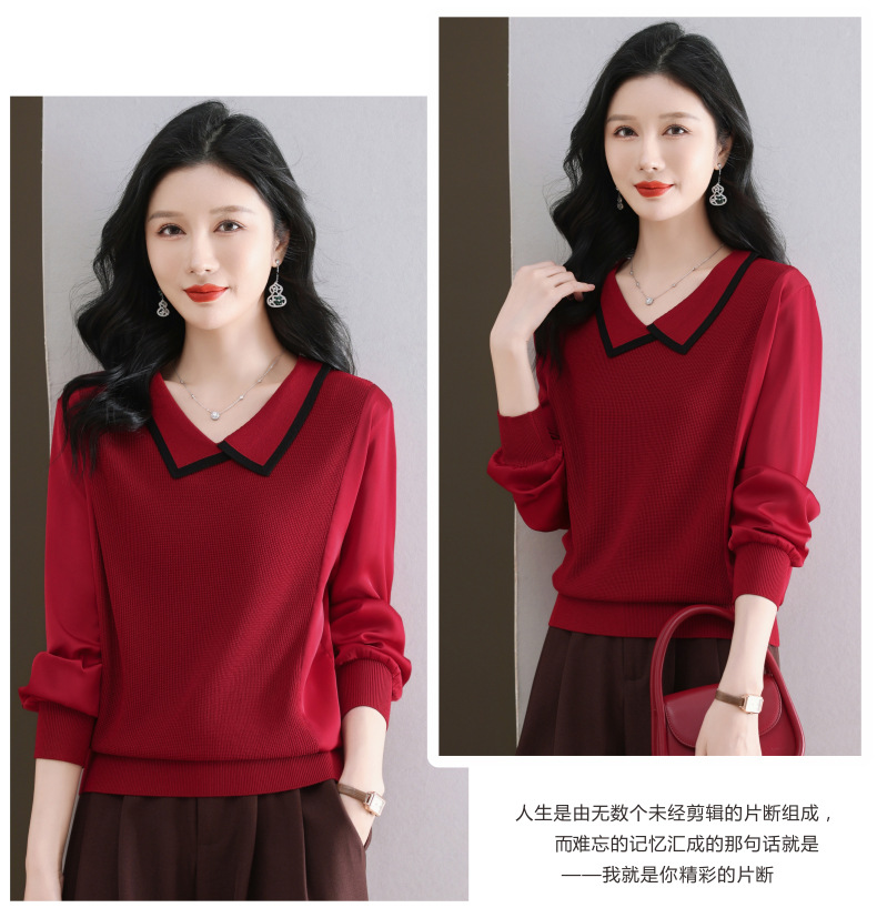 CC-89-525翻领长袖上衣针织衫女2025年新款春季洋气薄款t恤宽松打底衫