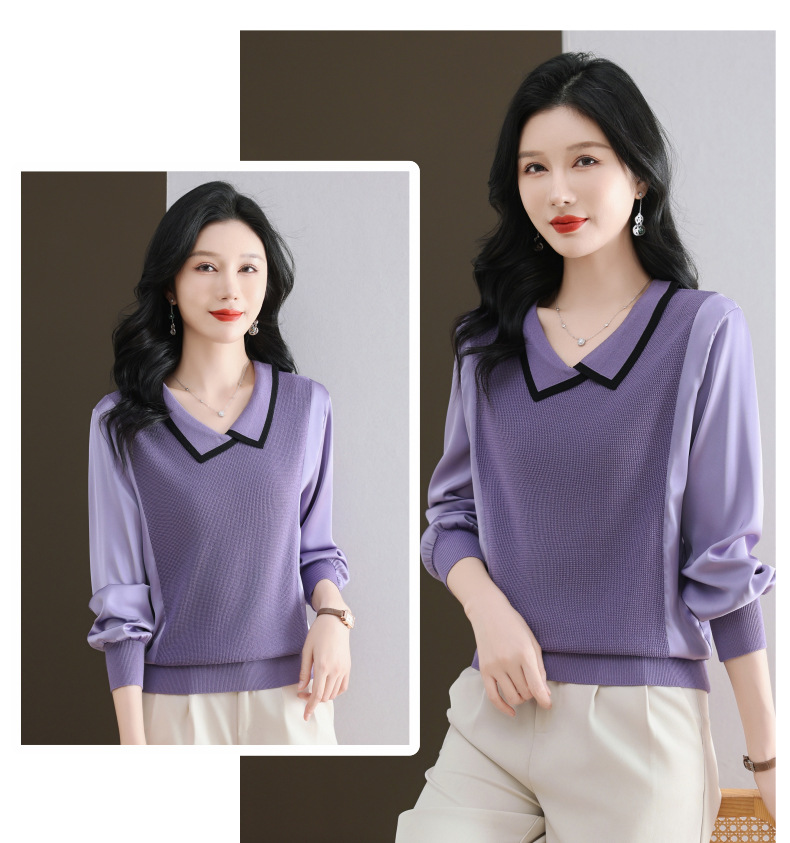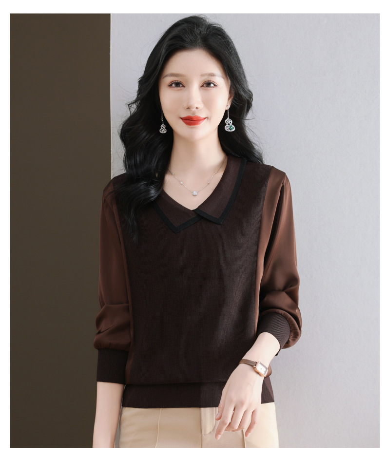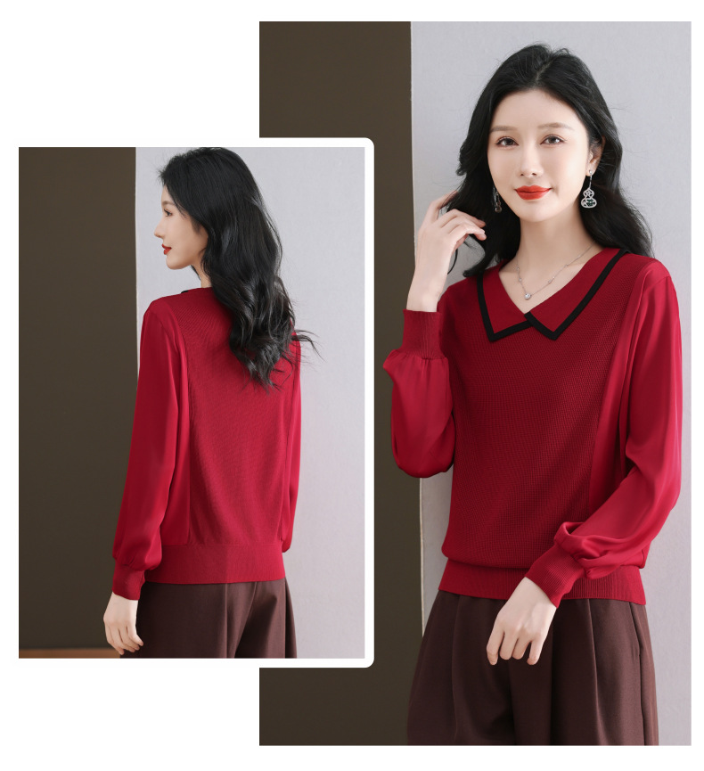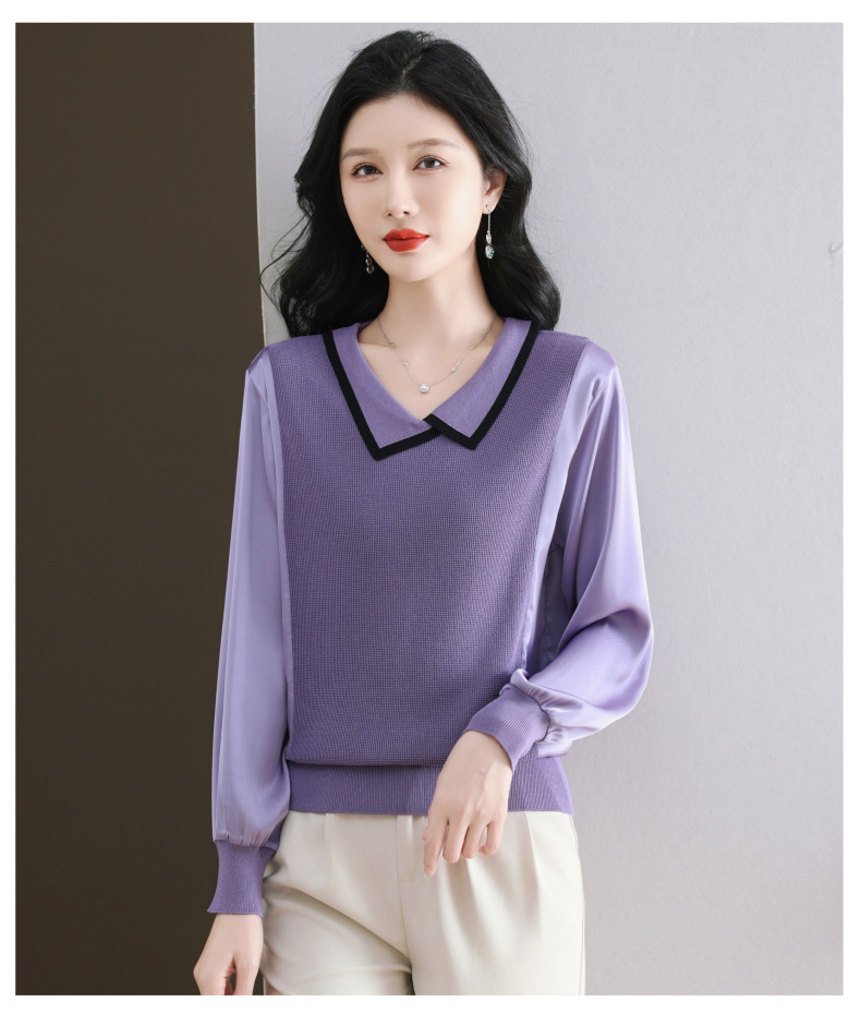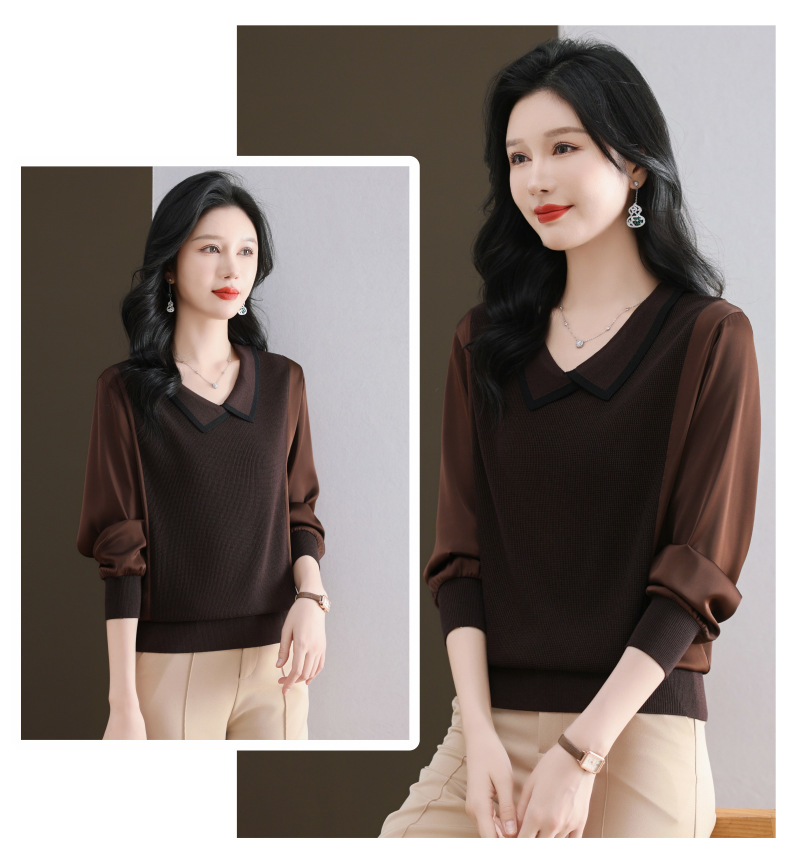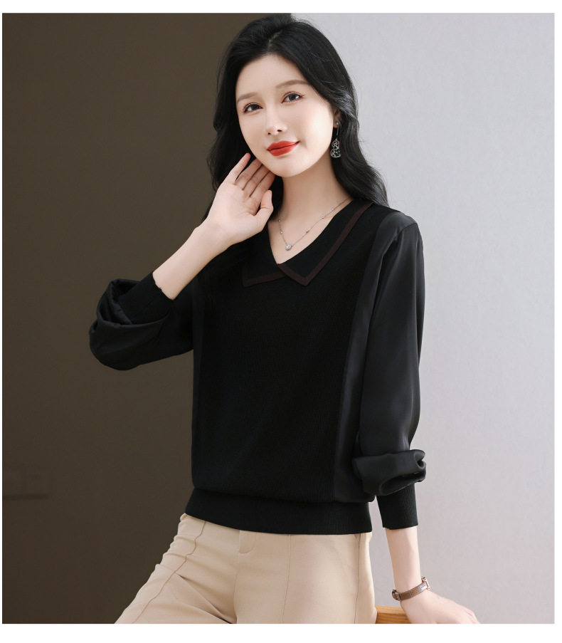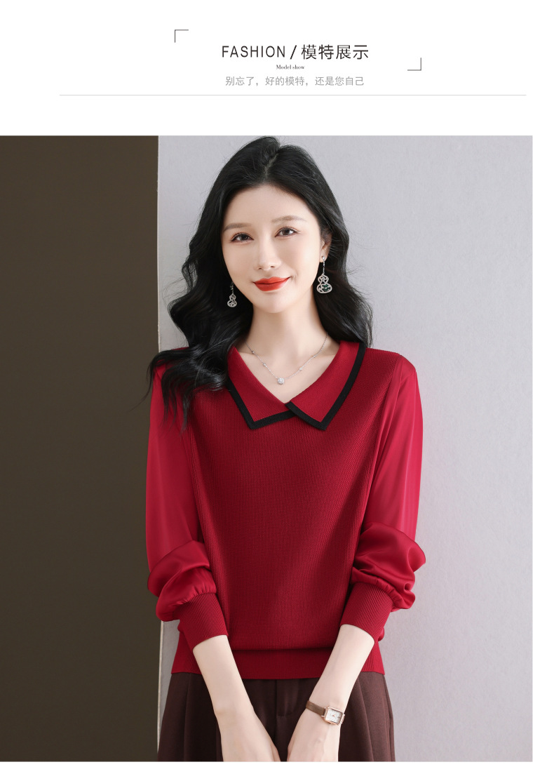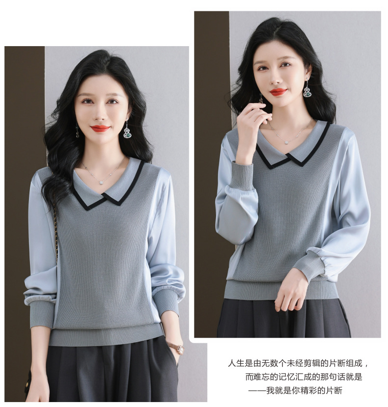 CC-89-525翻领长袖上衣针织衫女2025年新款春季洋气薄款t恤宽松打底衫