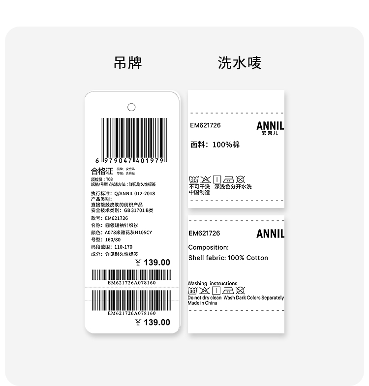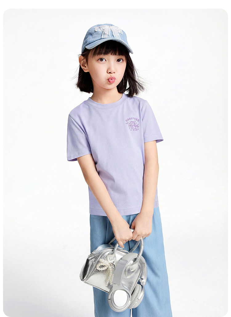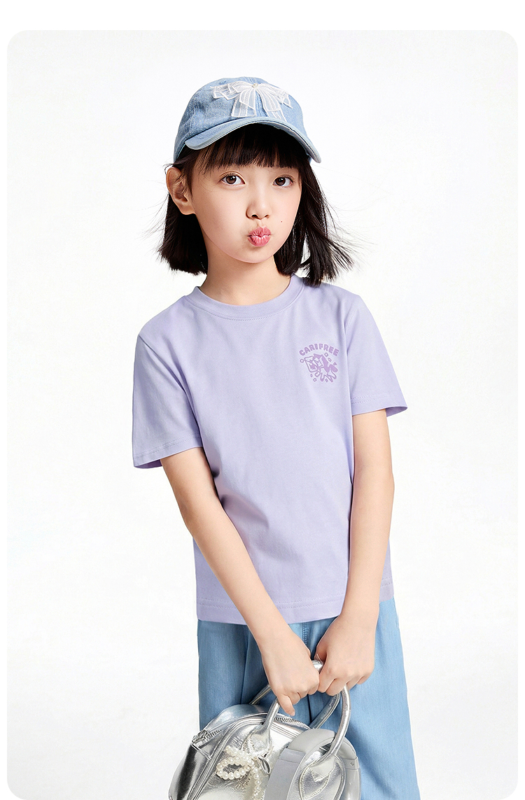 女童圆领短袖针织衫夏季新款安奈儿童装EM621726