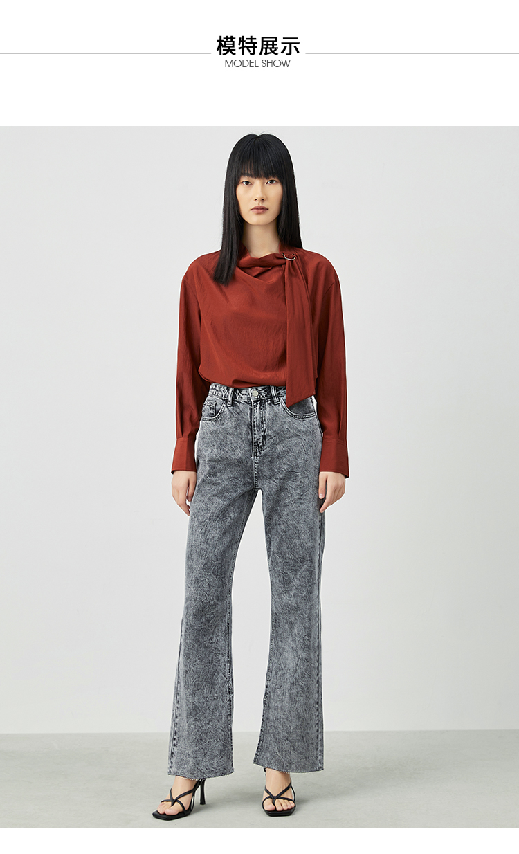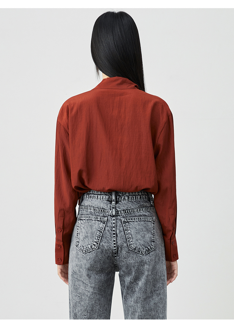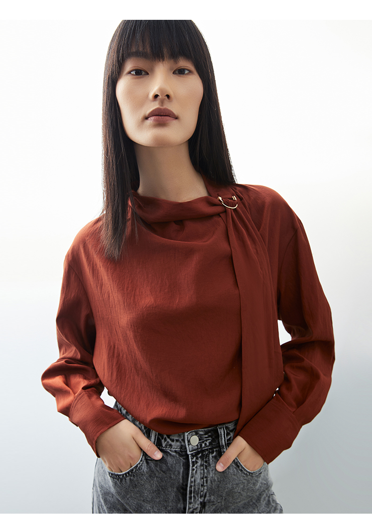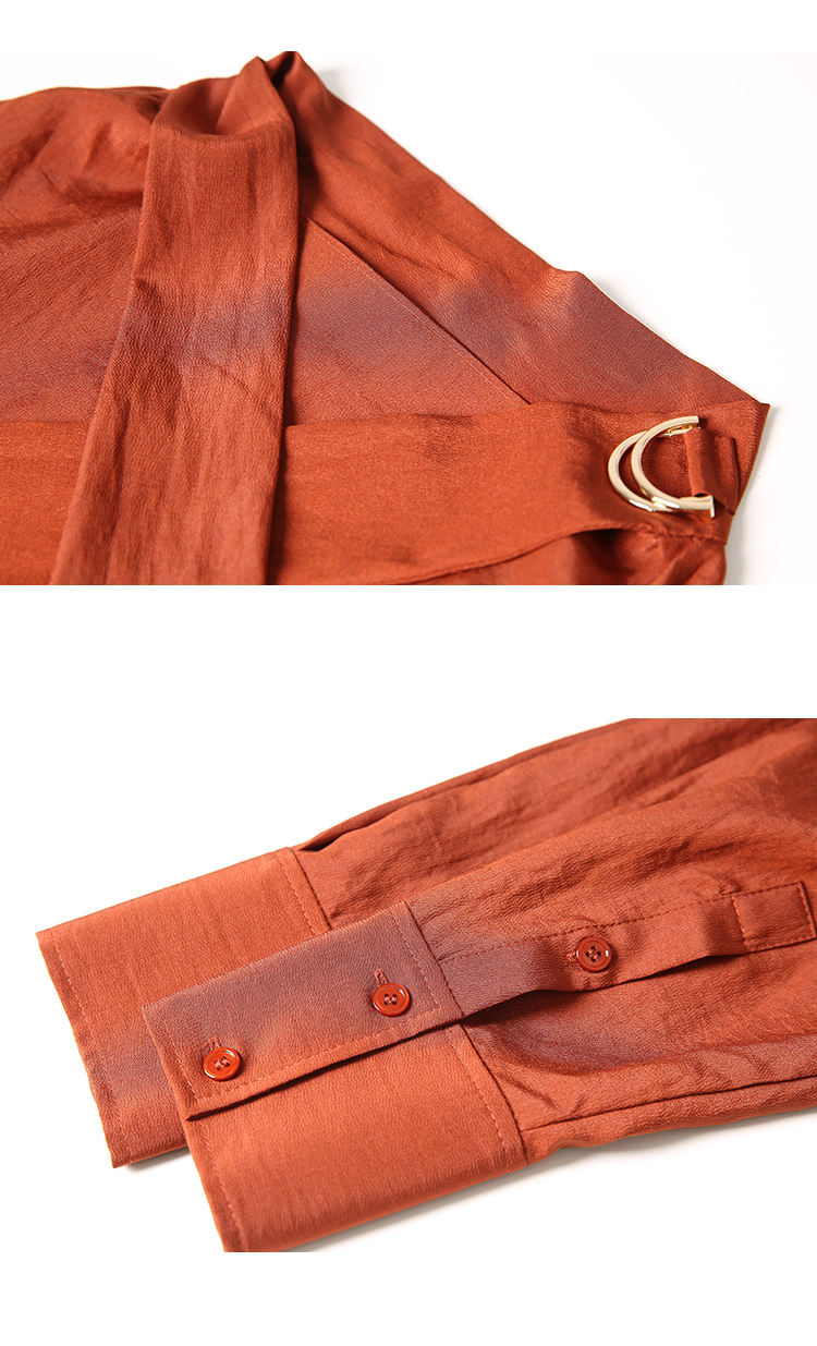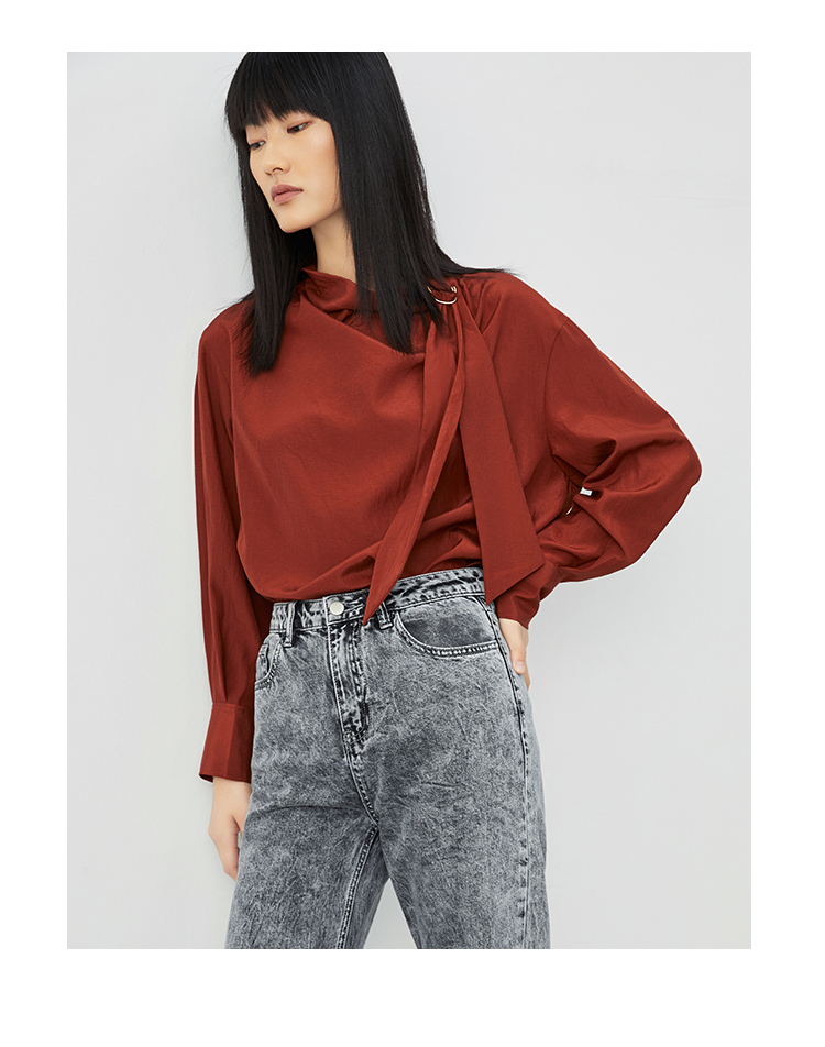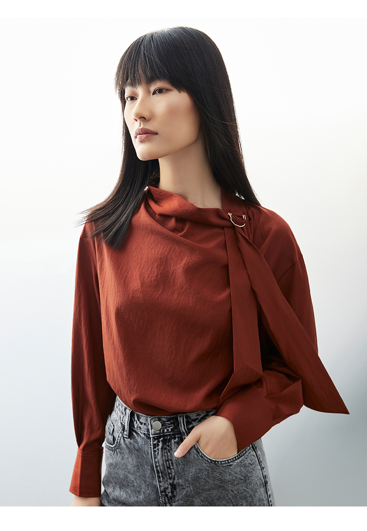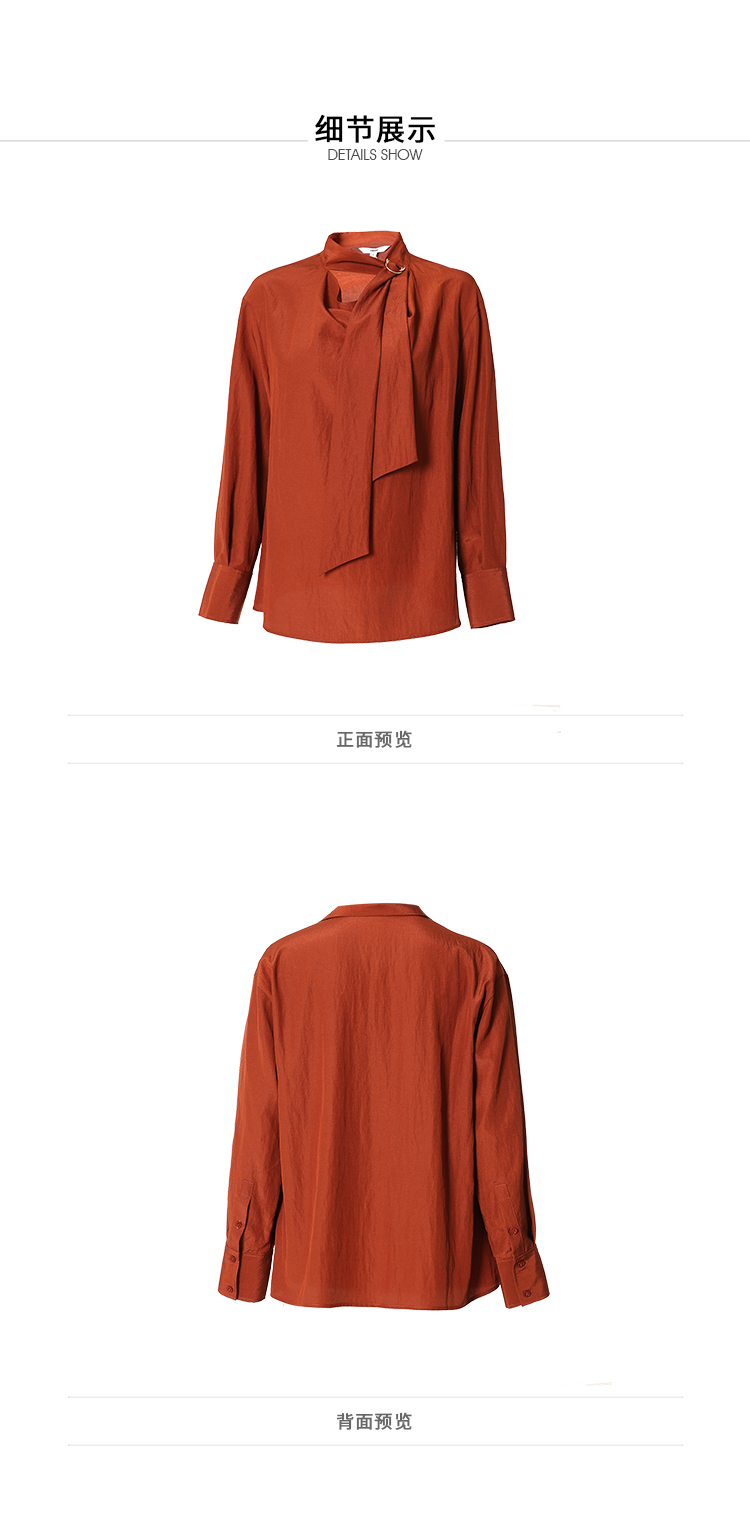 VIMAGE纬漫纪秋款个性洋气绑带设计感通勤喇衬衫小上衣VC2113216