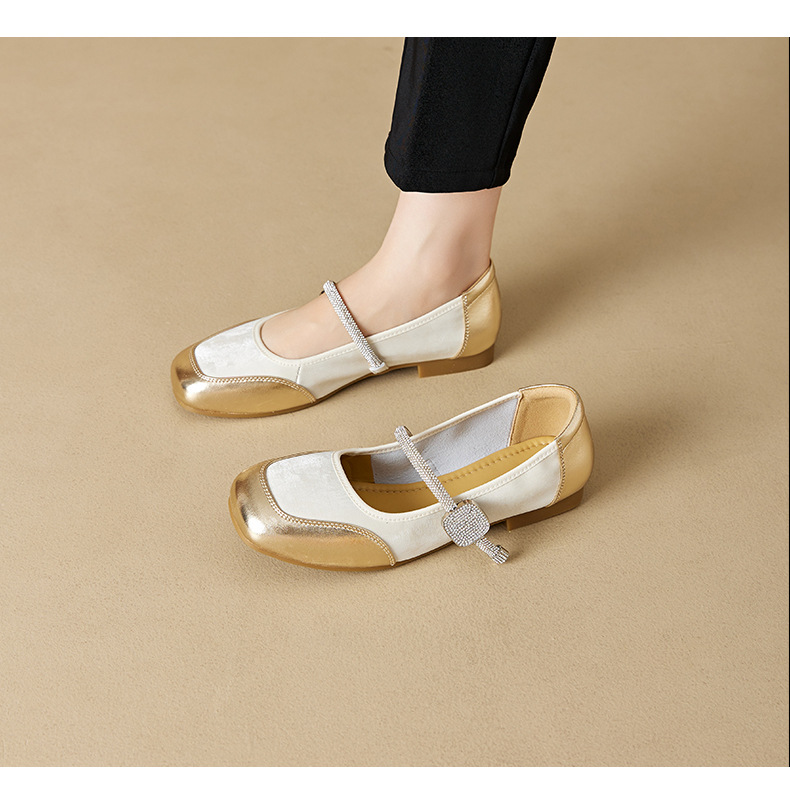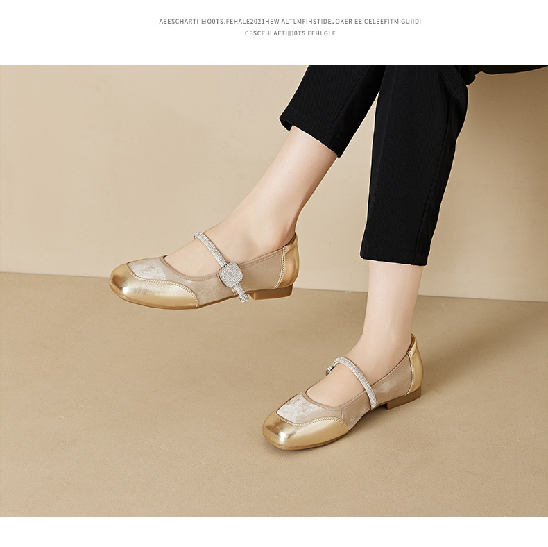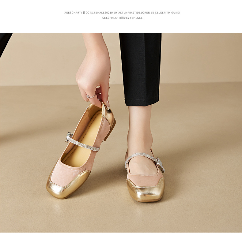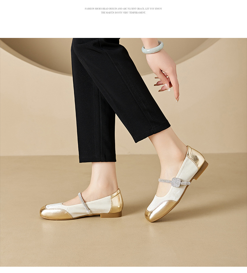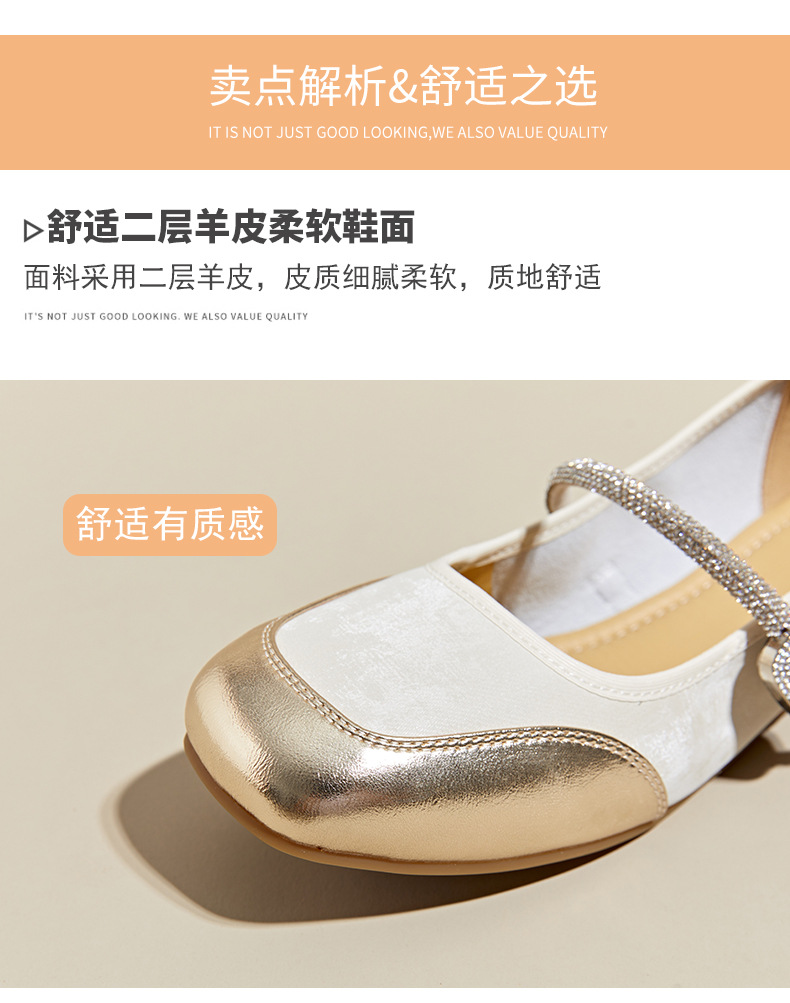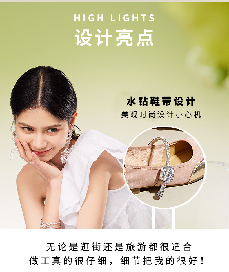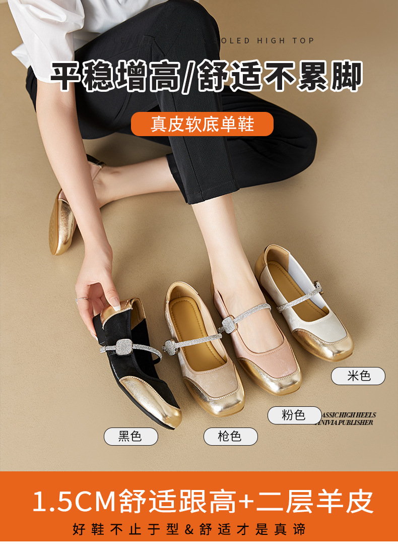 雀说羊皮真皮女法式水钻软底软面豆豆鞋AL118