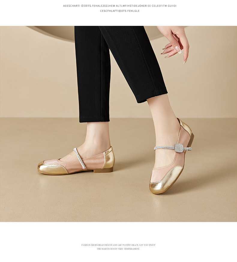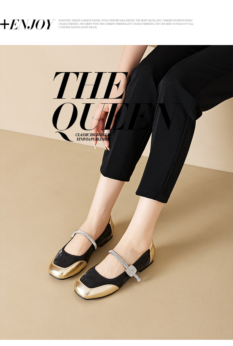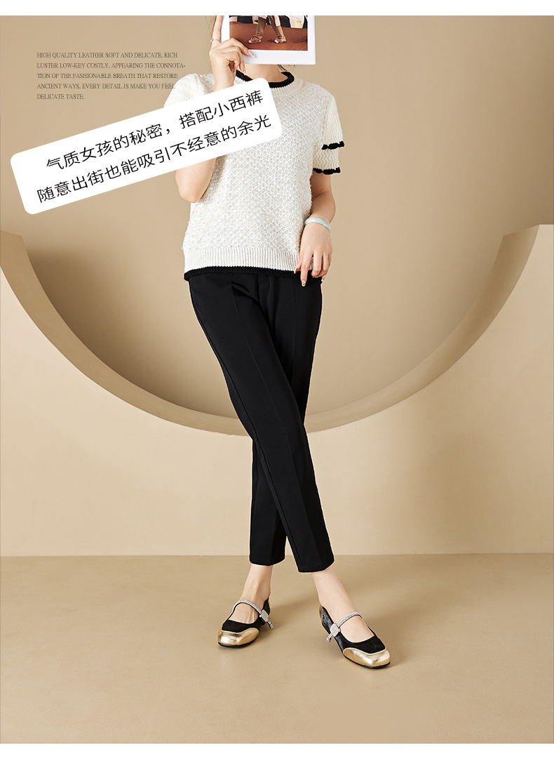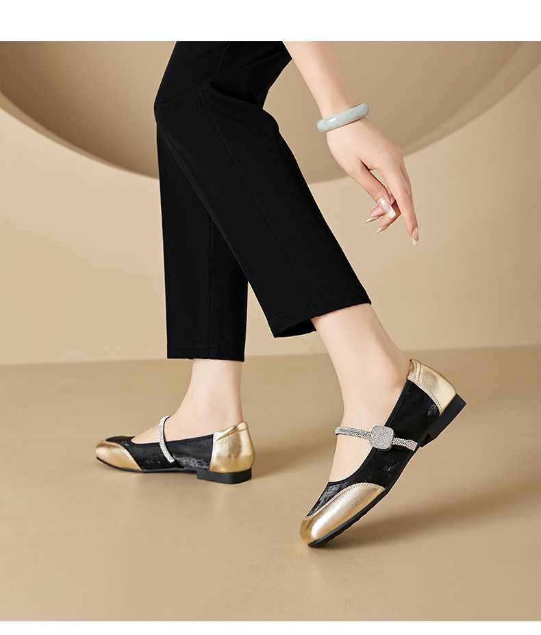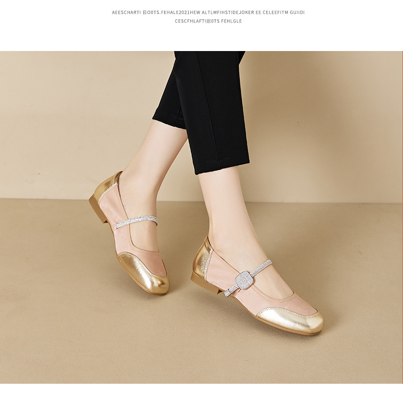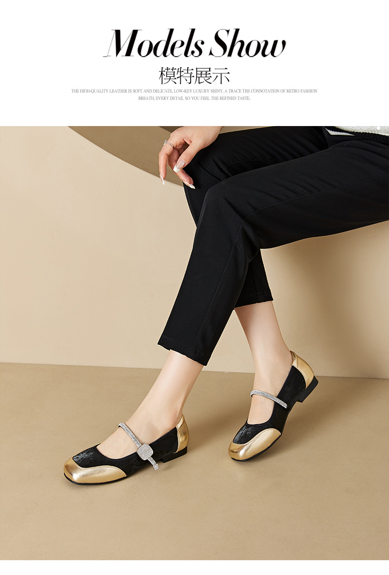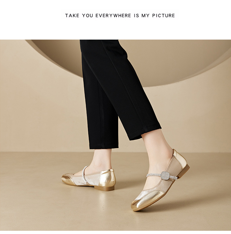 雀说羊皮真皮女法式水钻软底软面豆豆鞋AL118