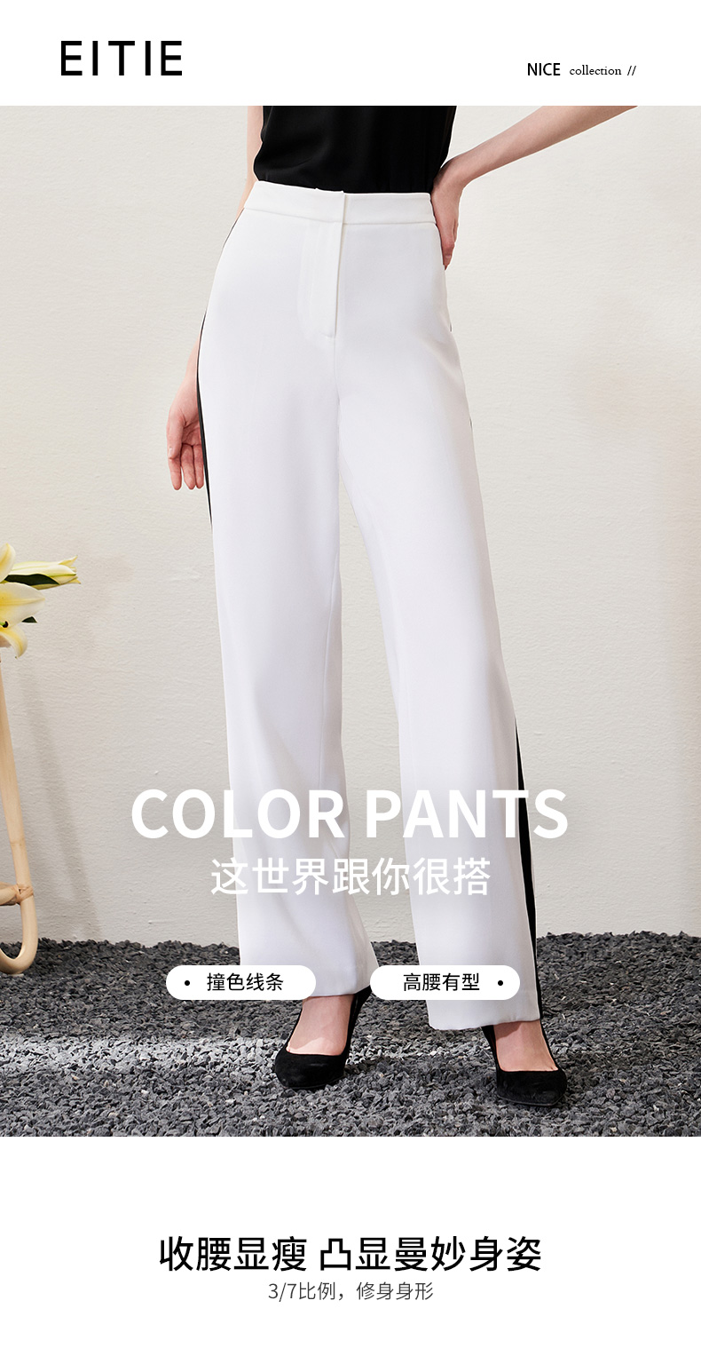 EITIE爱特爱春季新款气质通勤百搭显瘦高腰休闲直筒裤子6905607