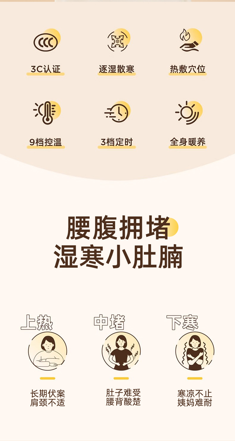 1、本产品腰部是由魔术贴固定,吸附会有重叠,出于安全考虑,一侧腰围无加热丝设计(不加热为正常现象)胸前一侧前端也无加热丝设计(避免重叠)属于正常情况,并非质量问题
