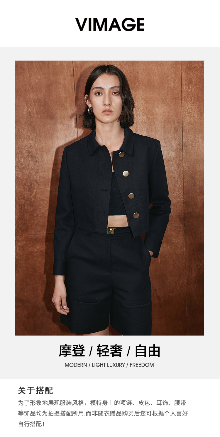 VIMAGE纬漫纪冬季新款显瘦百搭纯色短外套V2003616