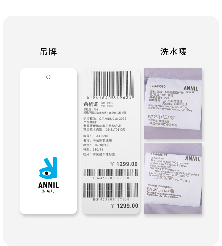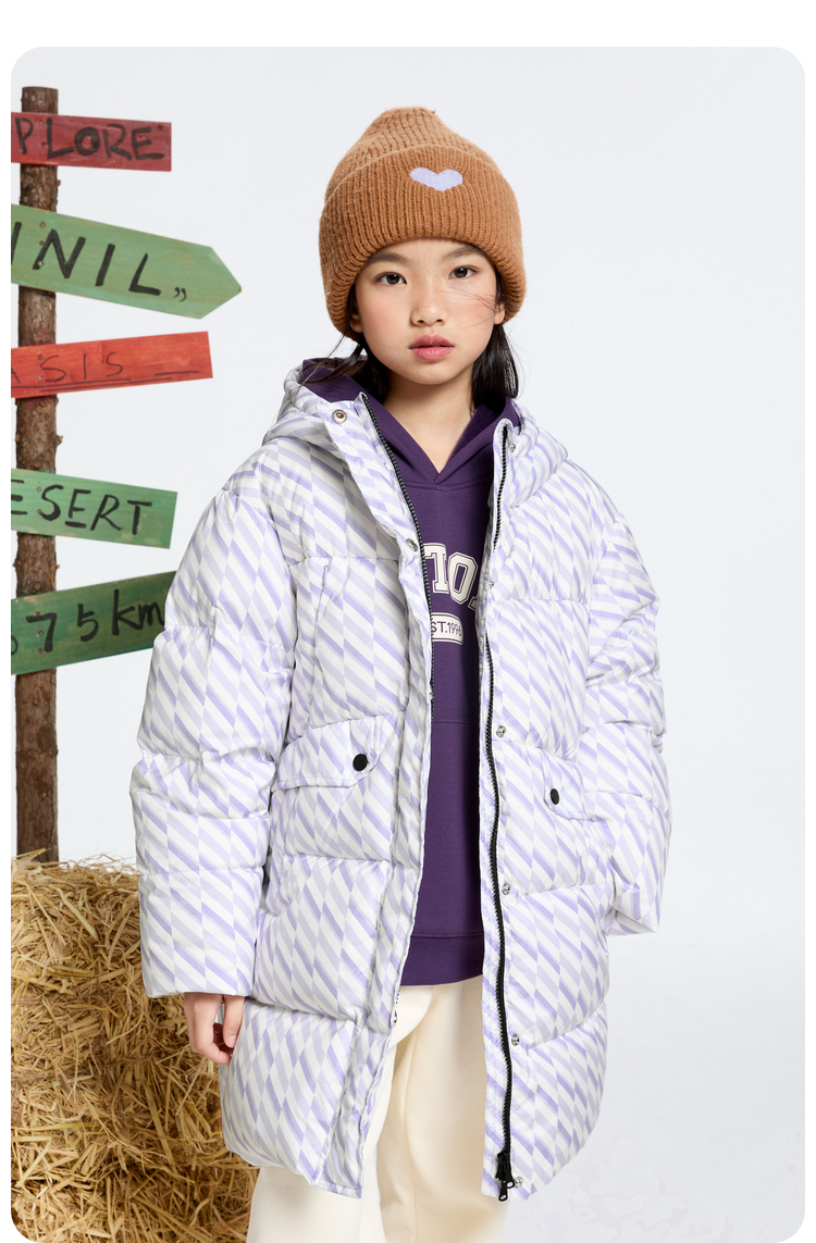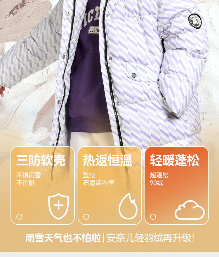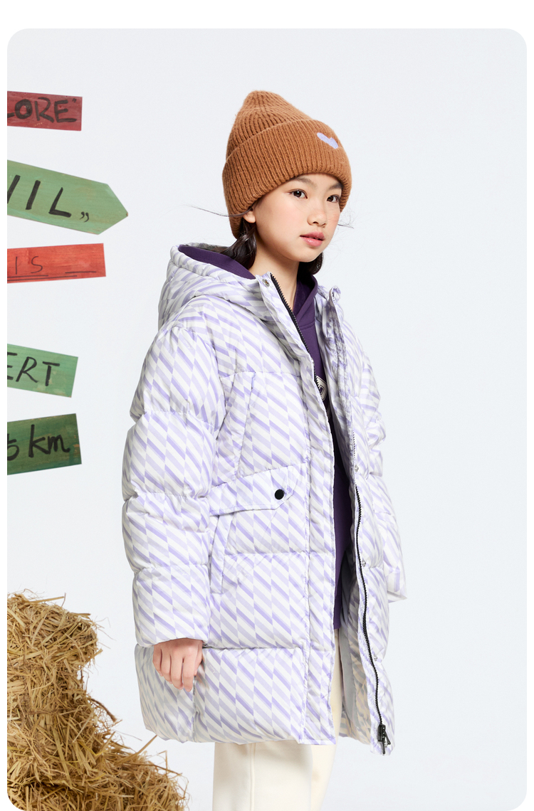 【极寒-15~-5℃】女童中长款羽绒服冬季新款安奈儿童装EG445590