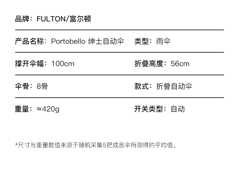 fulton富尔顿英伦绅士自动二折伞雨伞男士商务伞折叠伞