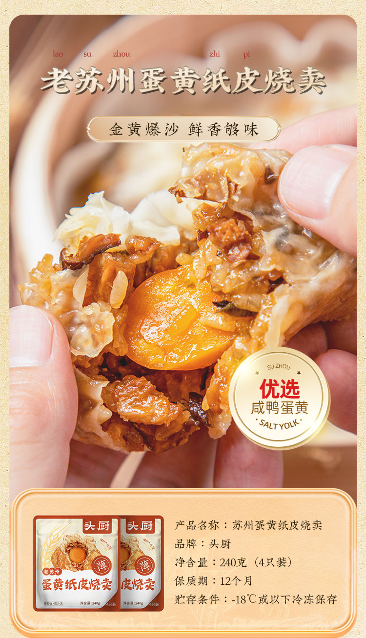 顺丰包邮【苏氏手作 皮薄馅足】头厨苏州糯米纸皮烧麦 优选糯米 鲜香馅料 拉丝绵长 金黄爆沙 奶香十足