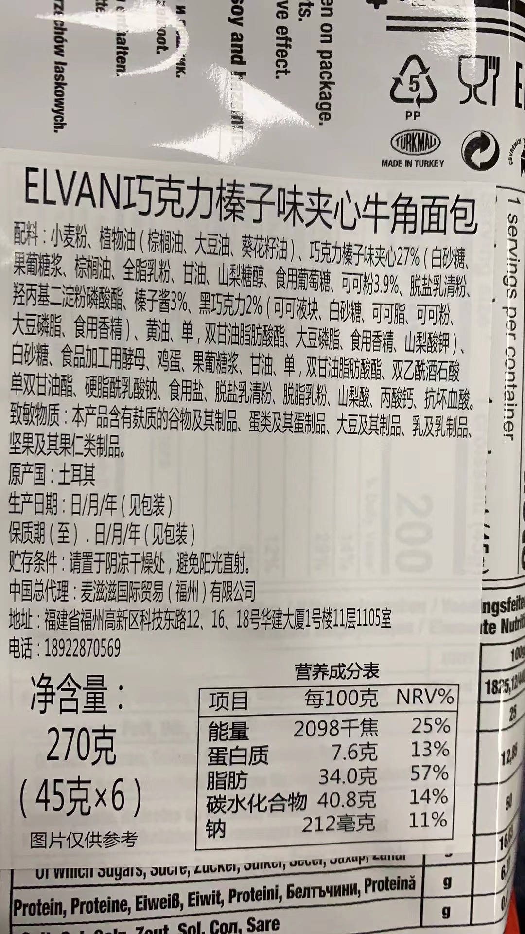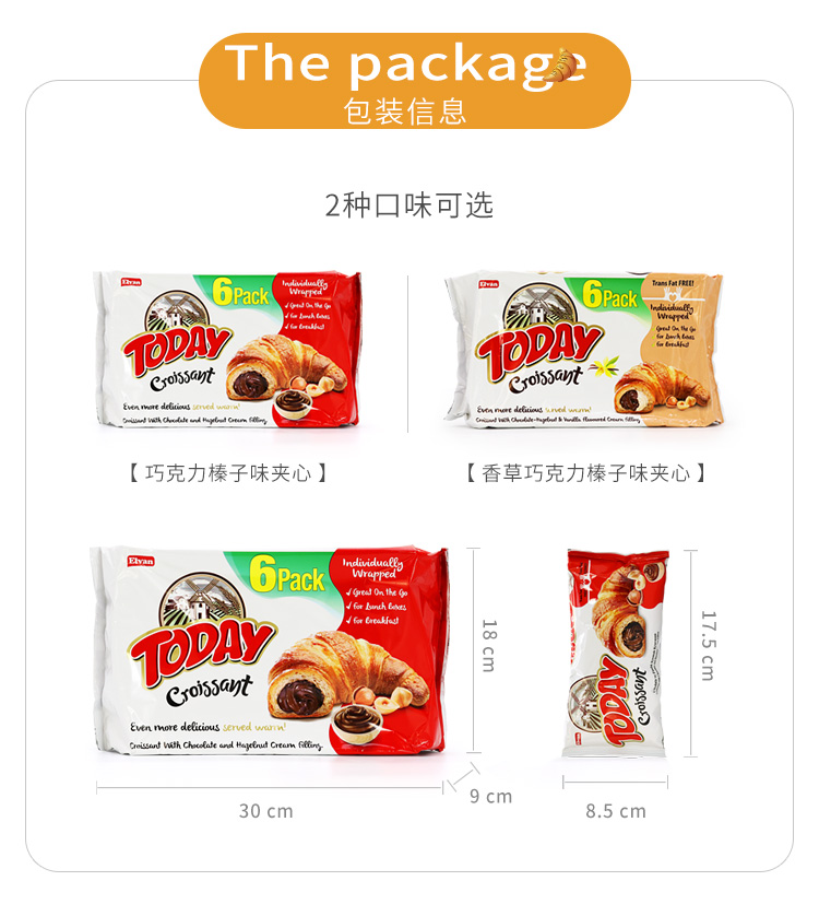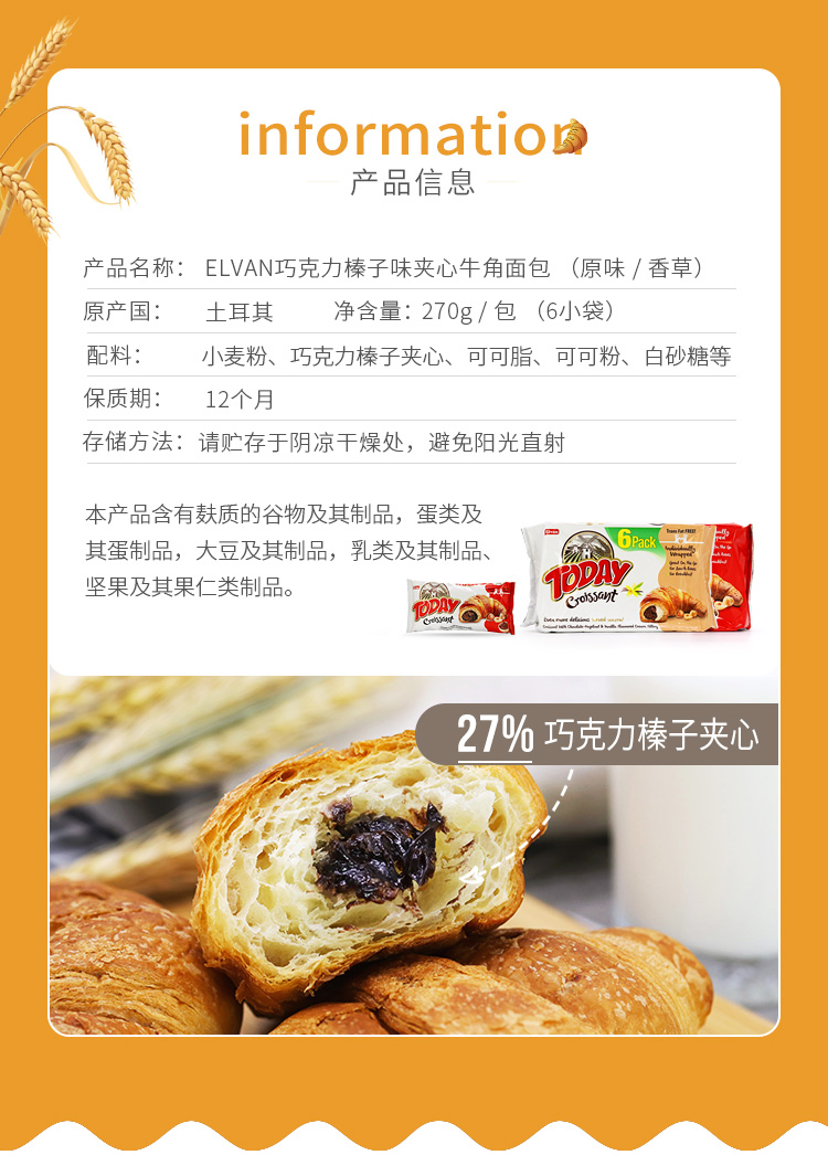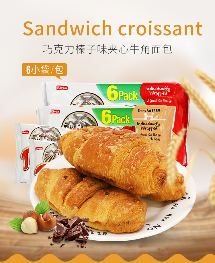 【2.18视频号】270gELVAN榛子味夹心牛角面包 巧克力味/香草巧克力味