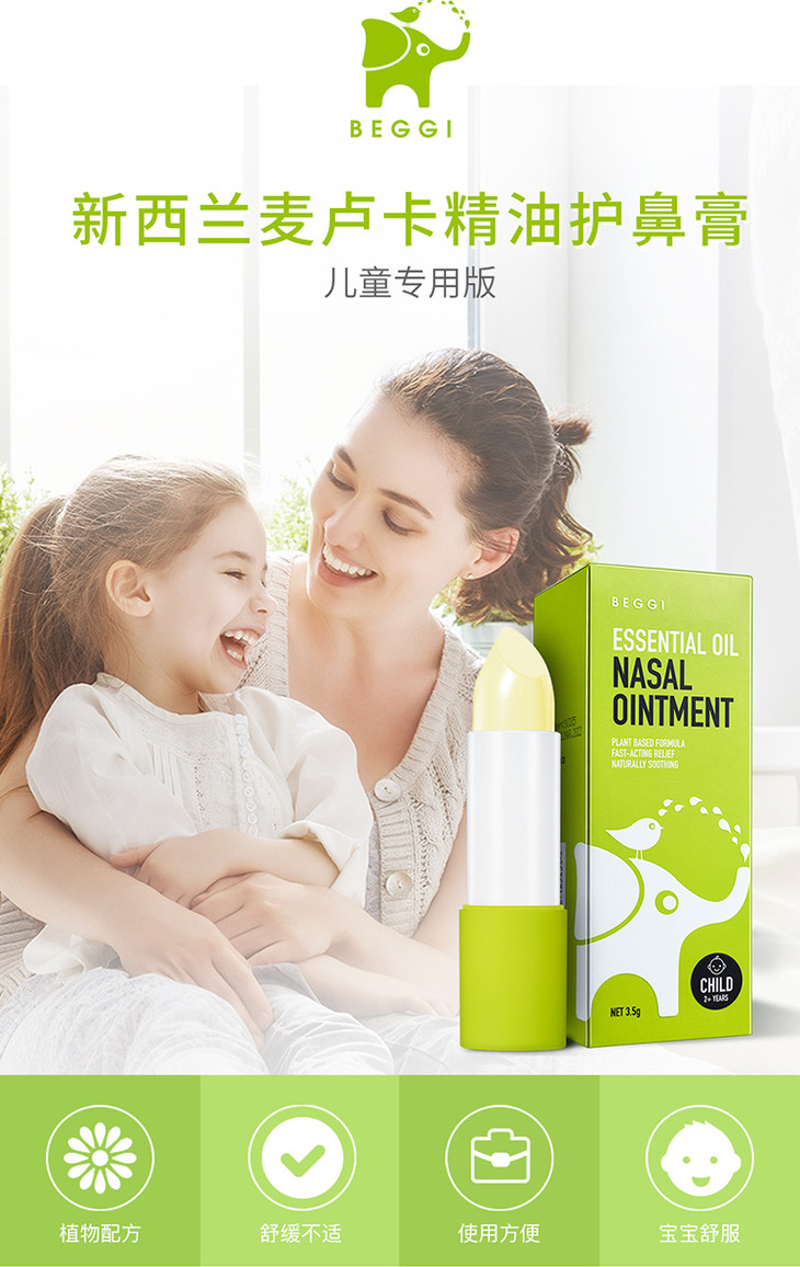 现货 新西兰BEGGI麦卢卡精油护鼻儿童成人鼻精灵涂抹式通鼻膏 缓舒鼻塞,宁波发货