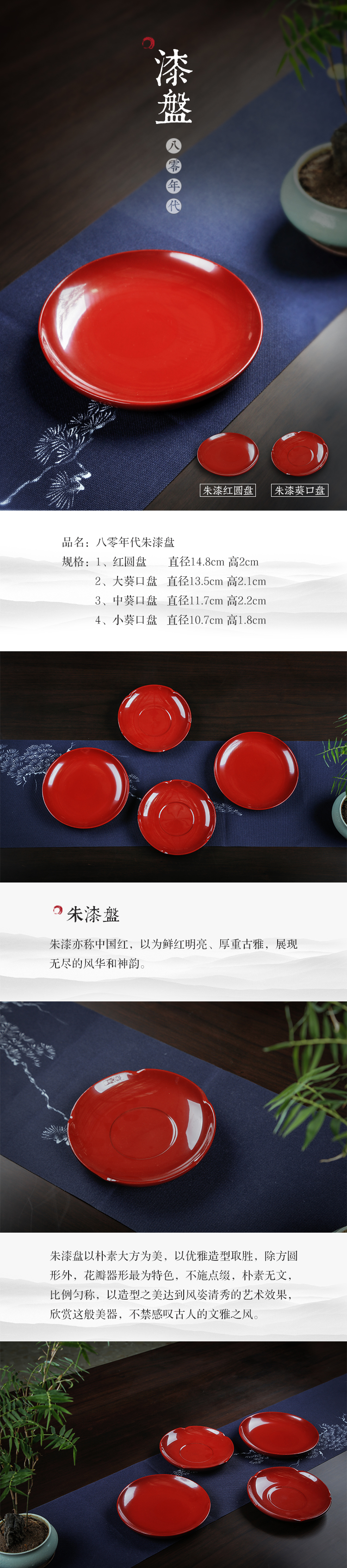 80年代 日本回流 朱漆漆盘(1组2个)